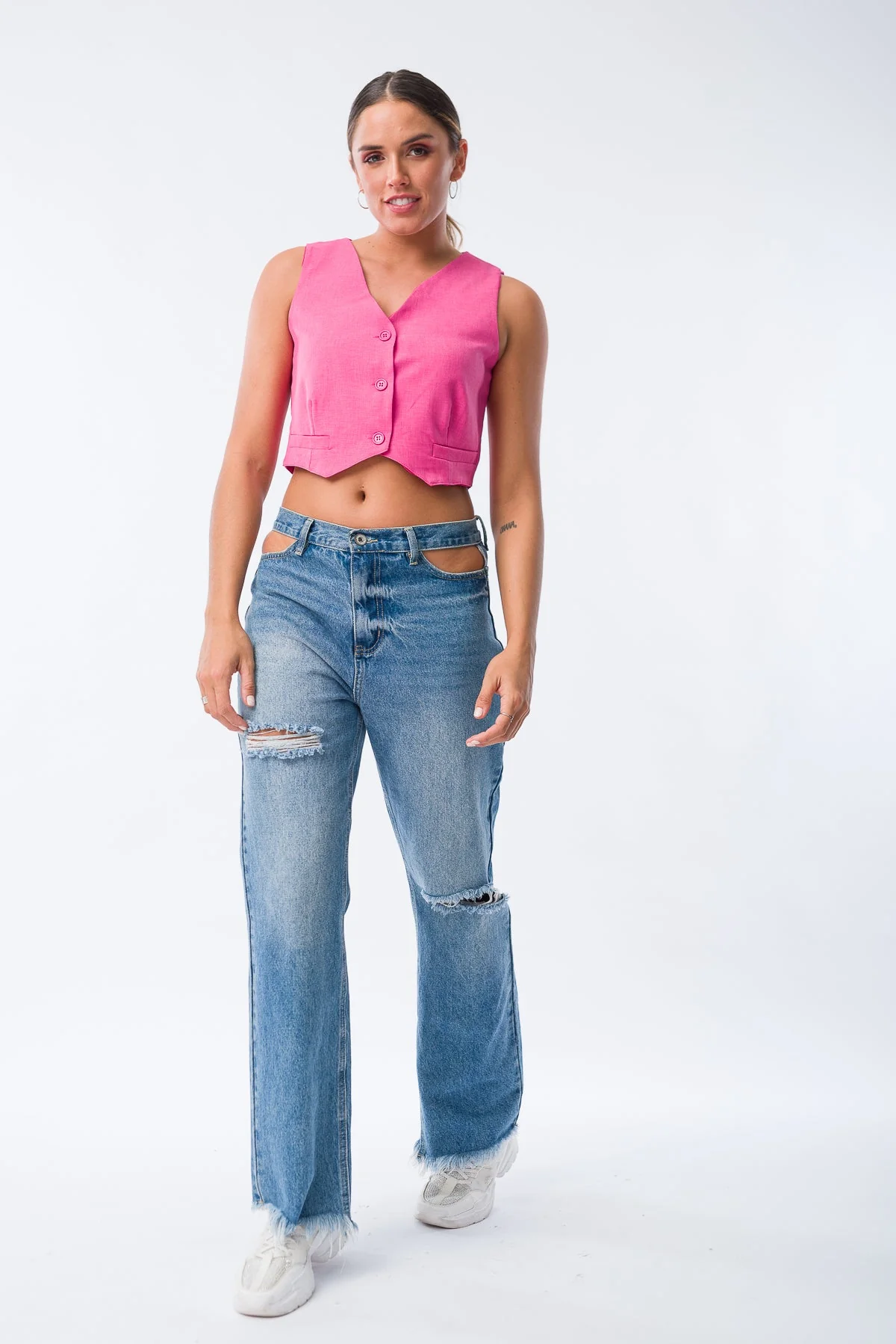 Clásico Chaleco de cuello redondo con un moderno corte femenino