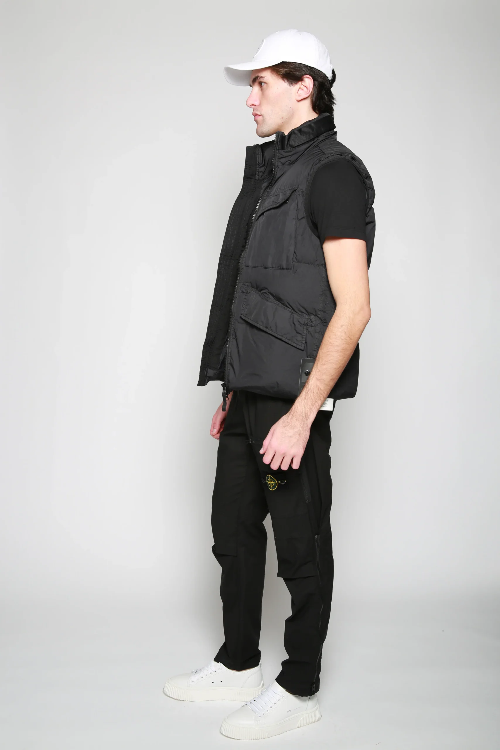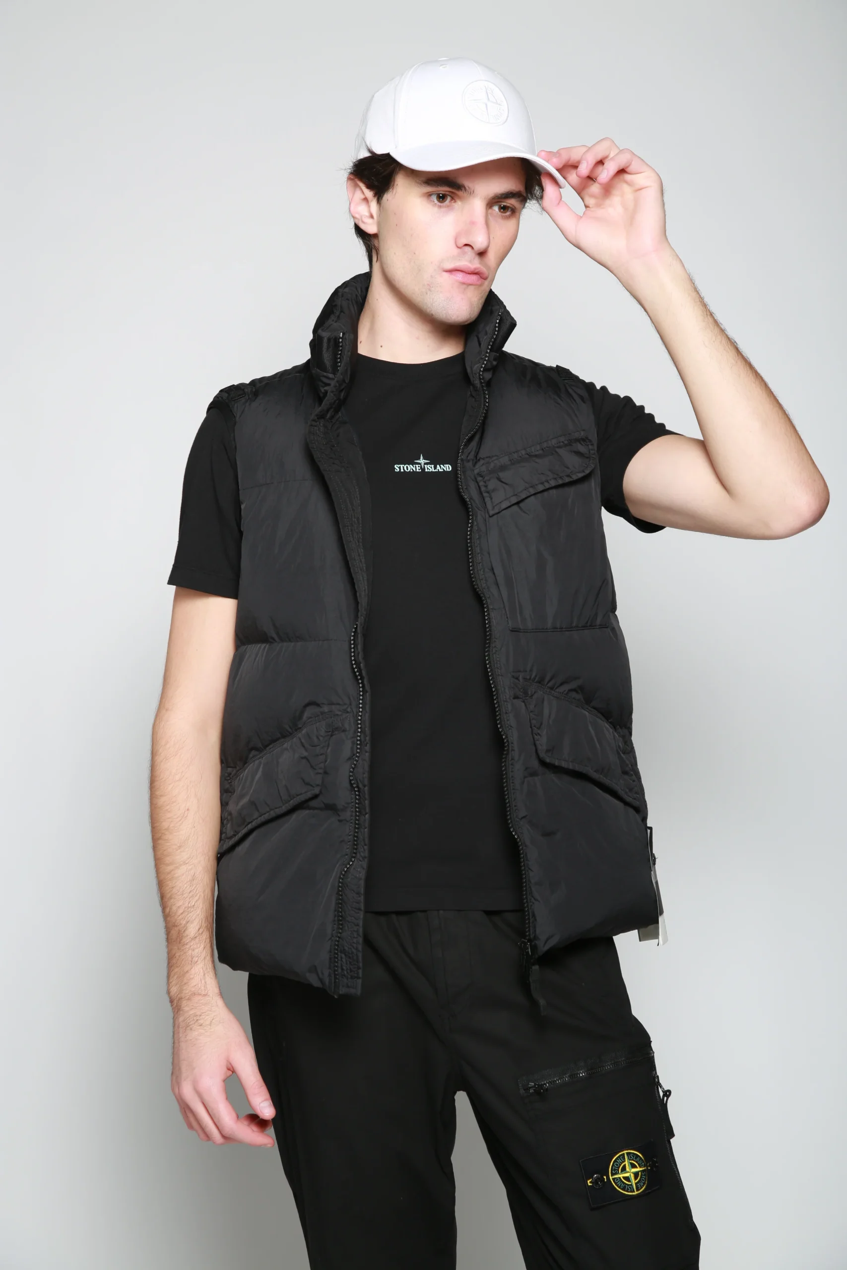 Chaleco Sleeveless Jacket Negro para hombre, marca Stone Island. COMPOSICIÓN Y LAVADO: Consultar etiqueta interna.