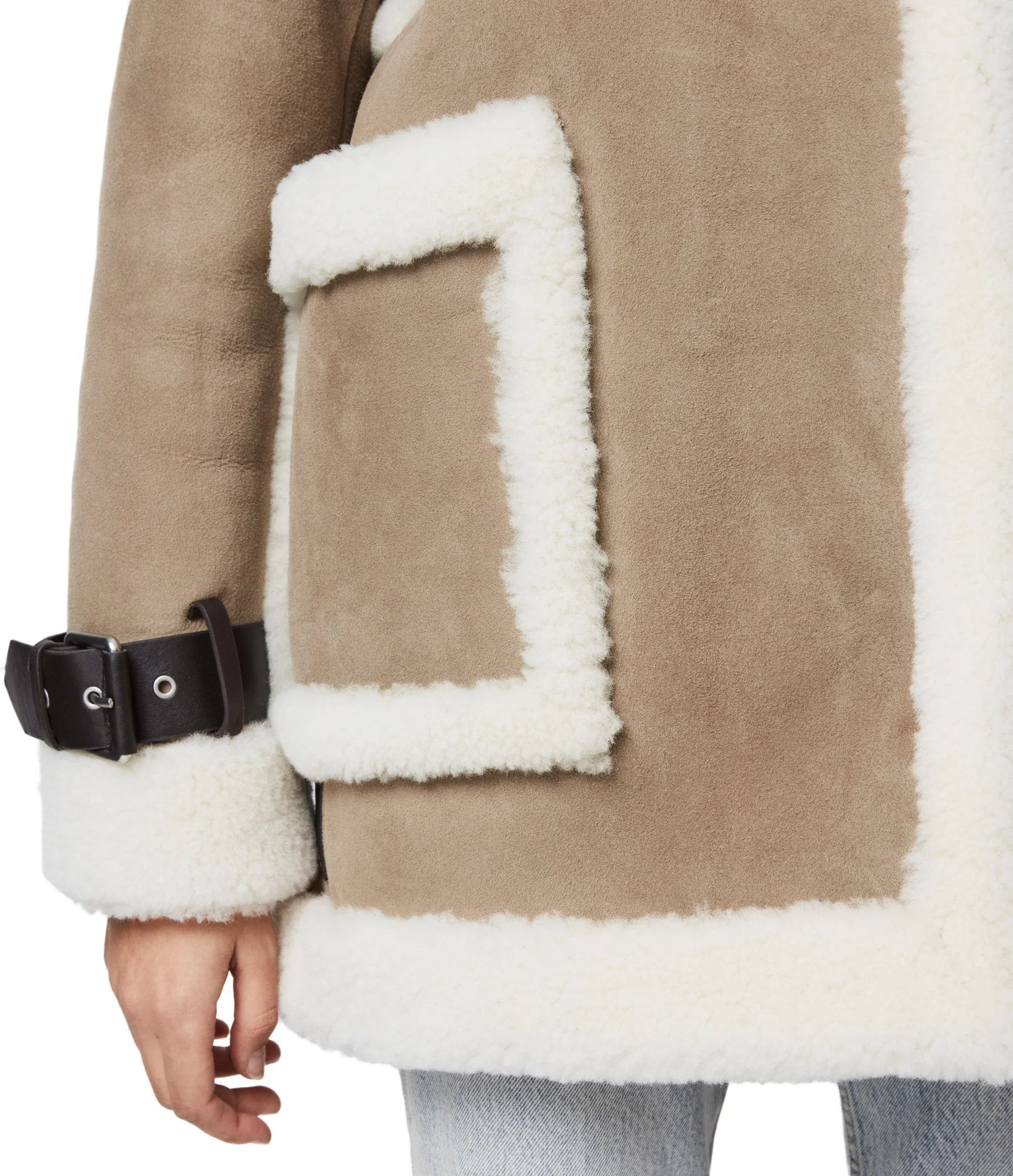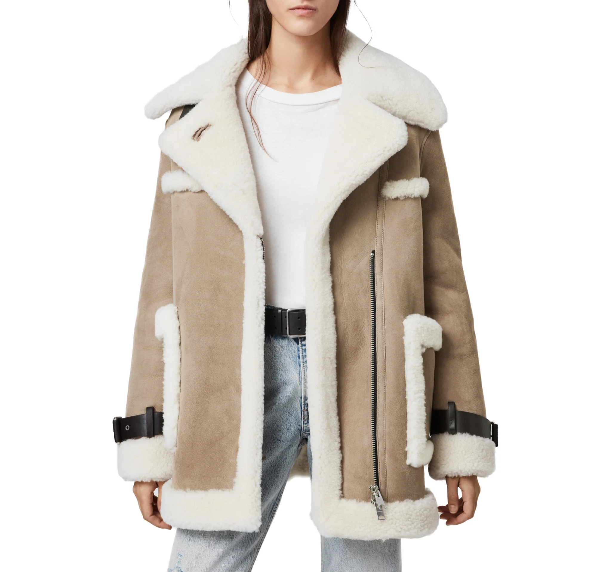 Chamarra Bronx Shearling Gris (Taupe/Chalk White) , marca Allsaints