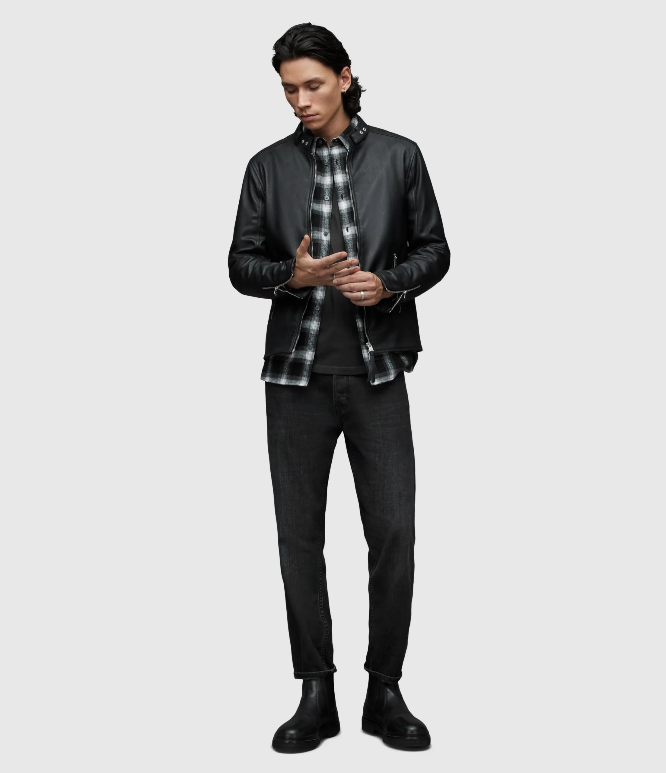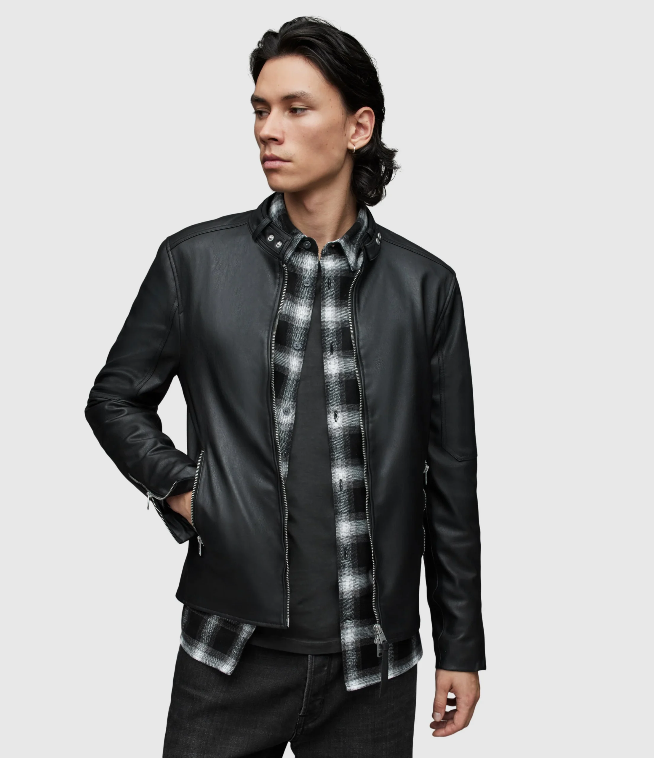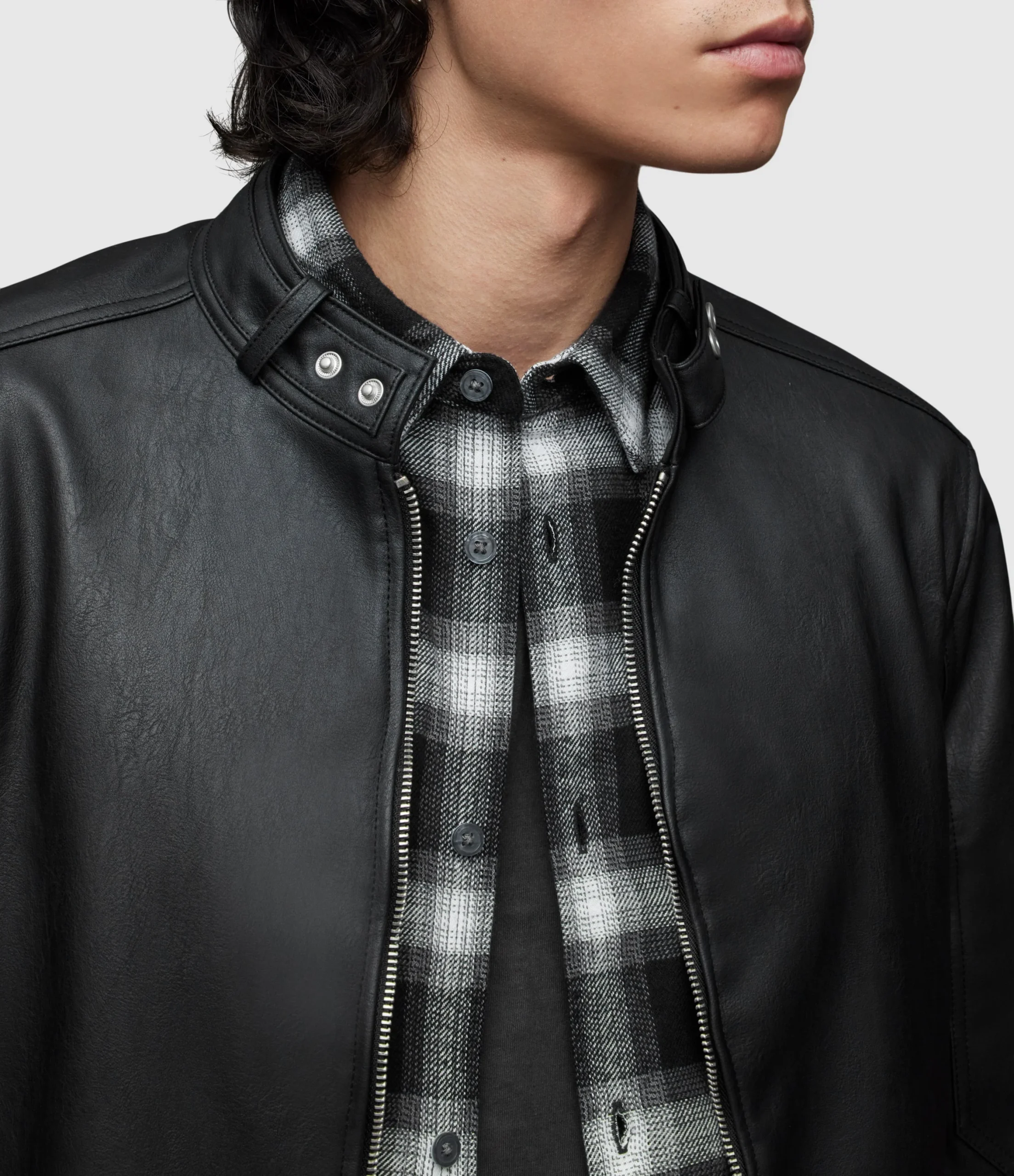 Chamarra Cora Negro para hombre, marca AllSaints, de piel sintética. COMPOSICIÓN Y LAVADO: Consultar etiqueta interna.