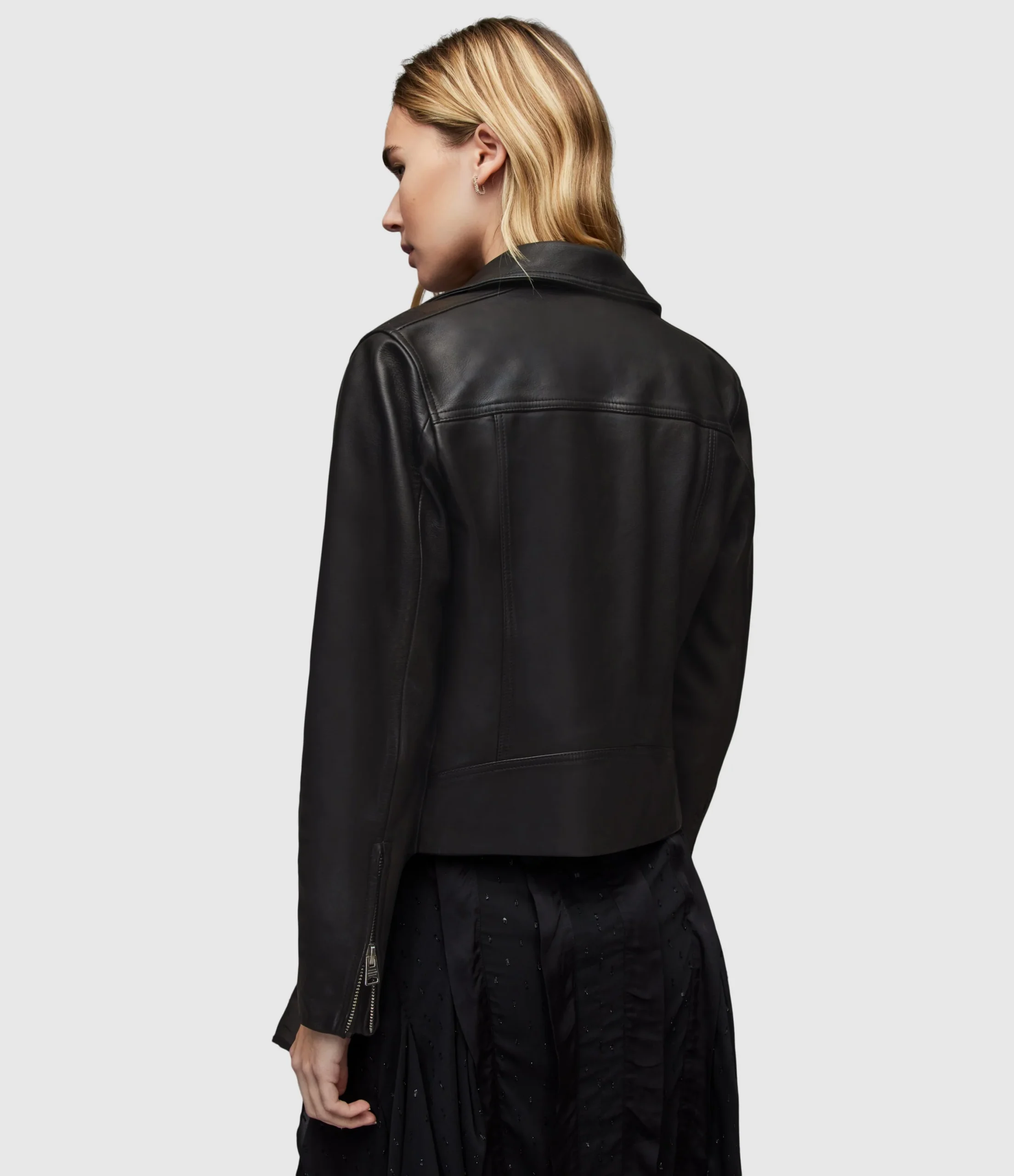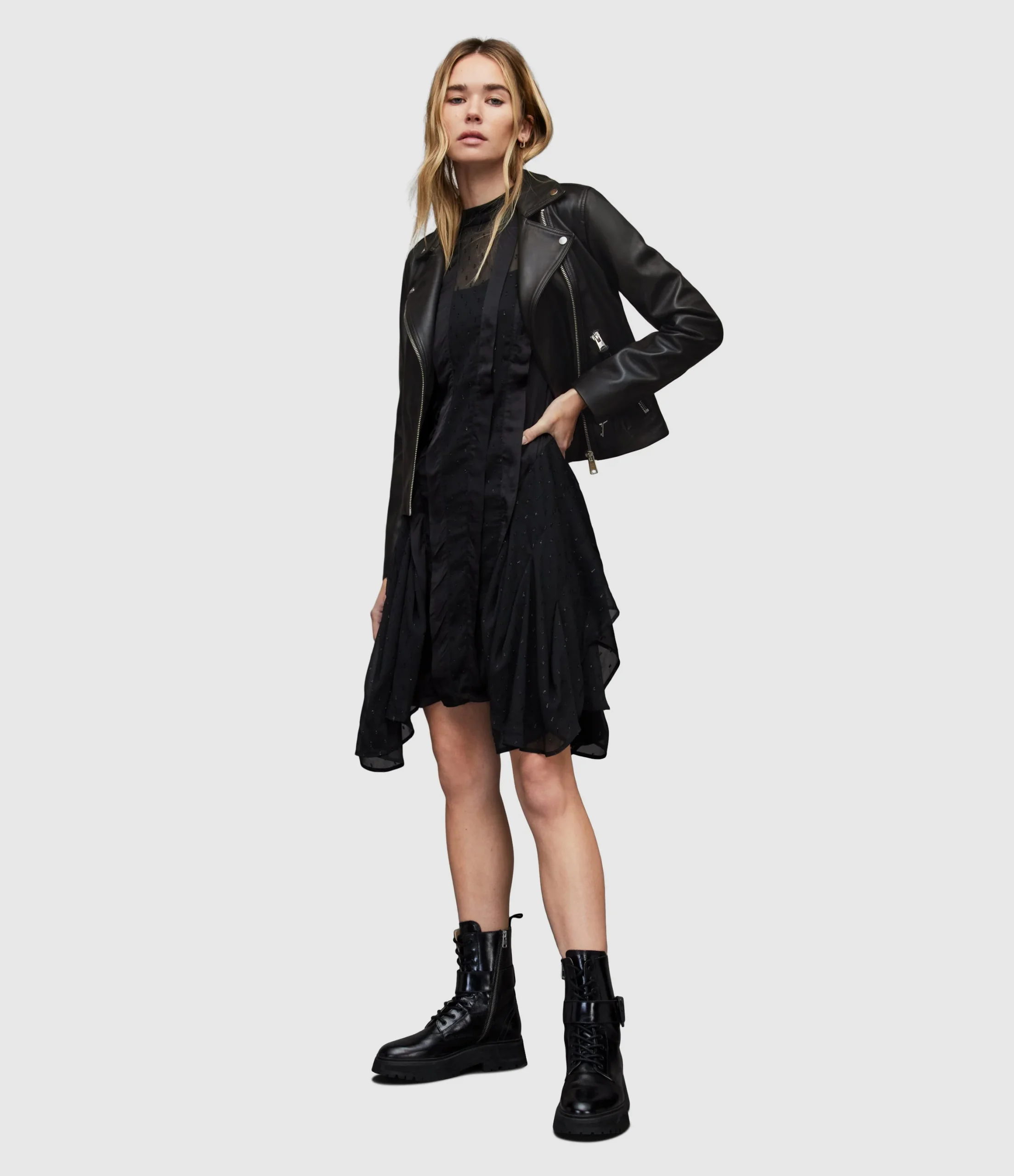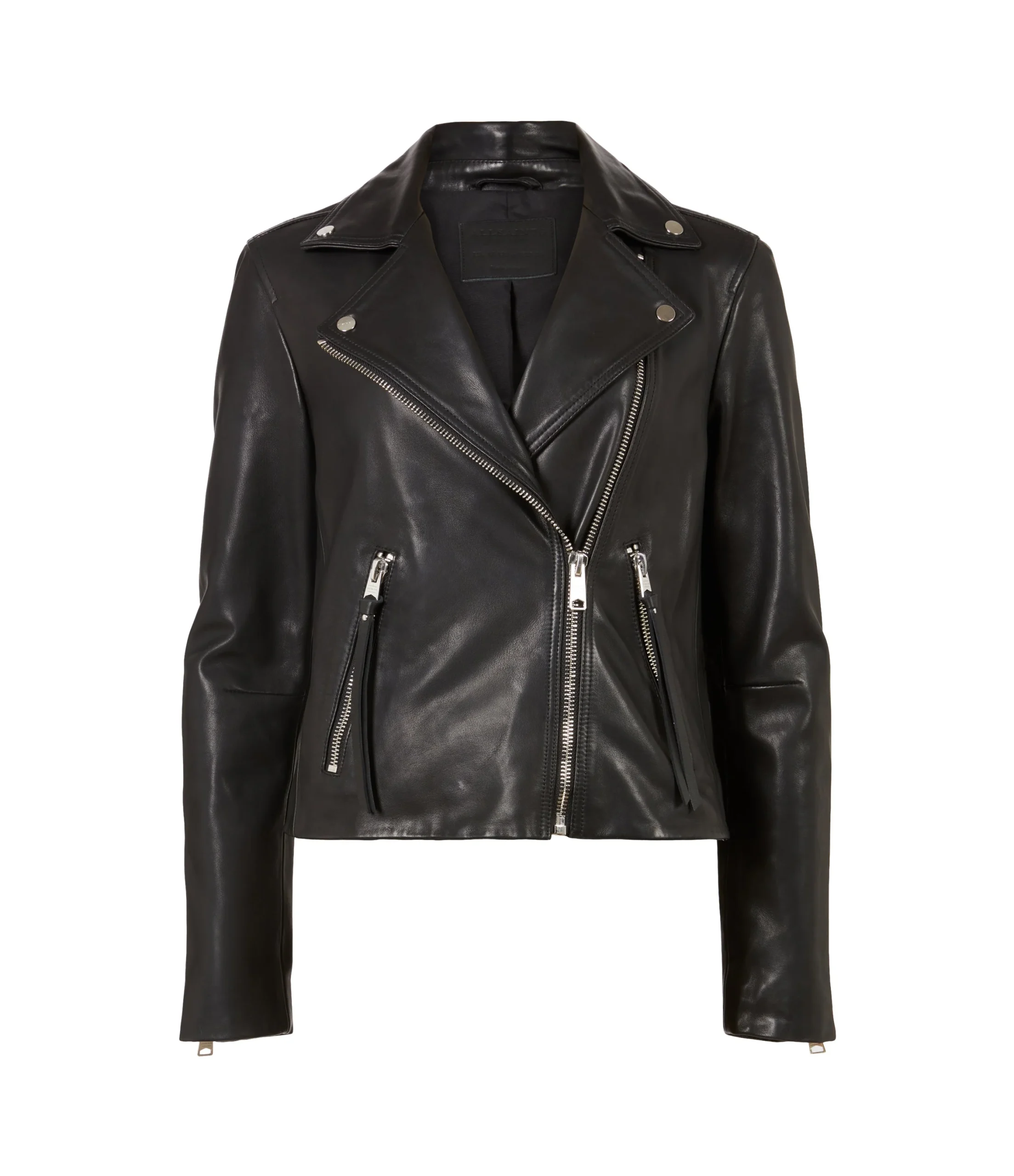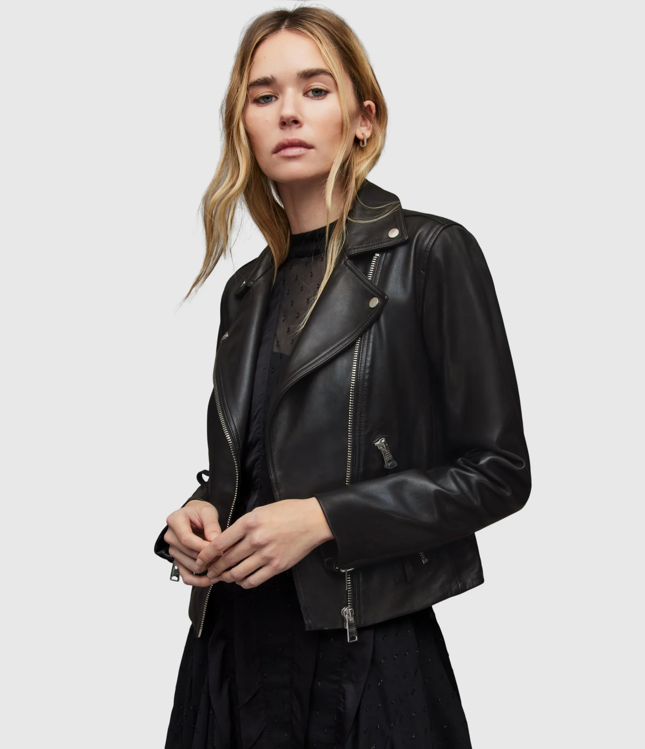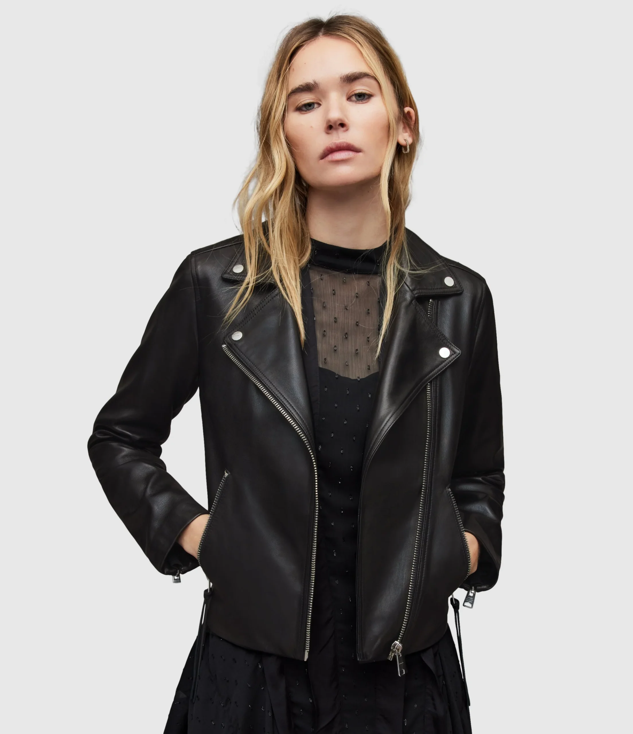 Chamarra Dalby Metálico para mujer, marca AllSaints, estilo biker. COMPOSICIÓN Y LAVADO: Consultar etiqueta interna.