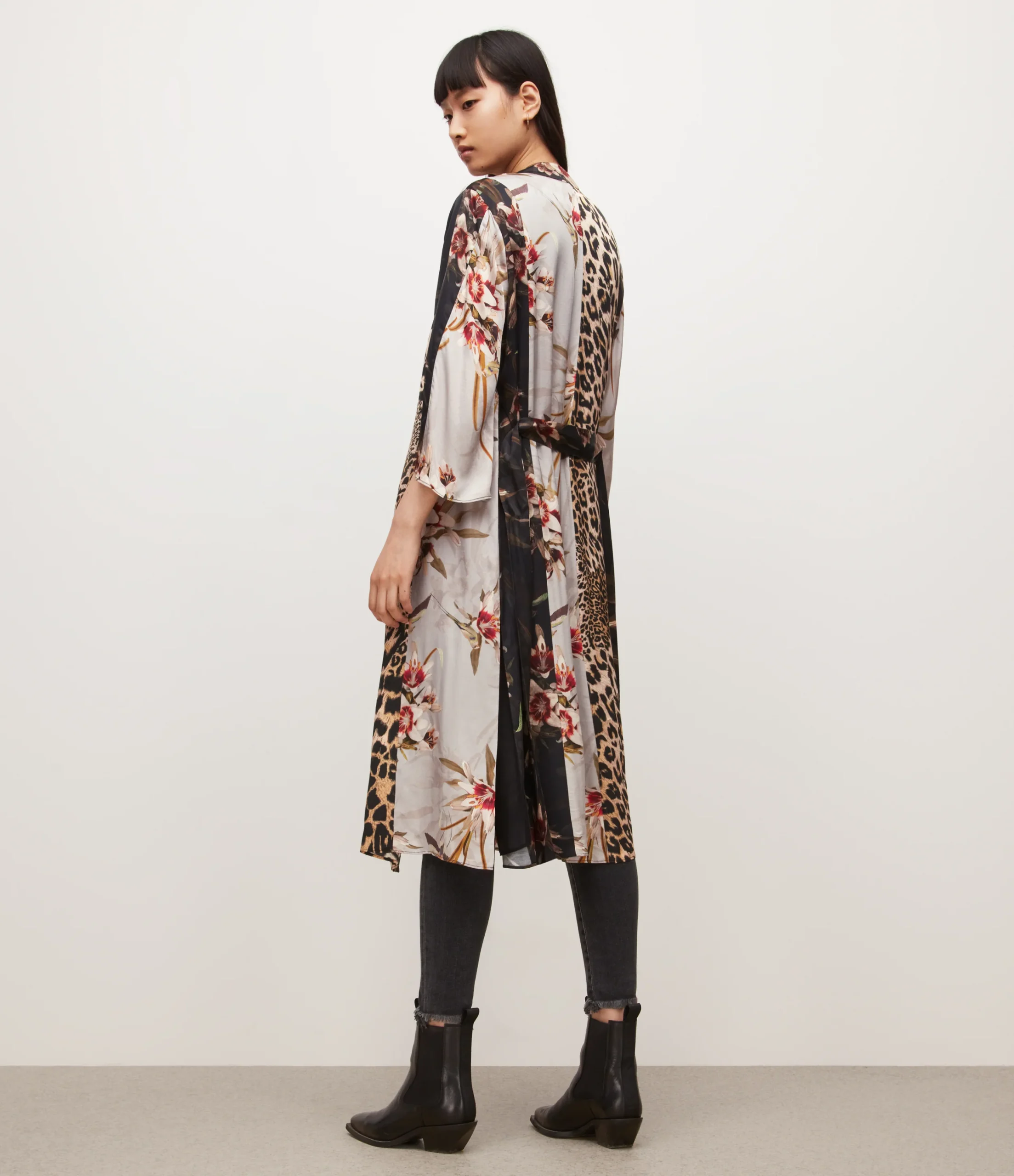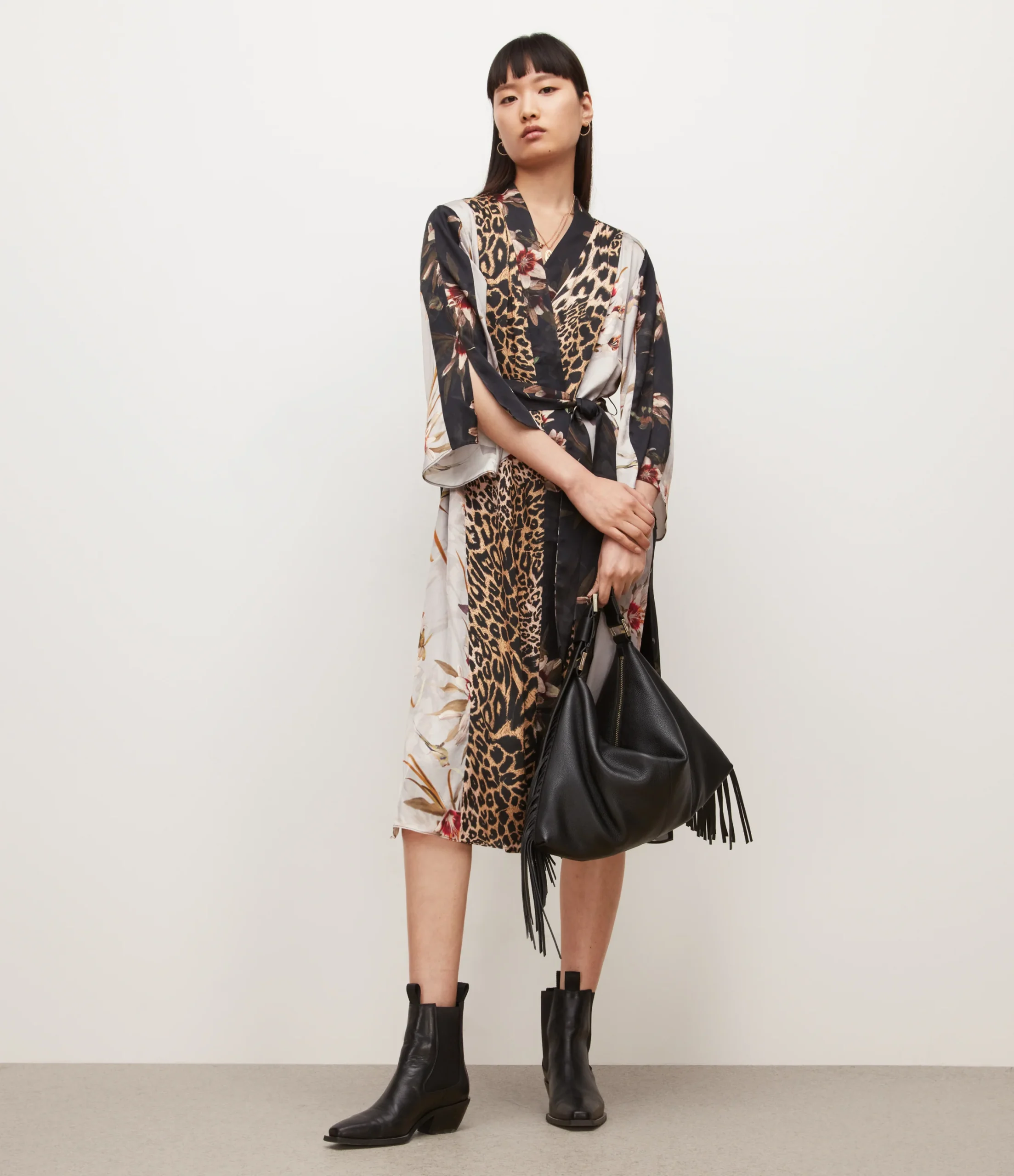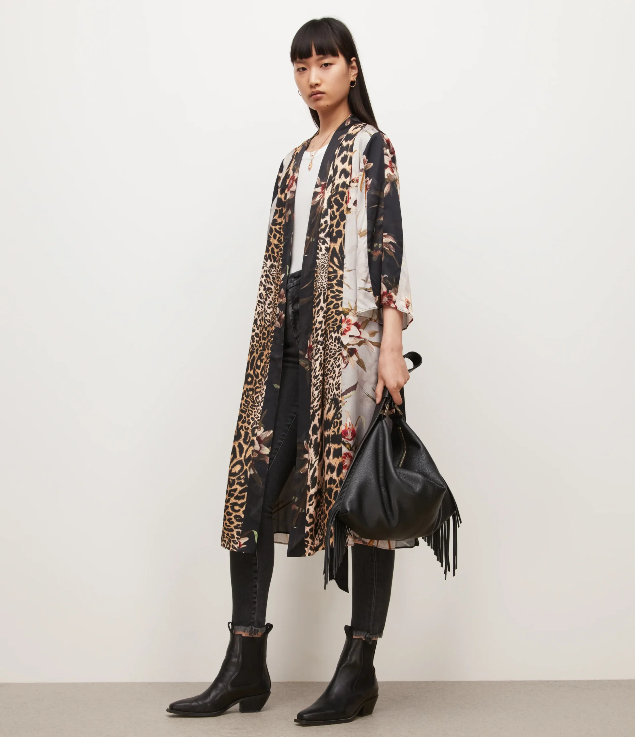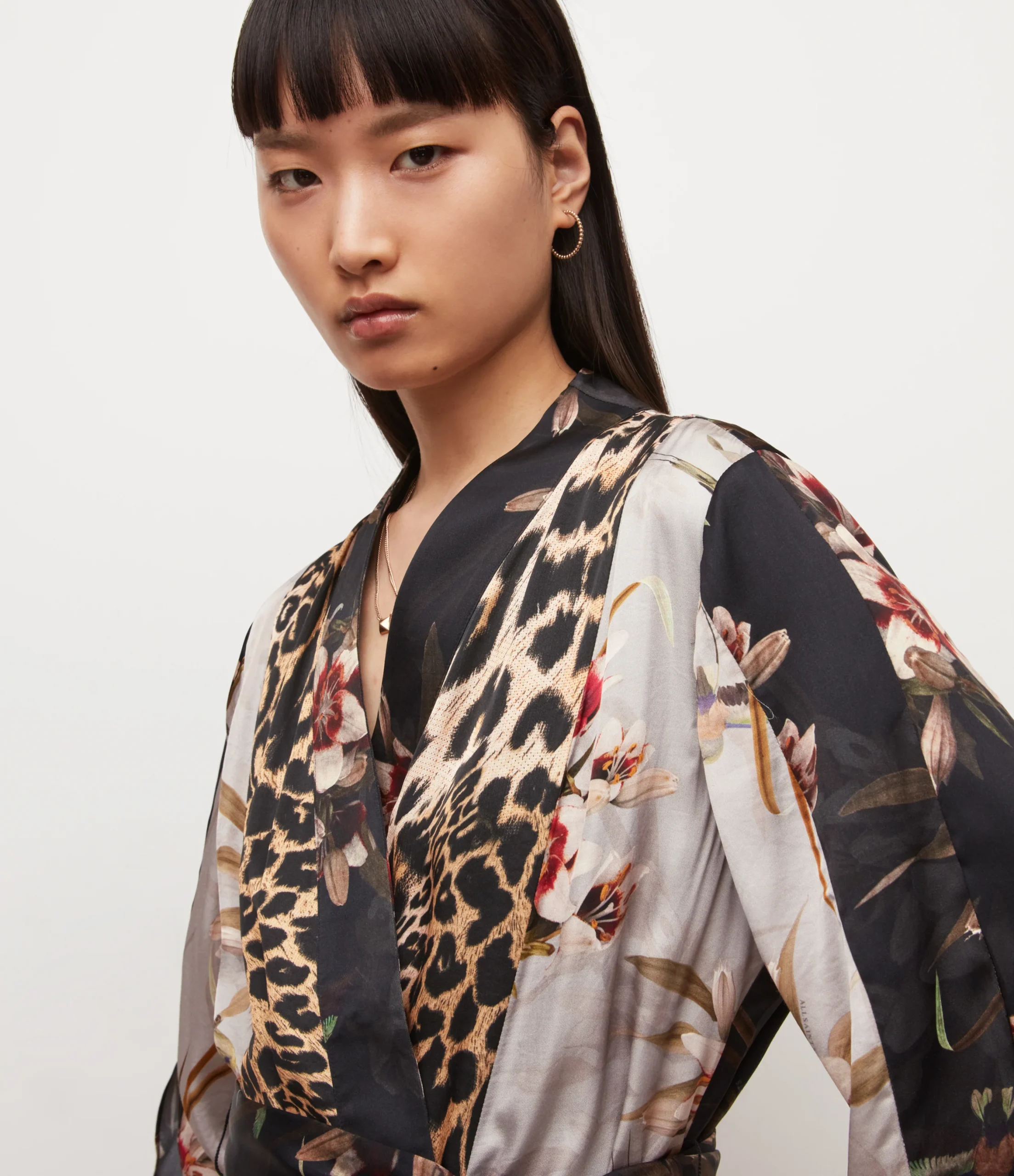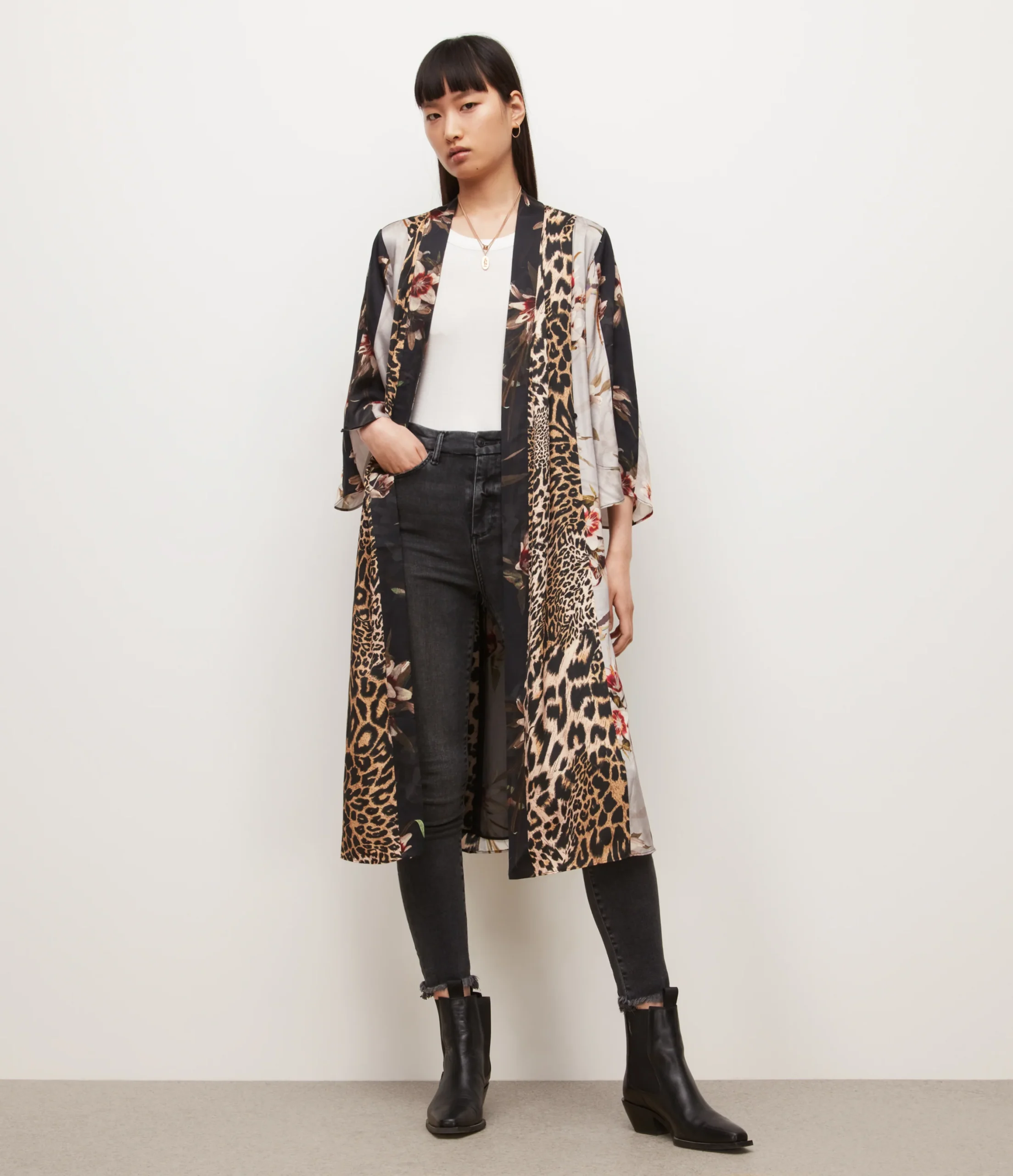Chamarra Elsa Kuroyuri Kimono Negro/Rosa, marca AllSaints. Composición: 100% Viscosa
