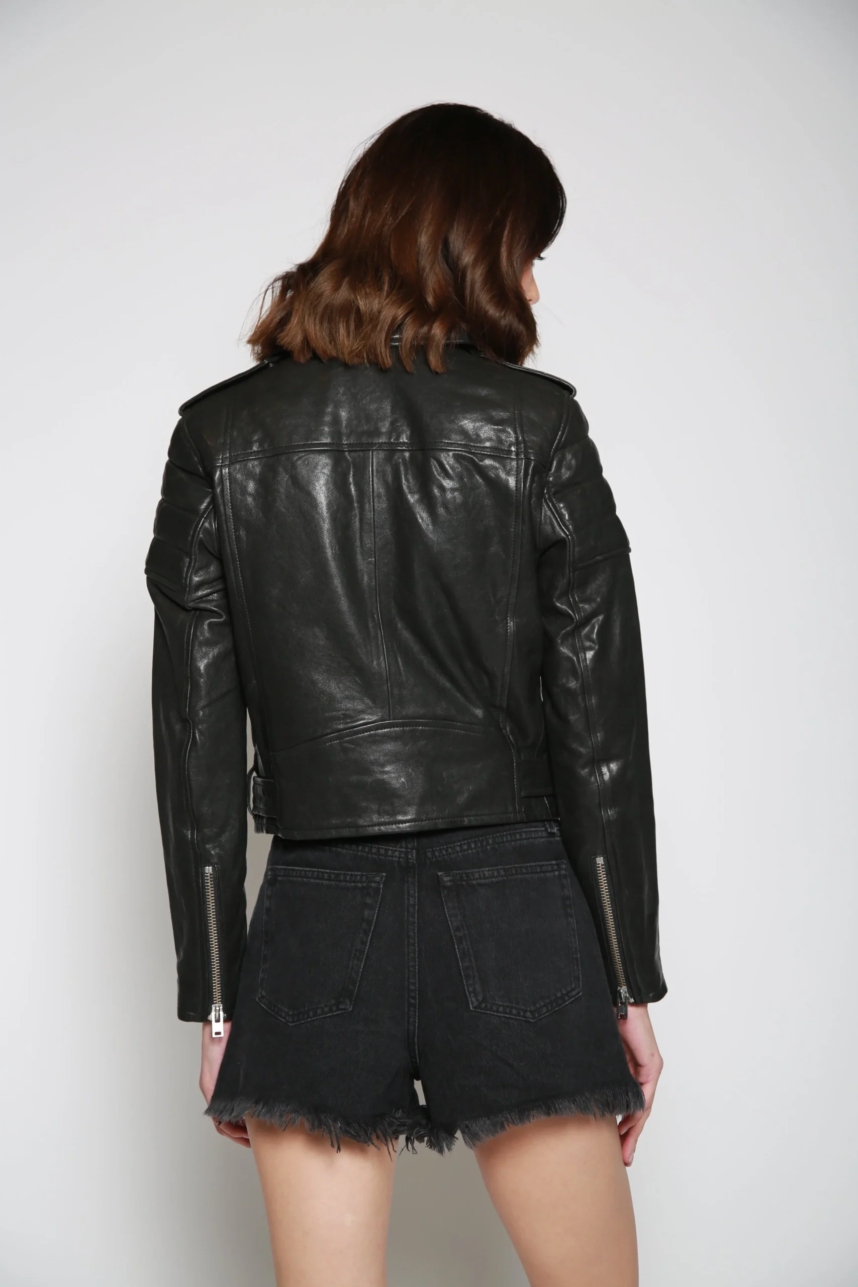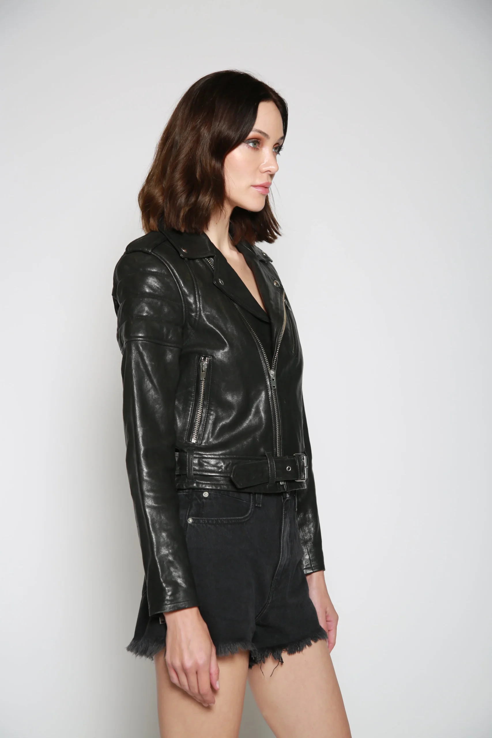 Chamarra Galley Biker Negro , marca IRO. CONSULTAR COMPOSICIÓN Y CUIDADOS EN ETIQUETA INTERNA.