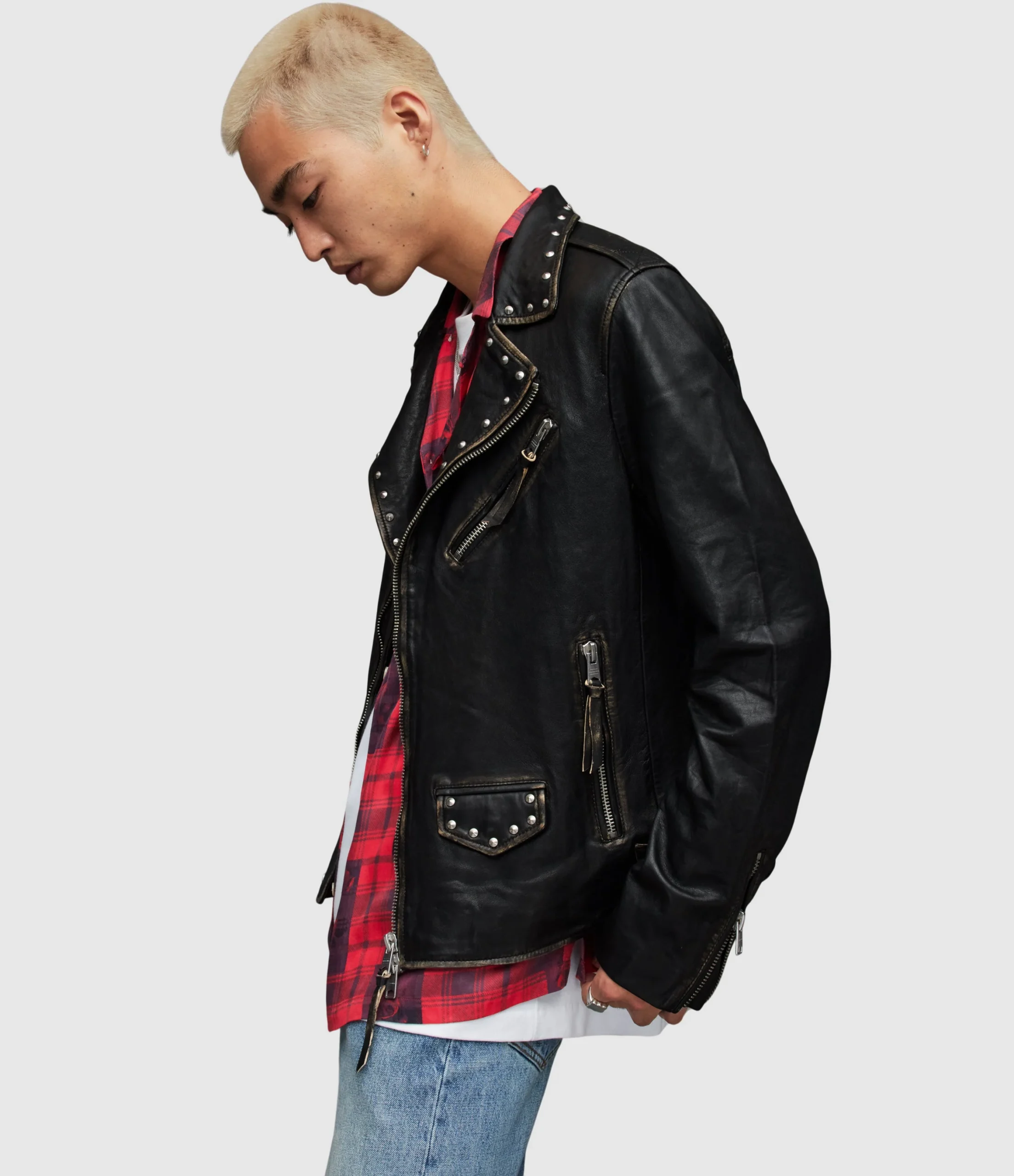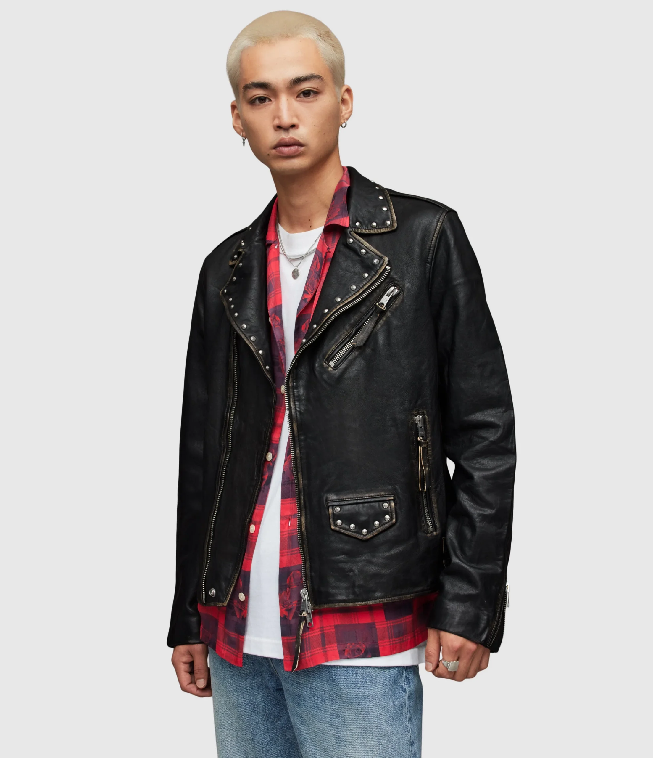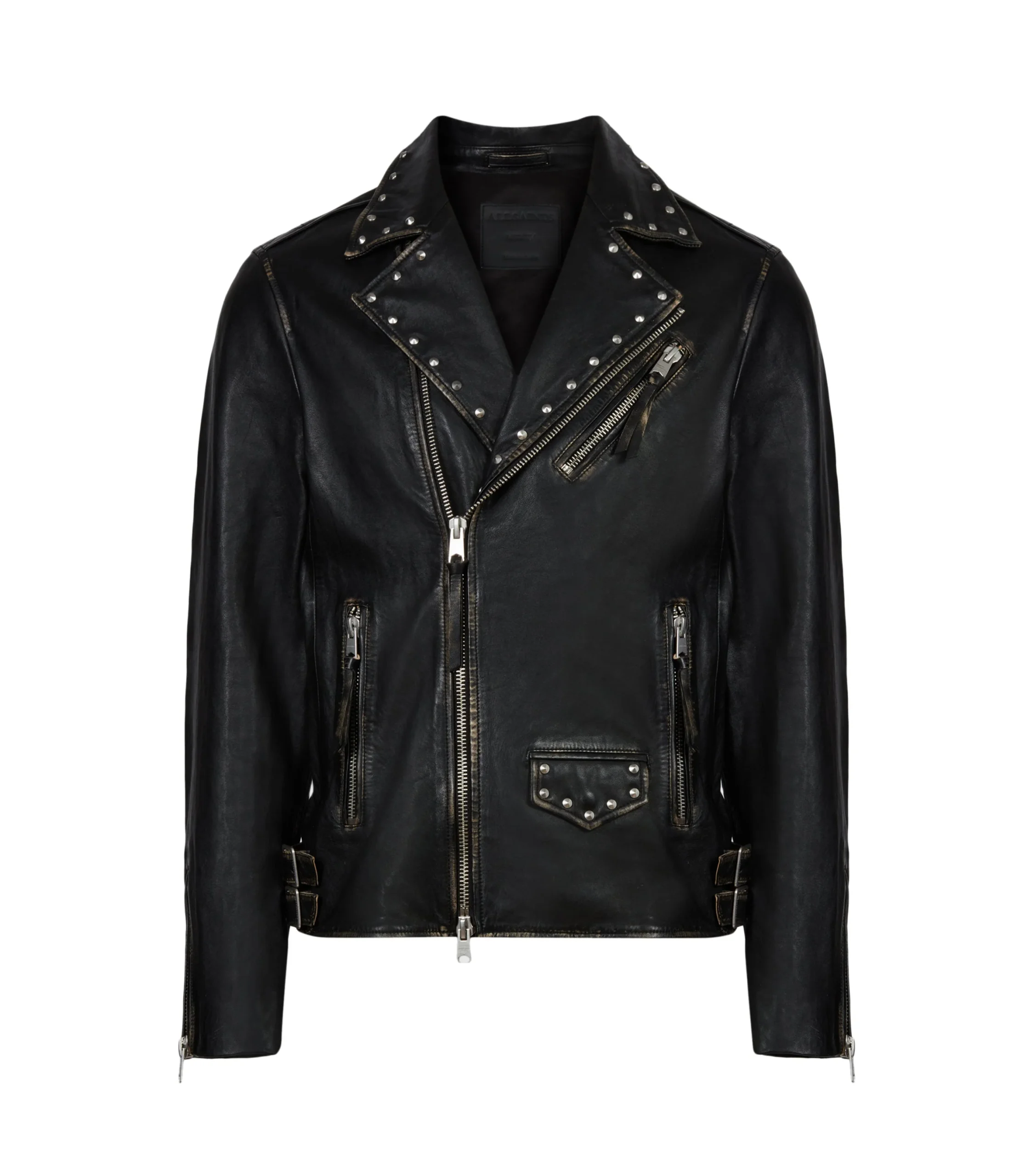 Chamarra Luke Negro para hombre, marca AllSaints, estilo biker. COMPOSICIÓN Y LAVADO: Consultar etiqueta interna.