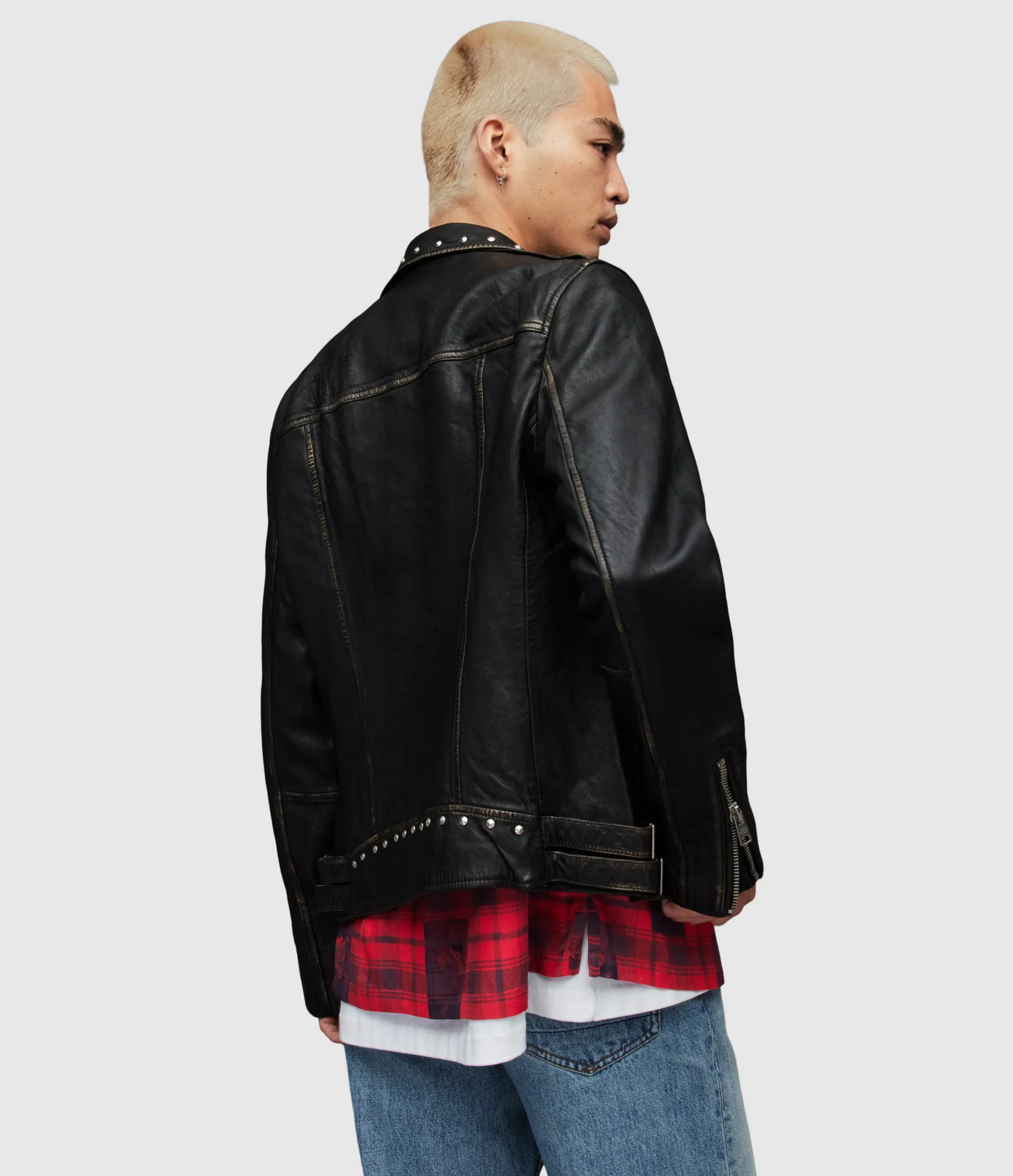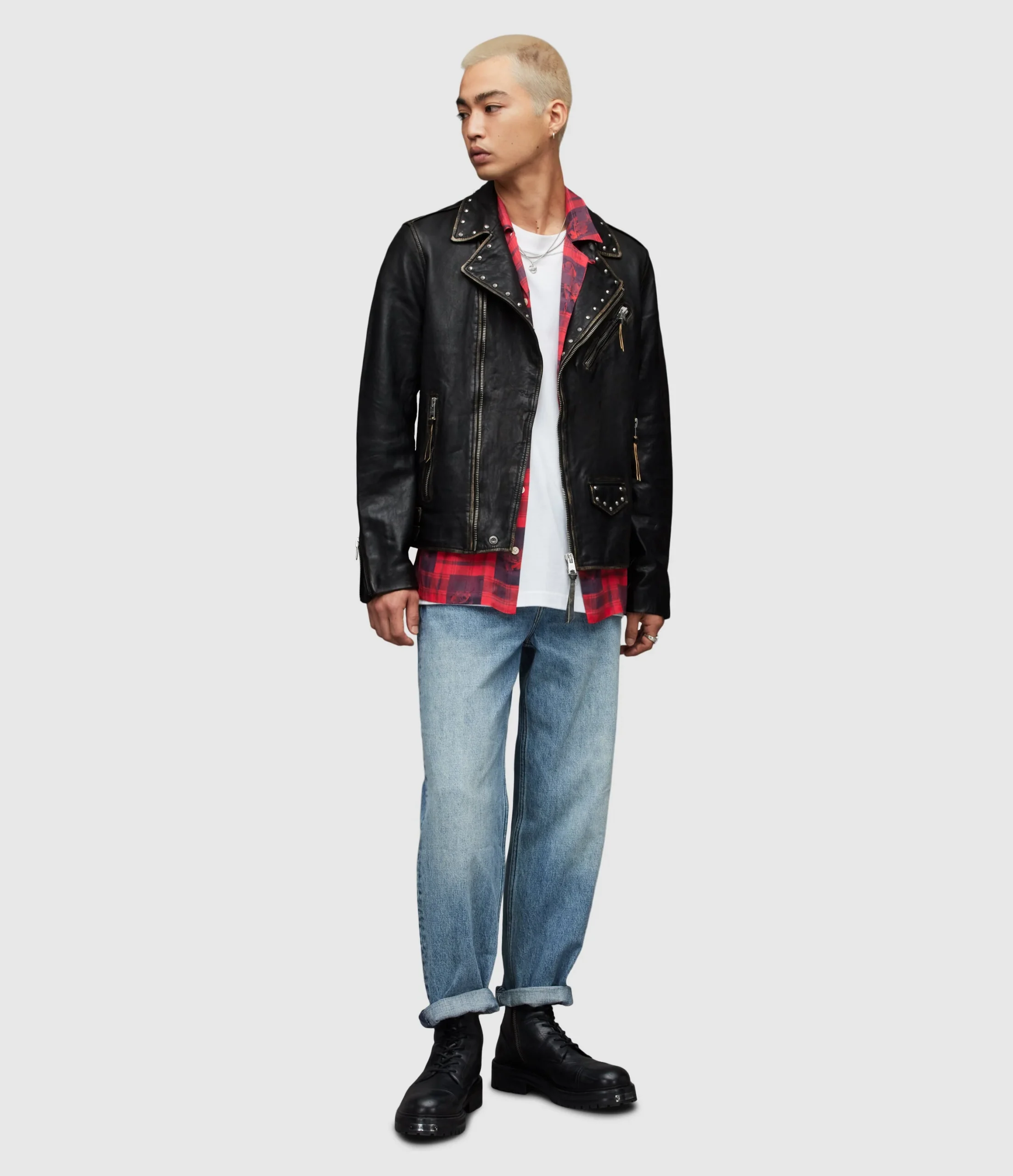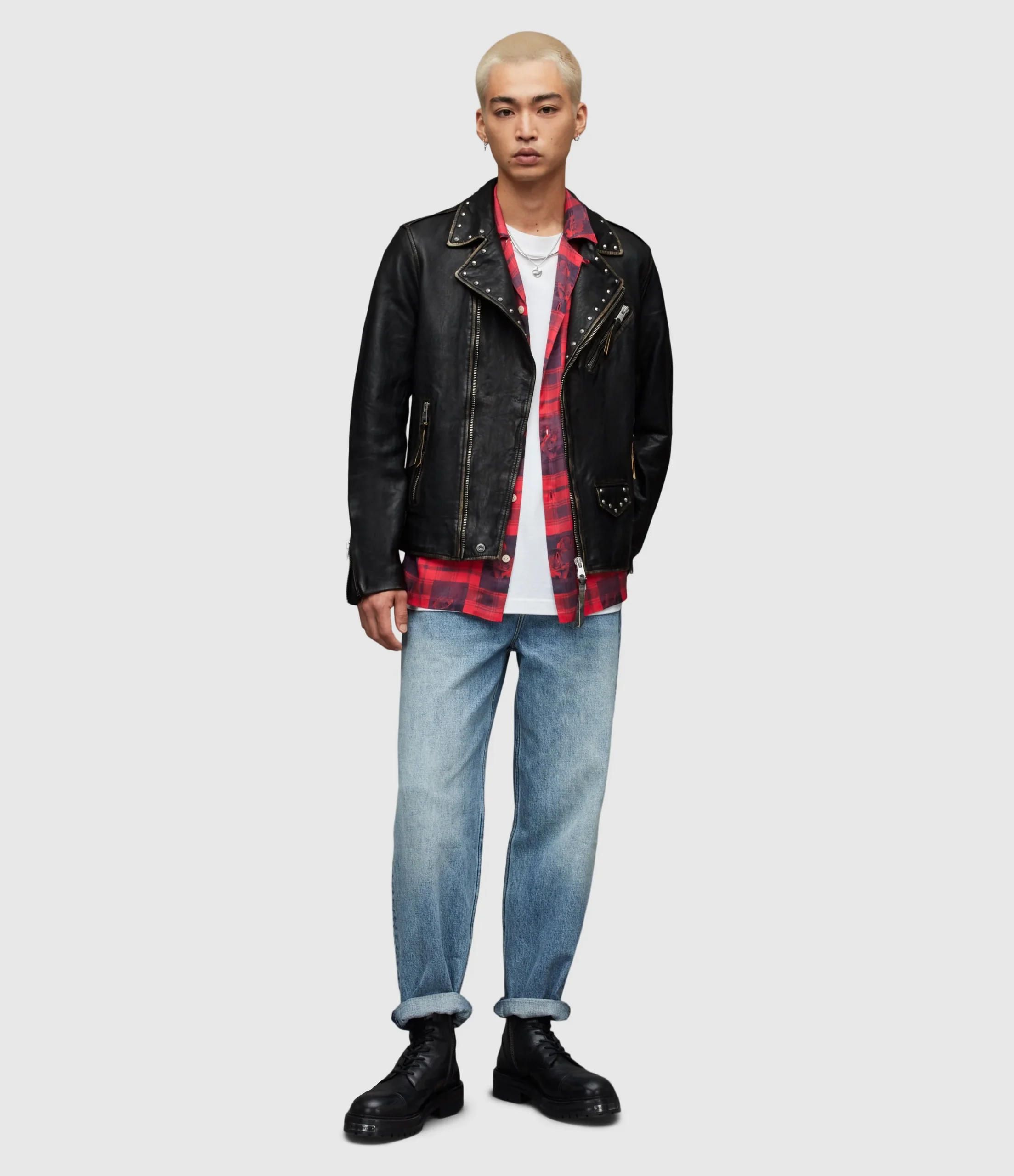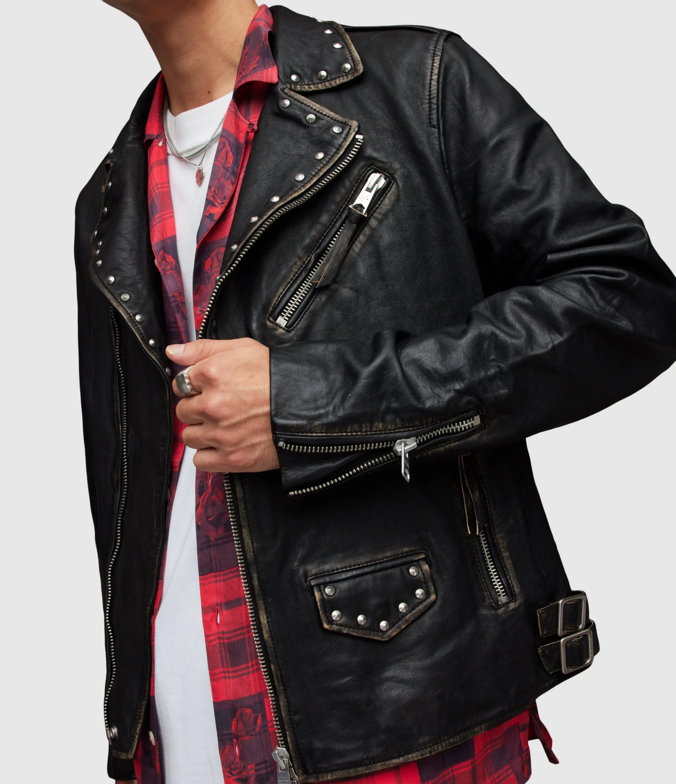 Chamarra Luke Negro para hombre, marca AllSaints, estilo biker. COMPOSICIÓN Y LAVADO: Consultar etiqueta interna.