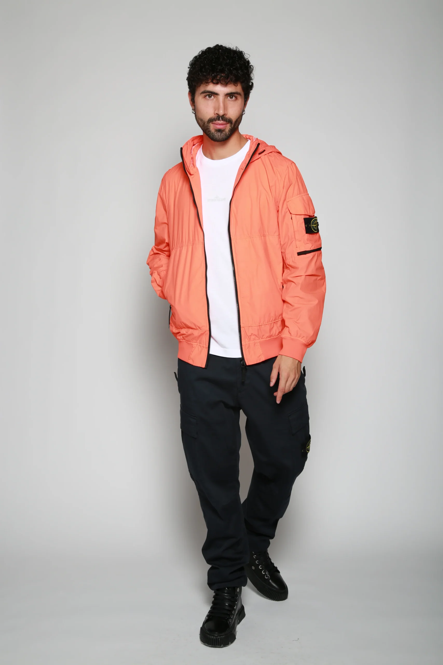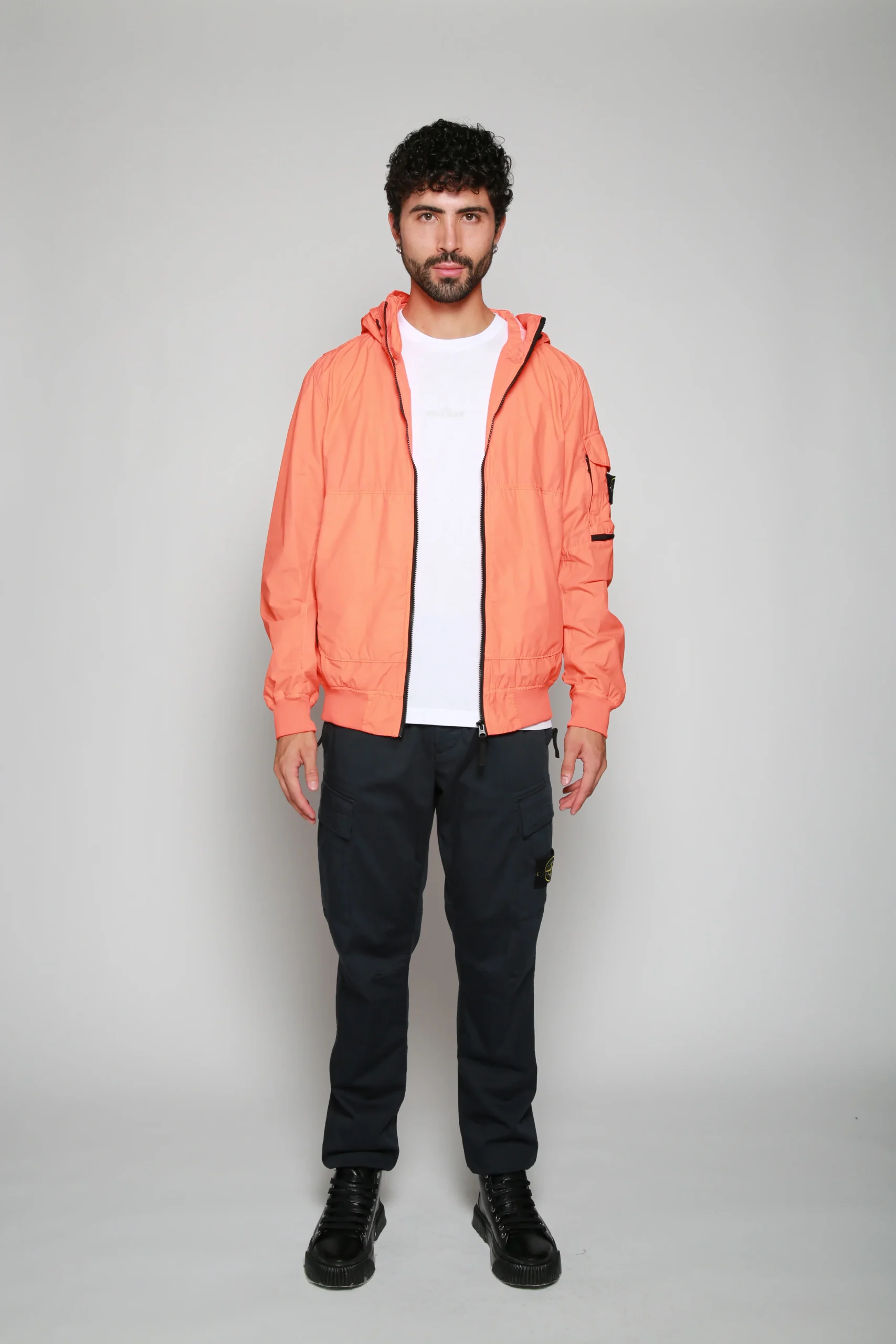 Chamarra Naranja para hombre, marca Stone Island. COMPOSICIÓN Y LAVADO: Consultar etiqueta interna.