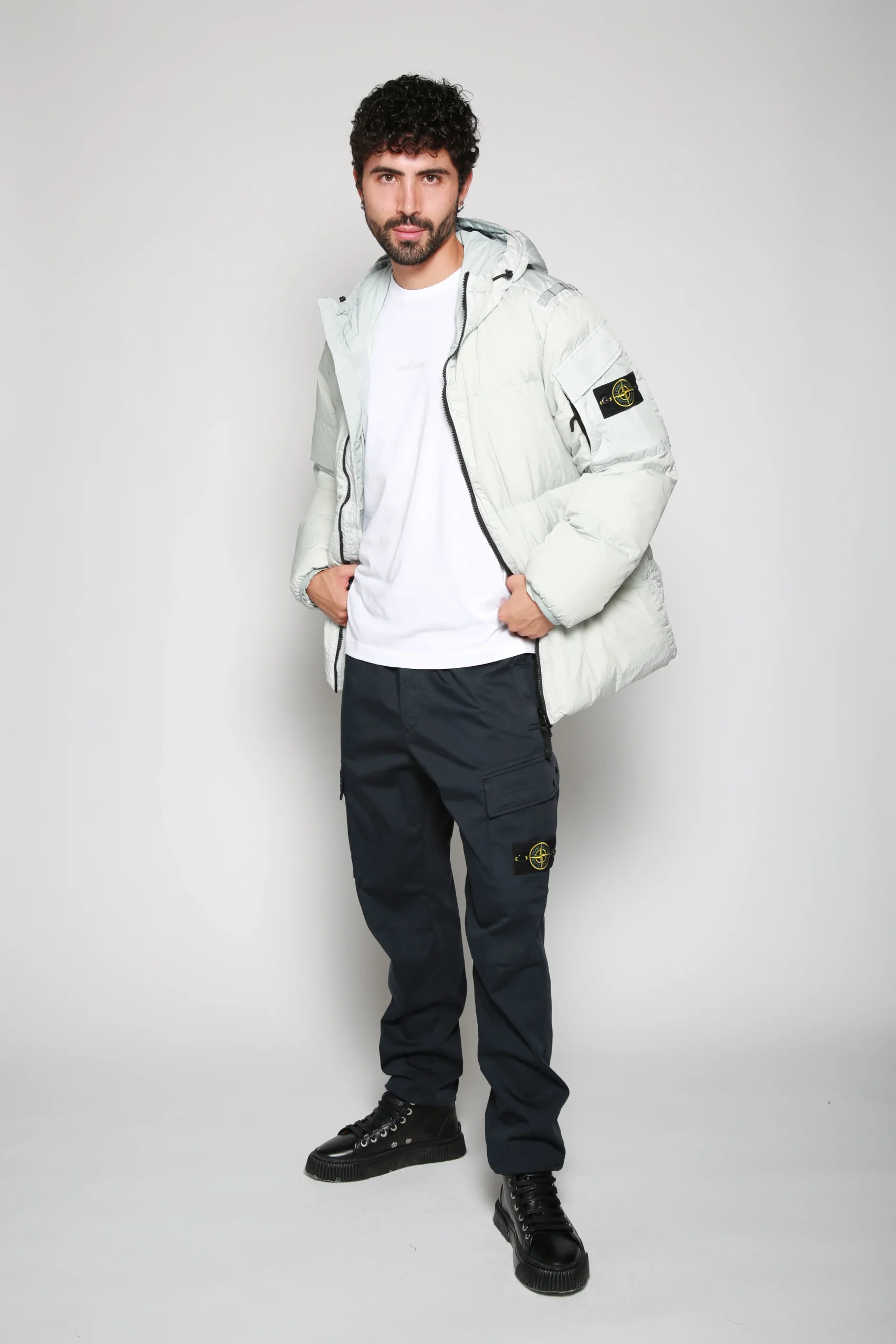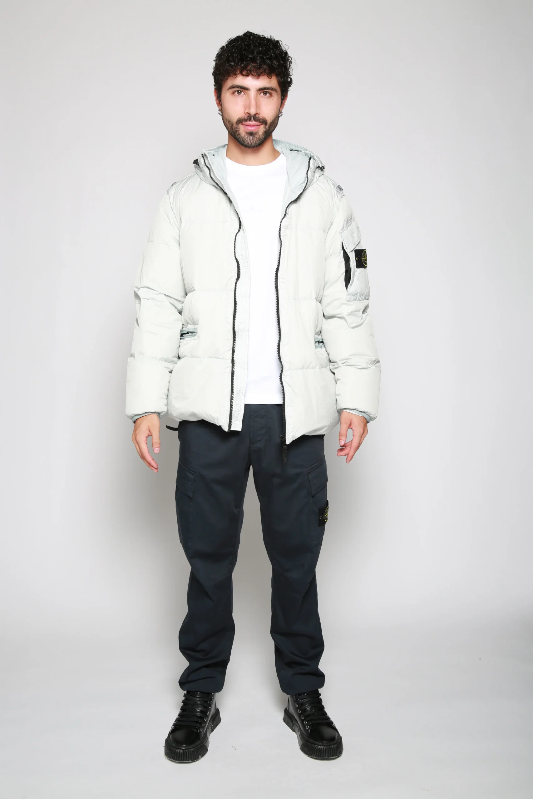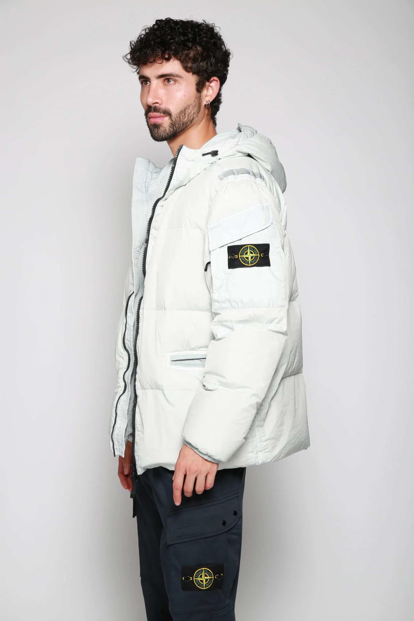 Chamarra Real Down Gris Claro para hombre, marca Stone Island. COMPOSICIÓN Y LAVADO: Consultar etiqueta interna.