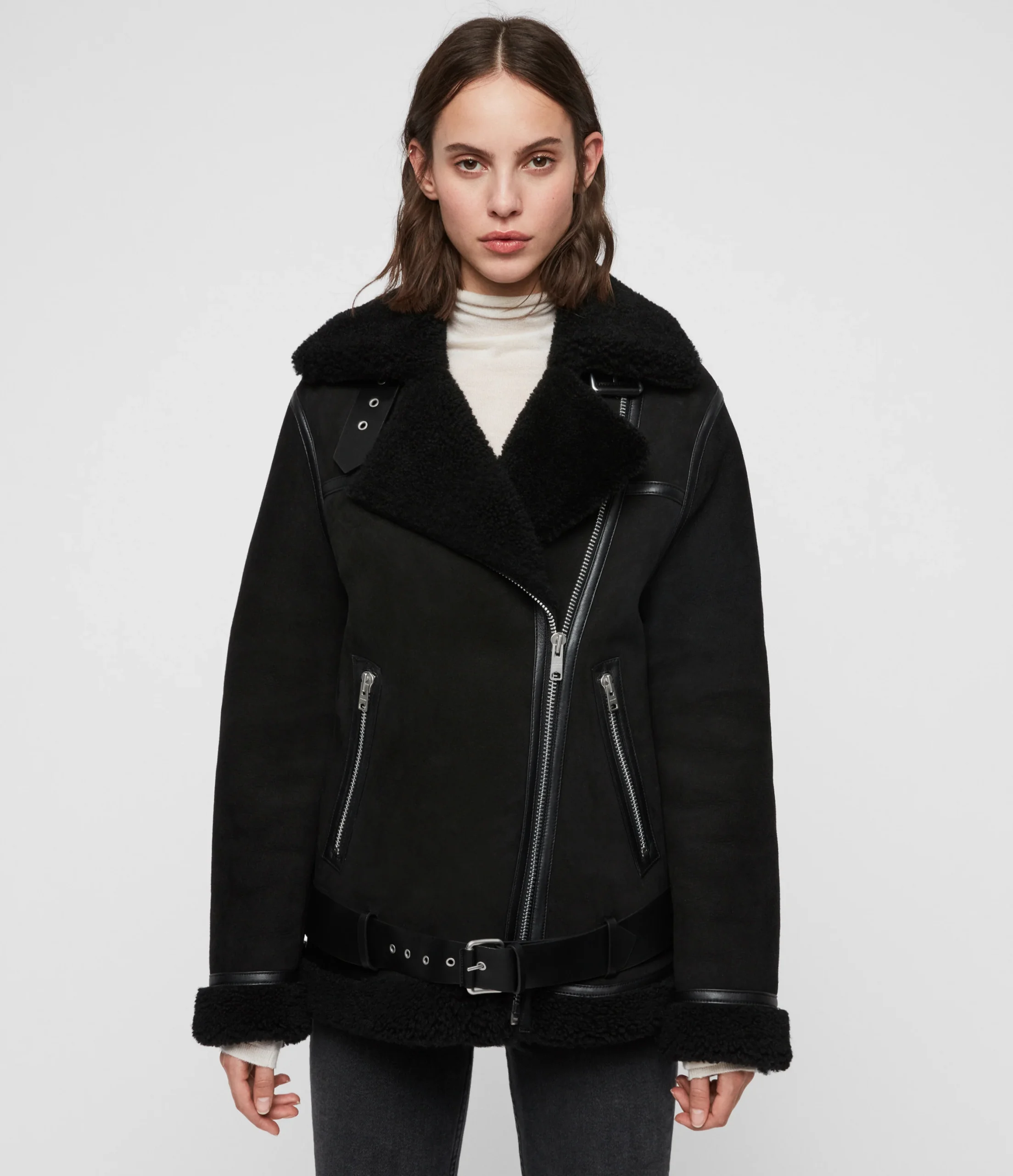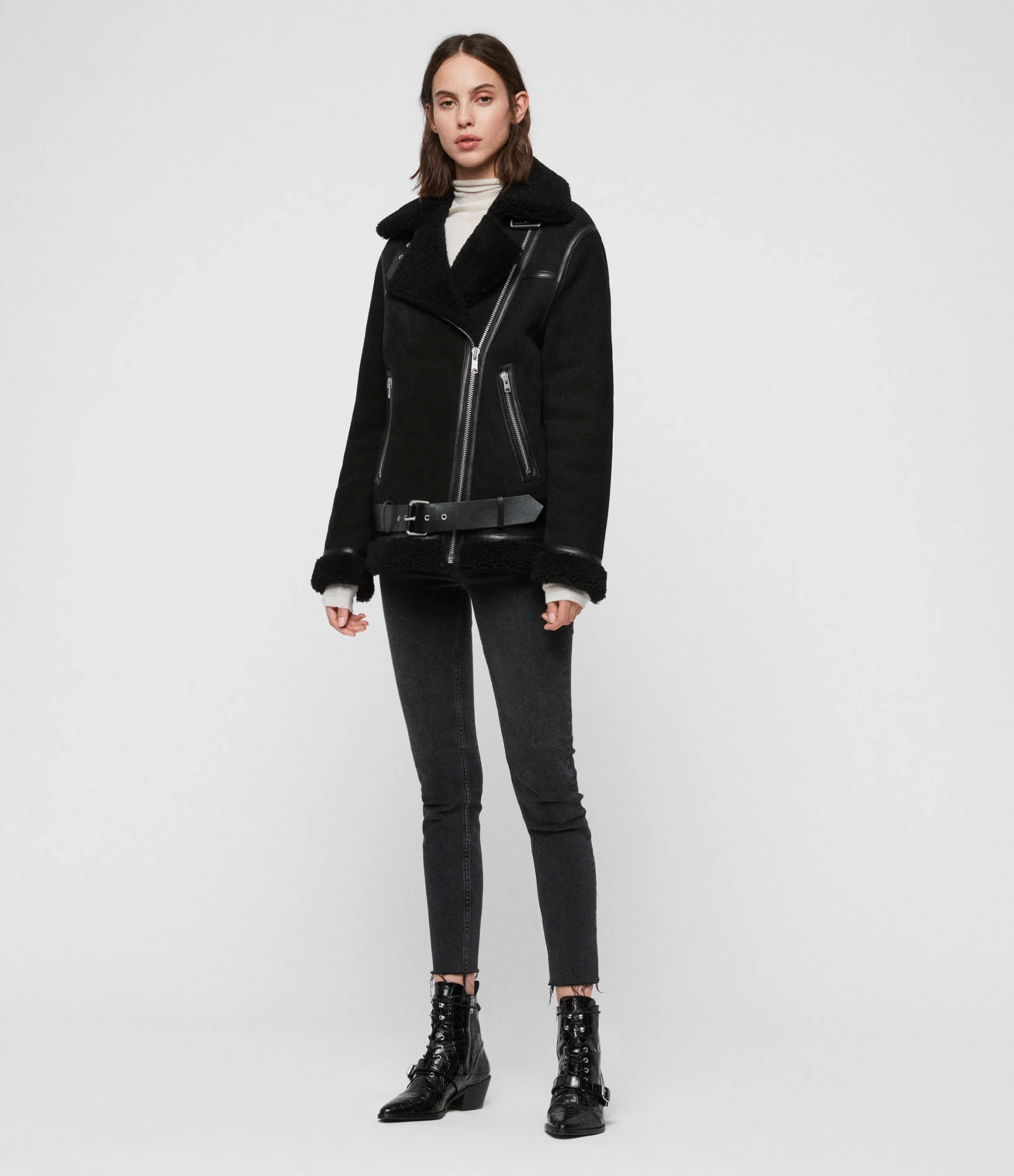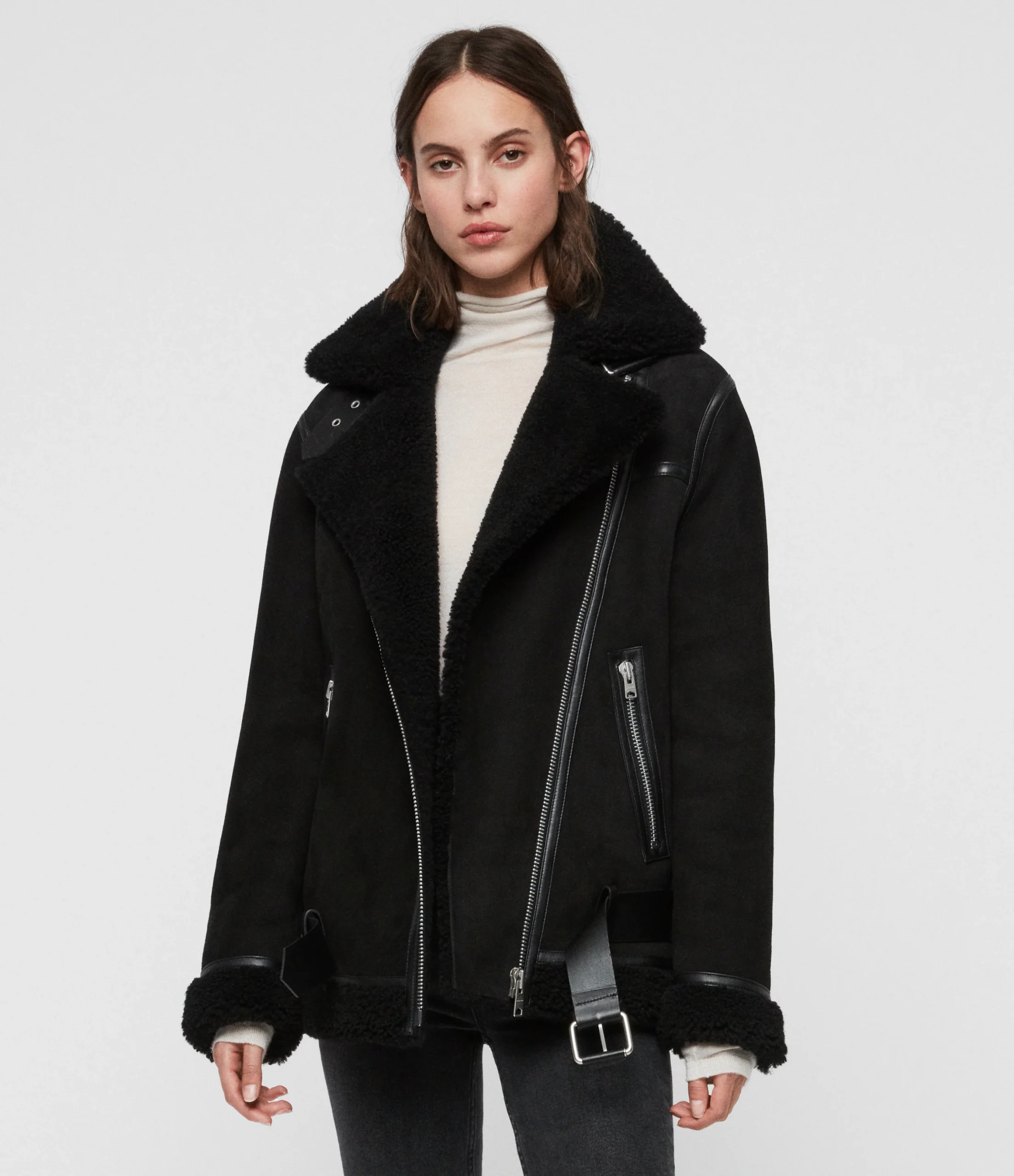 CHAMARRA REI SHEARLING NEGRO, MARCA ALLSAINTS. INSTRUCCIONES DE LAVADO: CONSULTAR ETIQUETA INTERNA. COMPOSICIÓN: CONSULTAR ETIQUETA INTERNA.