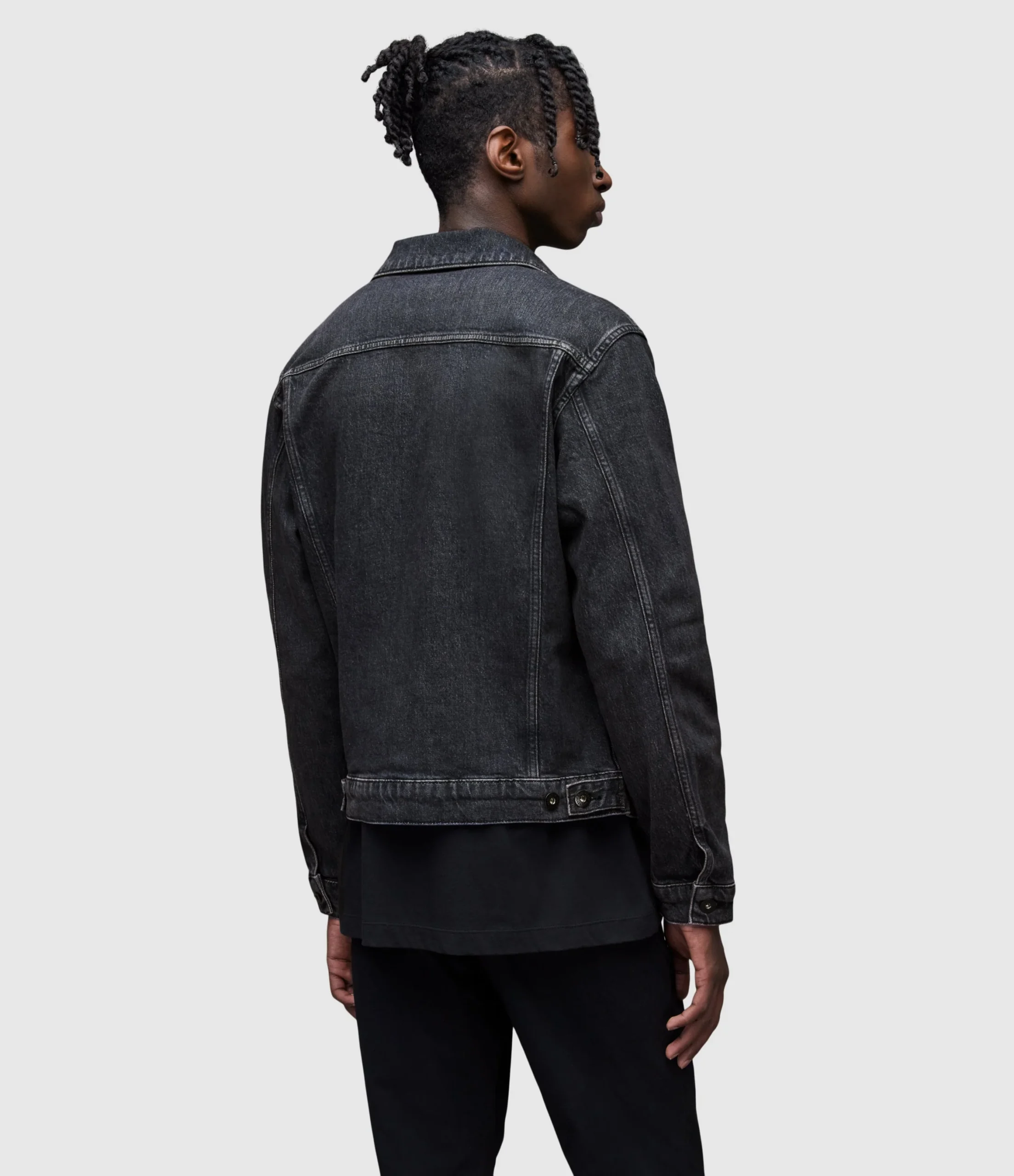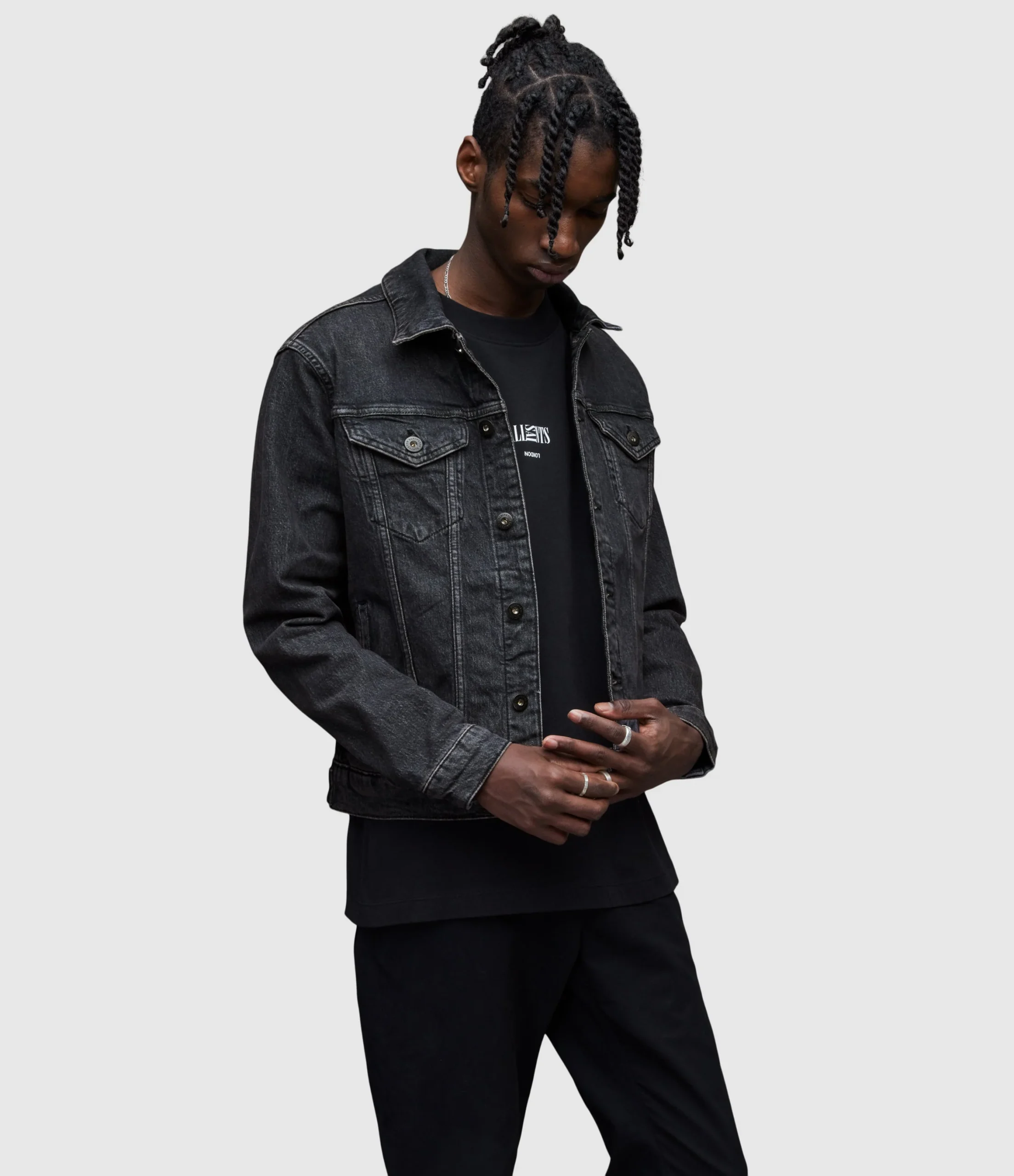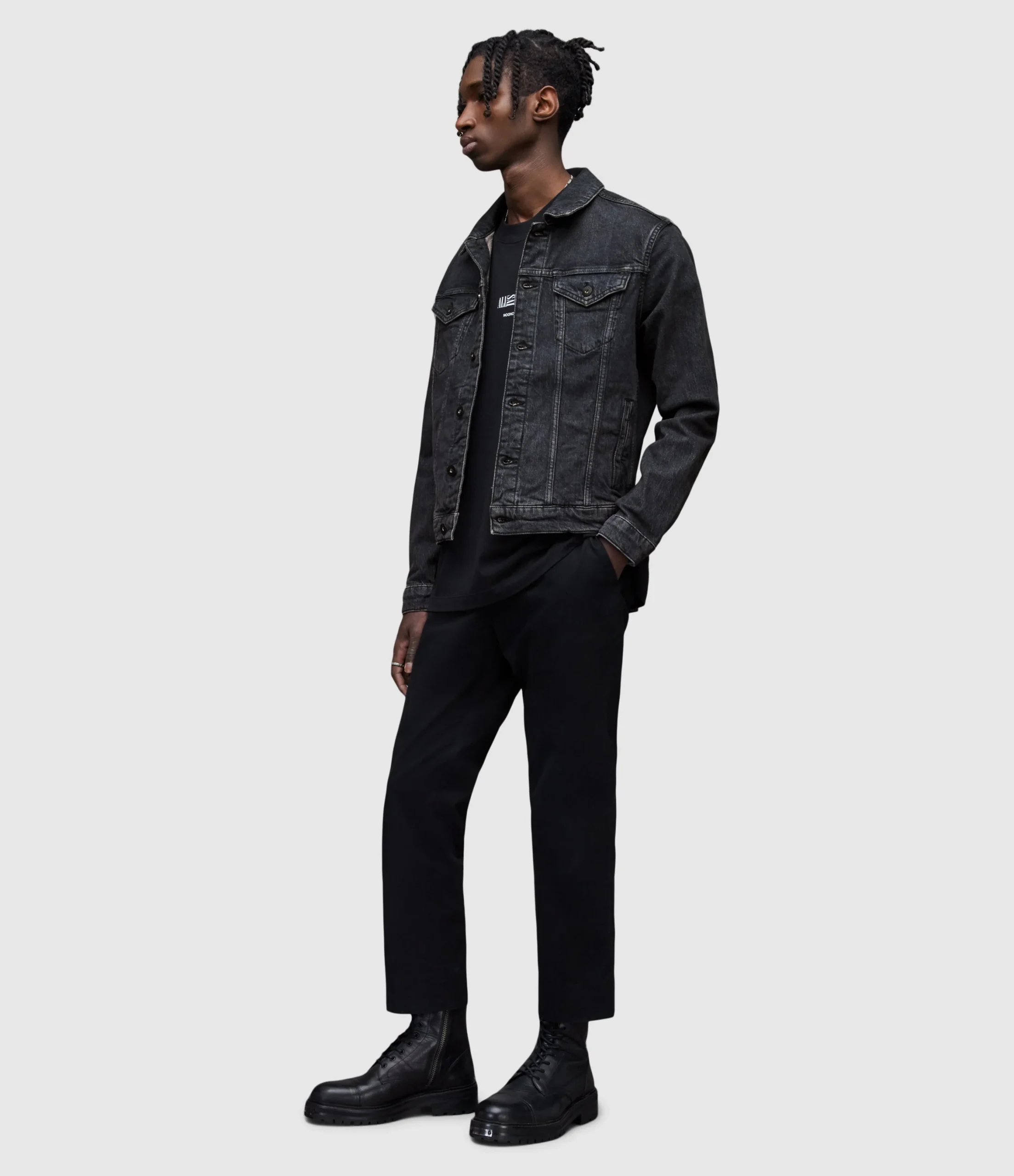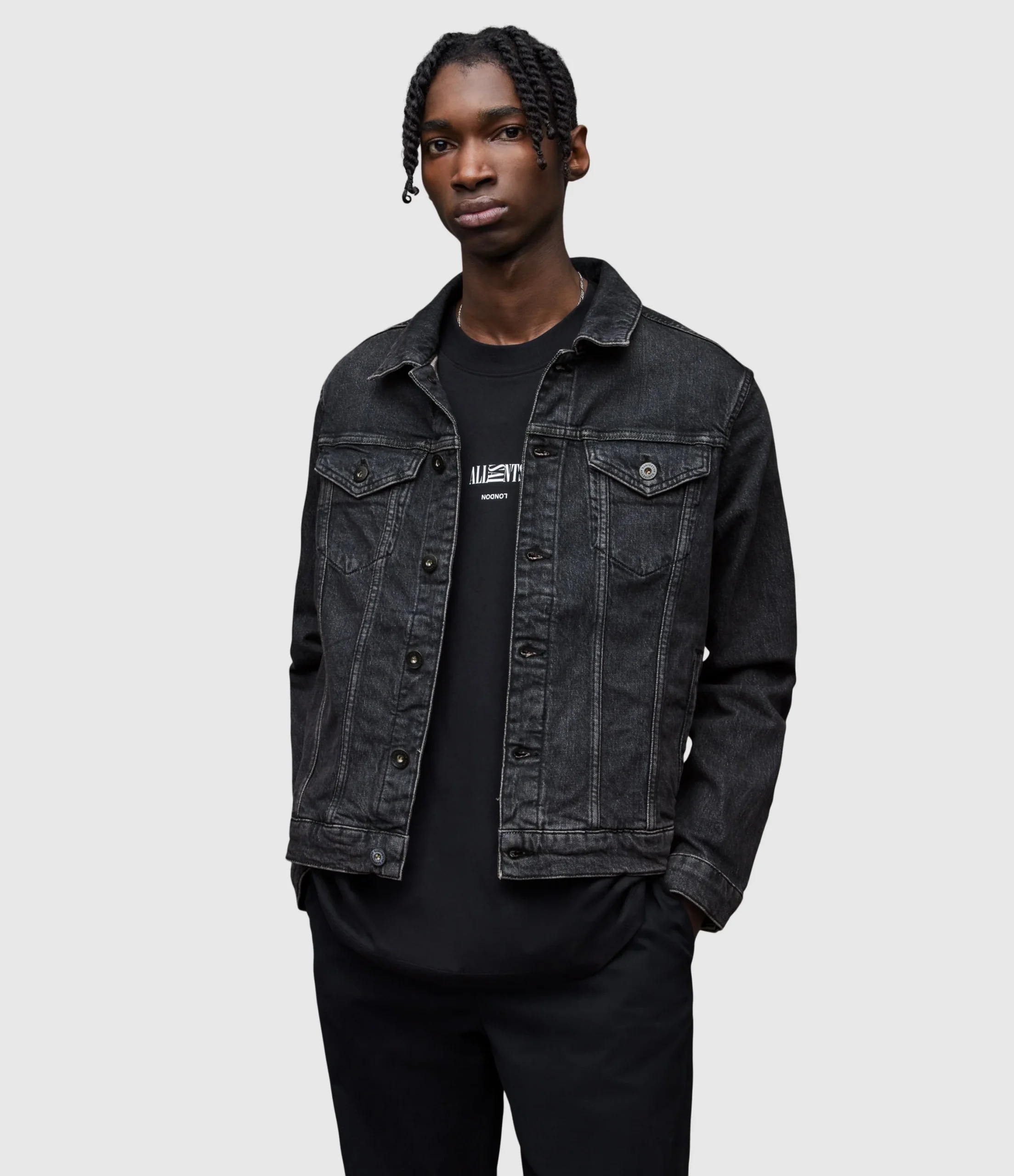 Chamarra Sheba Negro para hombre, marca AllSaints. COMPOSICIÓN Y LAVADO: Consultar etiqueta interna.