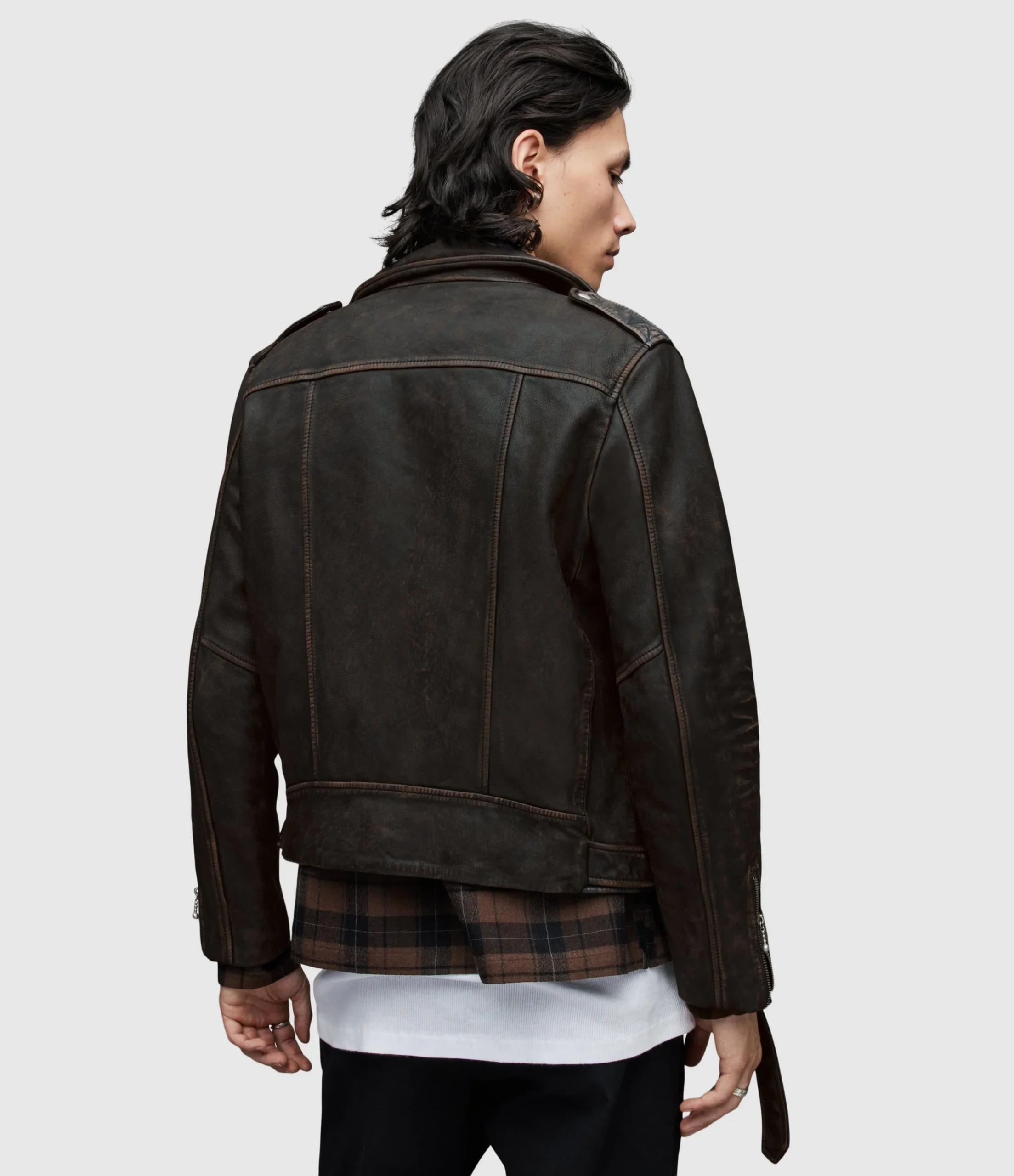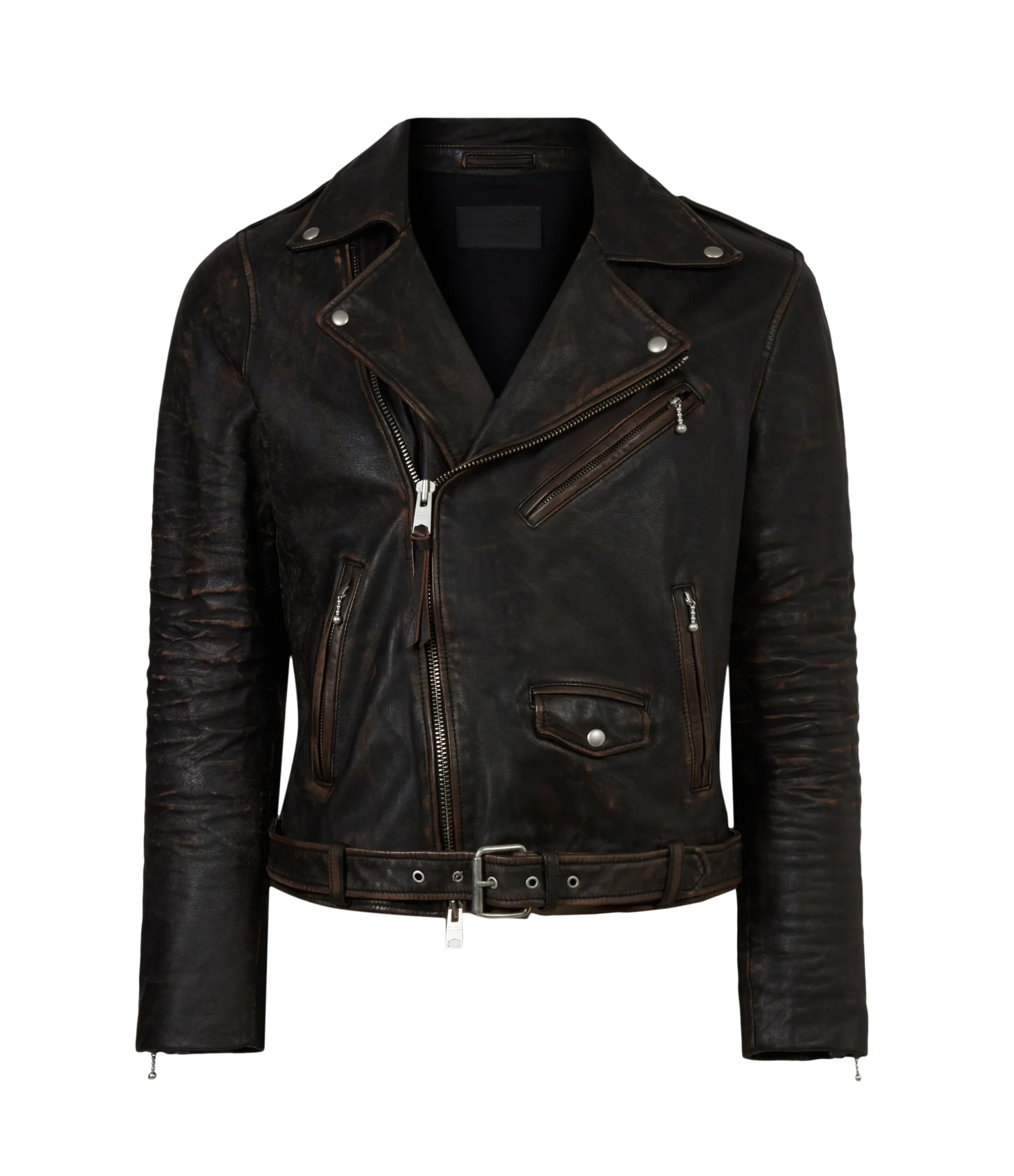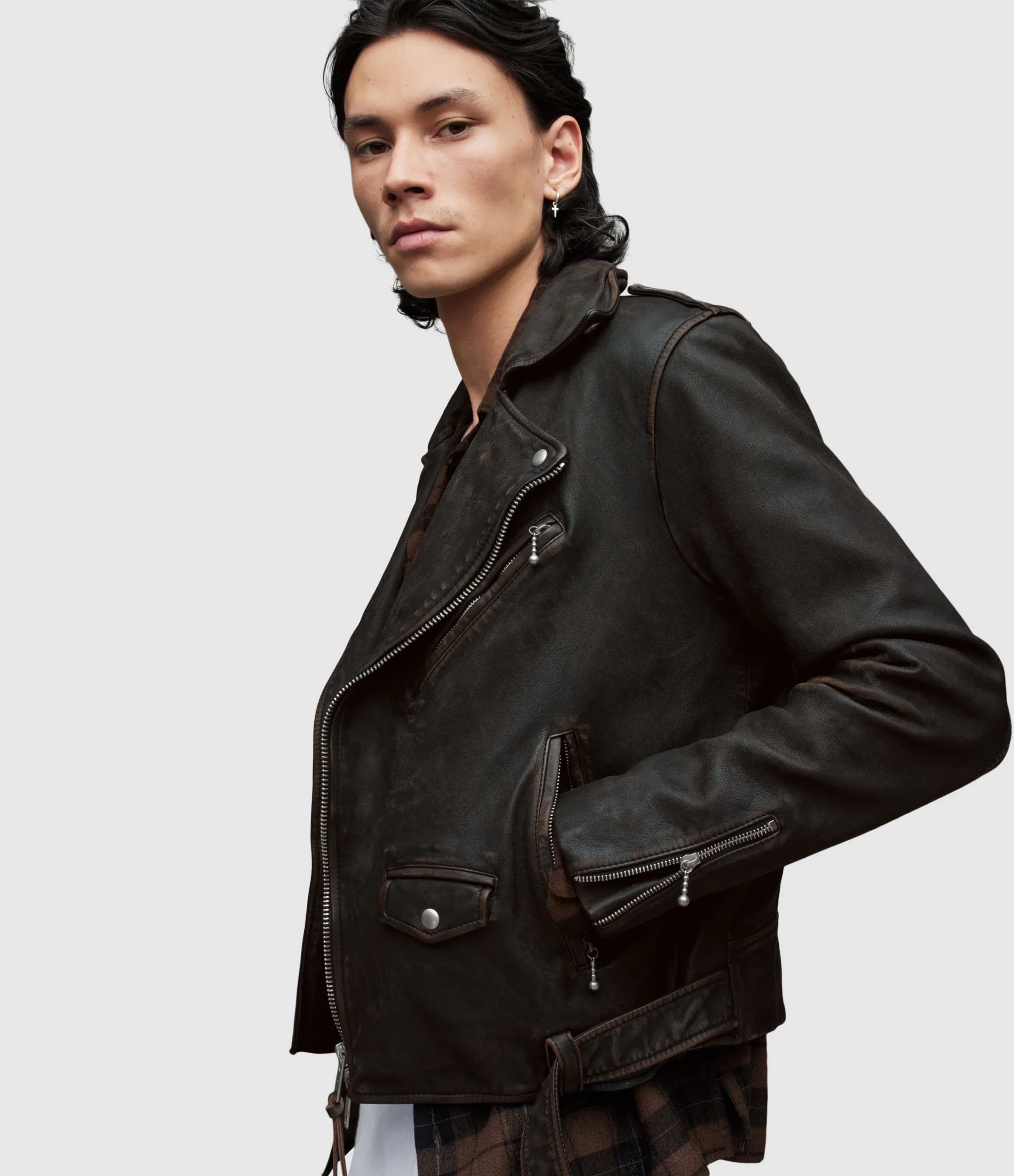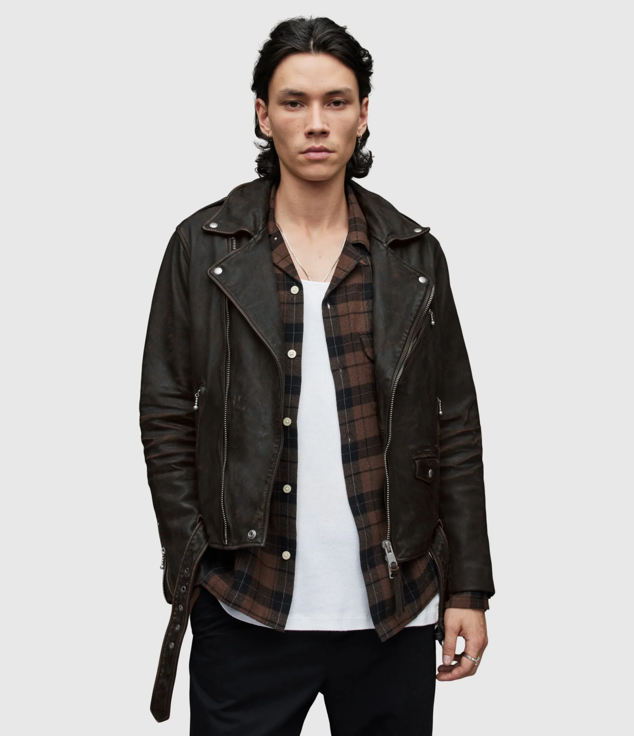 Chamarra Torren Café para hombre, marca AllSaints, estilo biker. COMPOSICIÓN Y LAVADO: Consultar etiqueta interna.