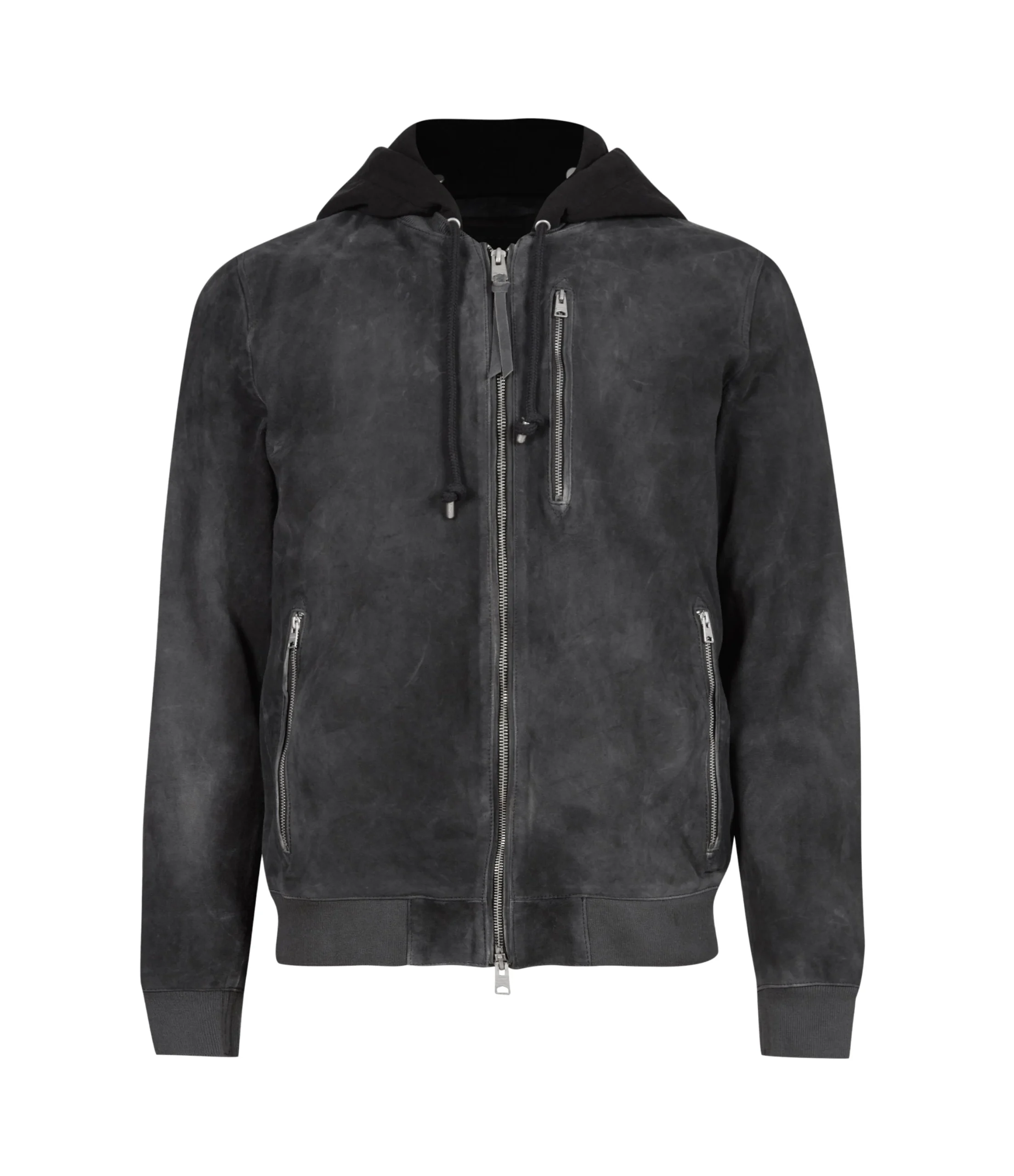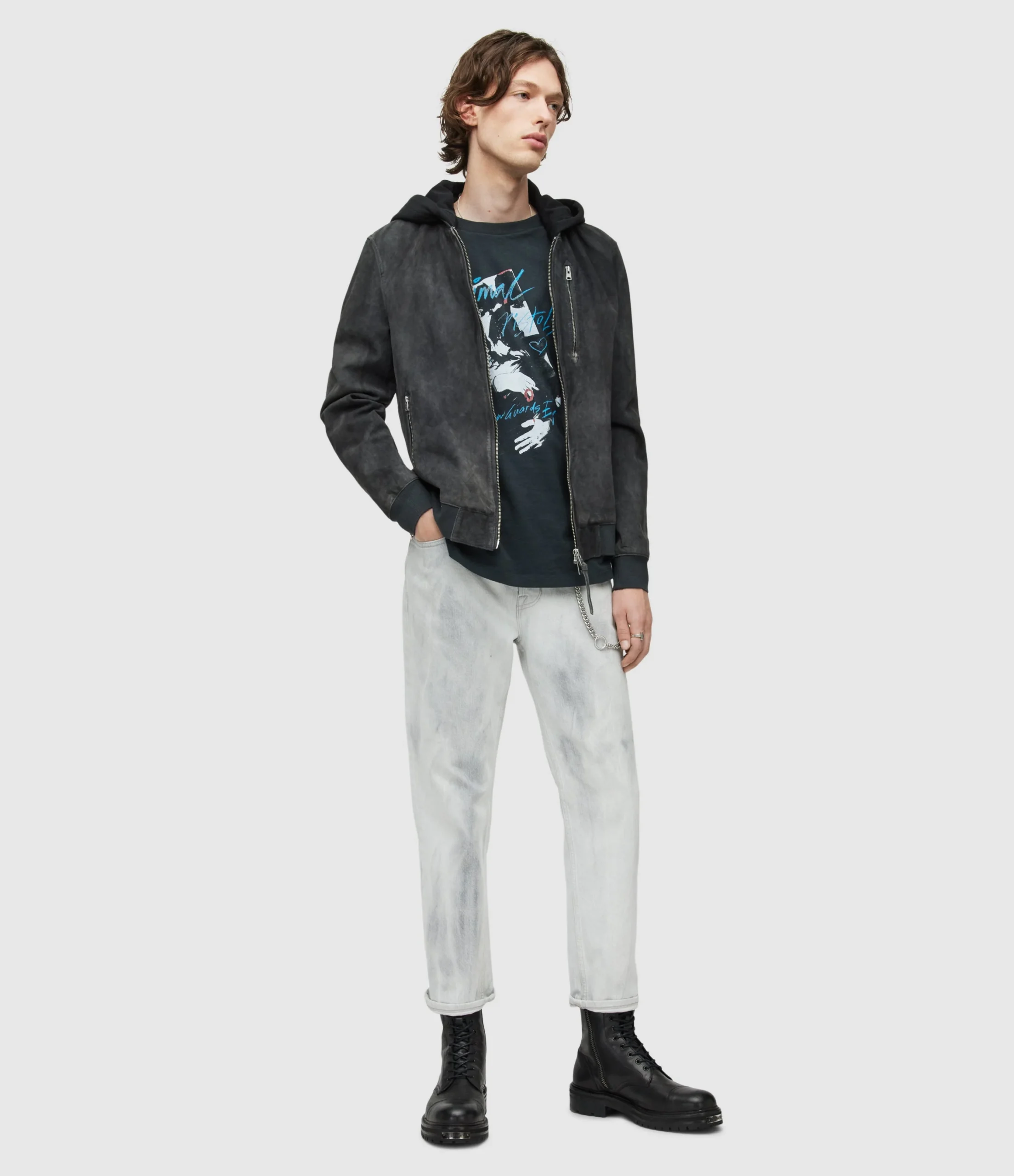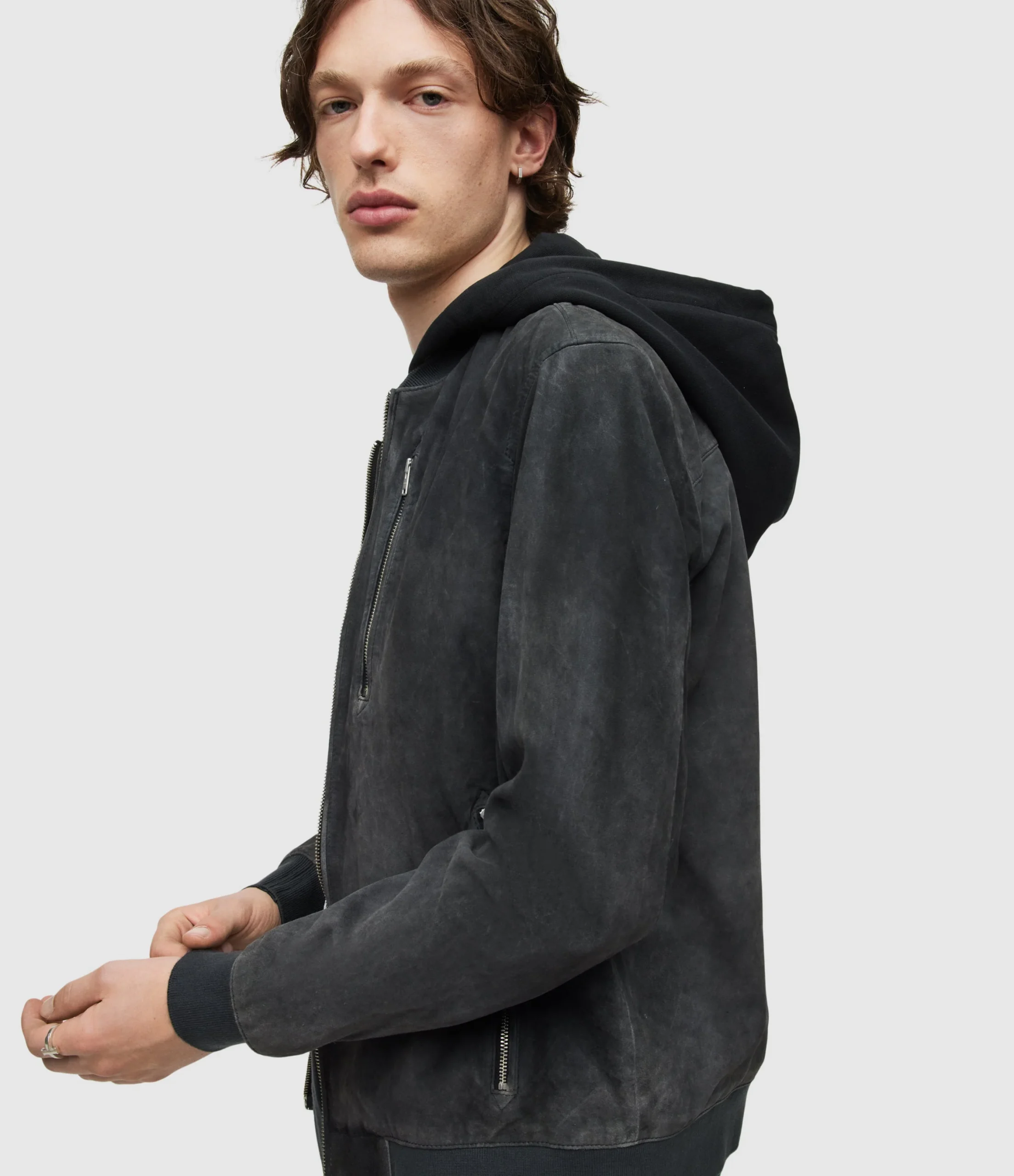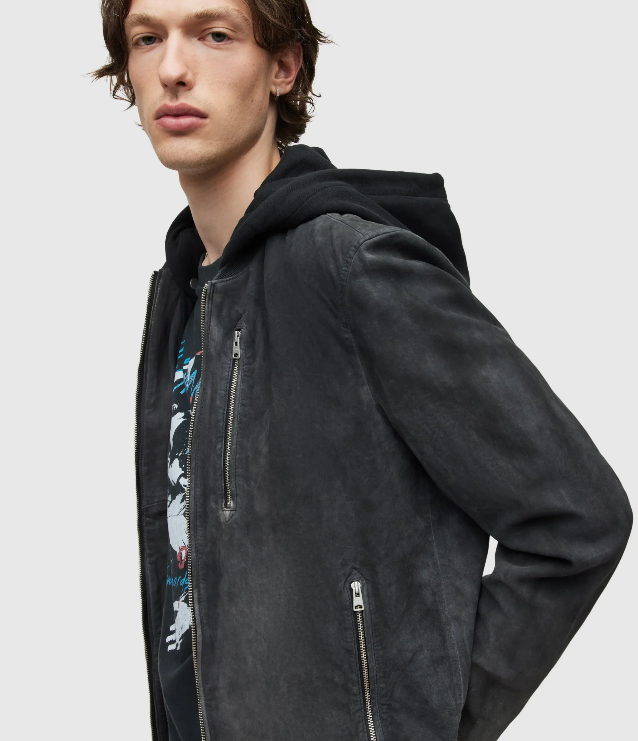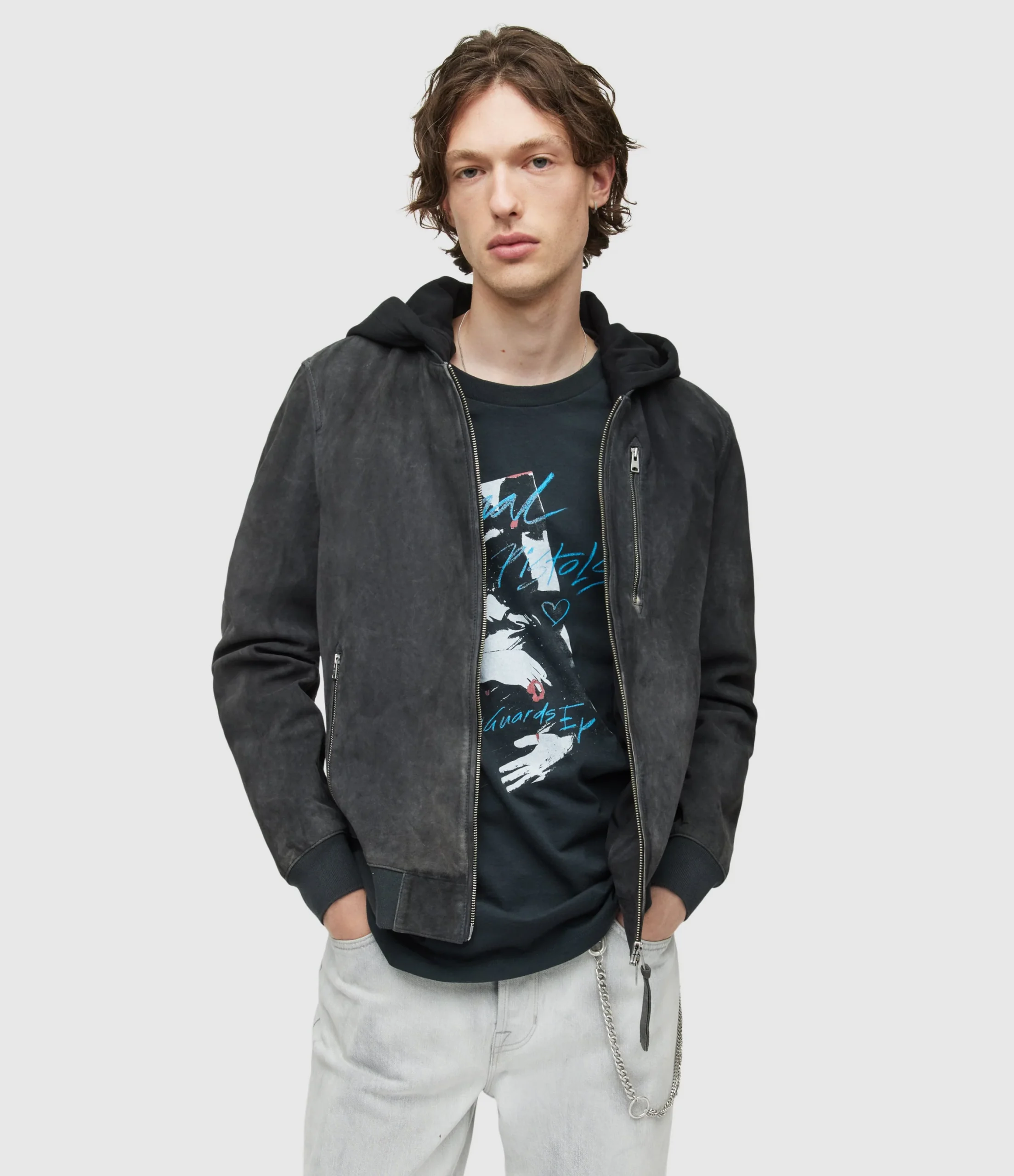 Chamarra Troy Negro para hombre, marca AllSaints, estilo bomber. COMPOSICIÓN Y LAVADO: Consultar etiqueta interna.