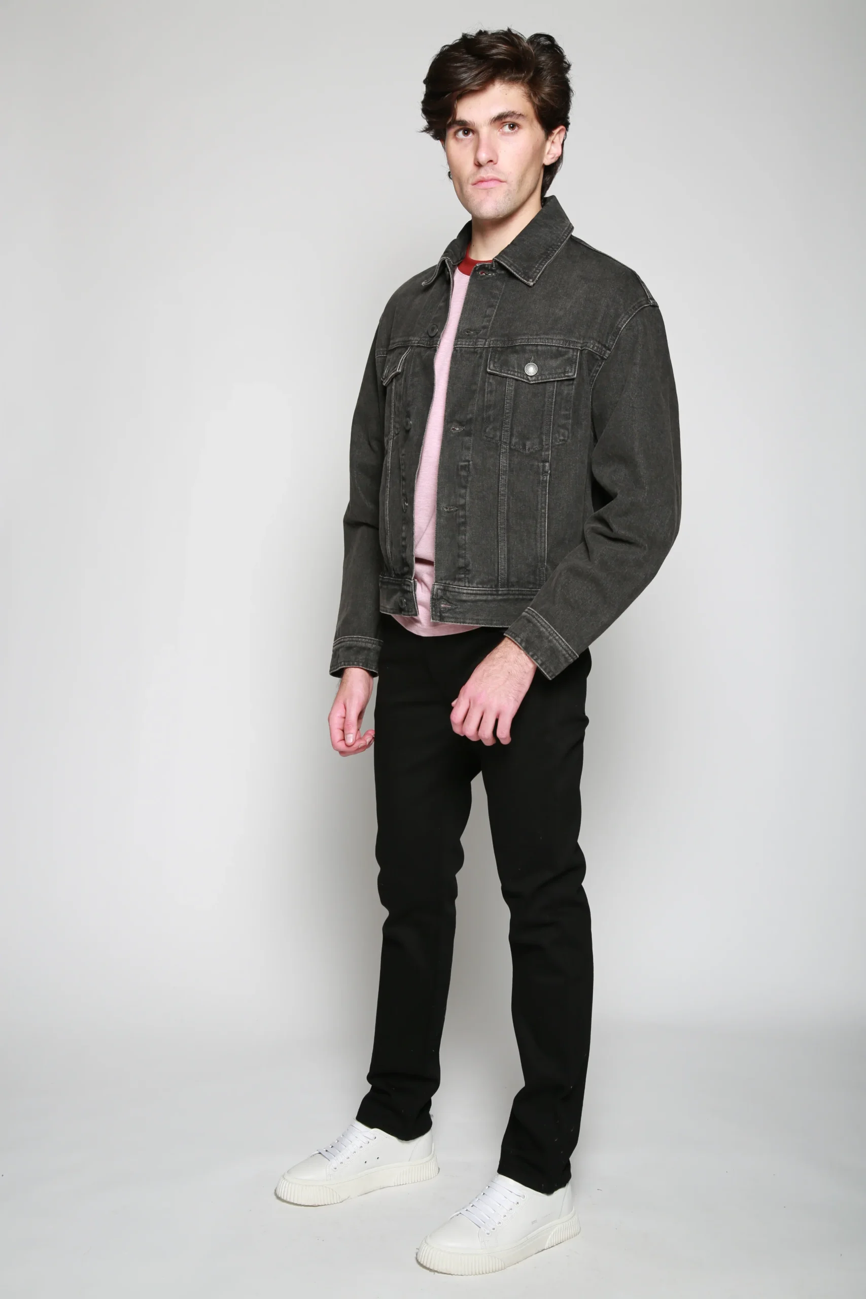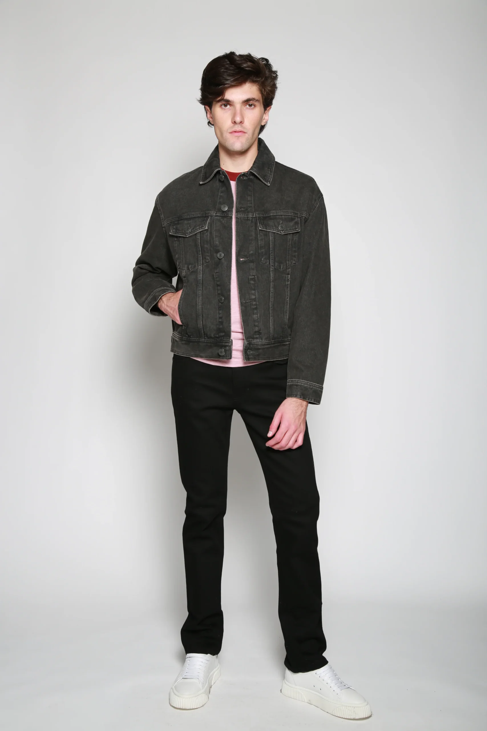 Chamarra Trucker Negro para hombre, marca AMI Paris. COMPOSICIÓN Y LAVADO: Consultar etiqueta interna.
