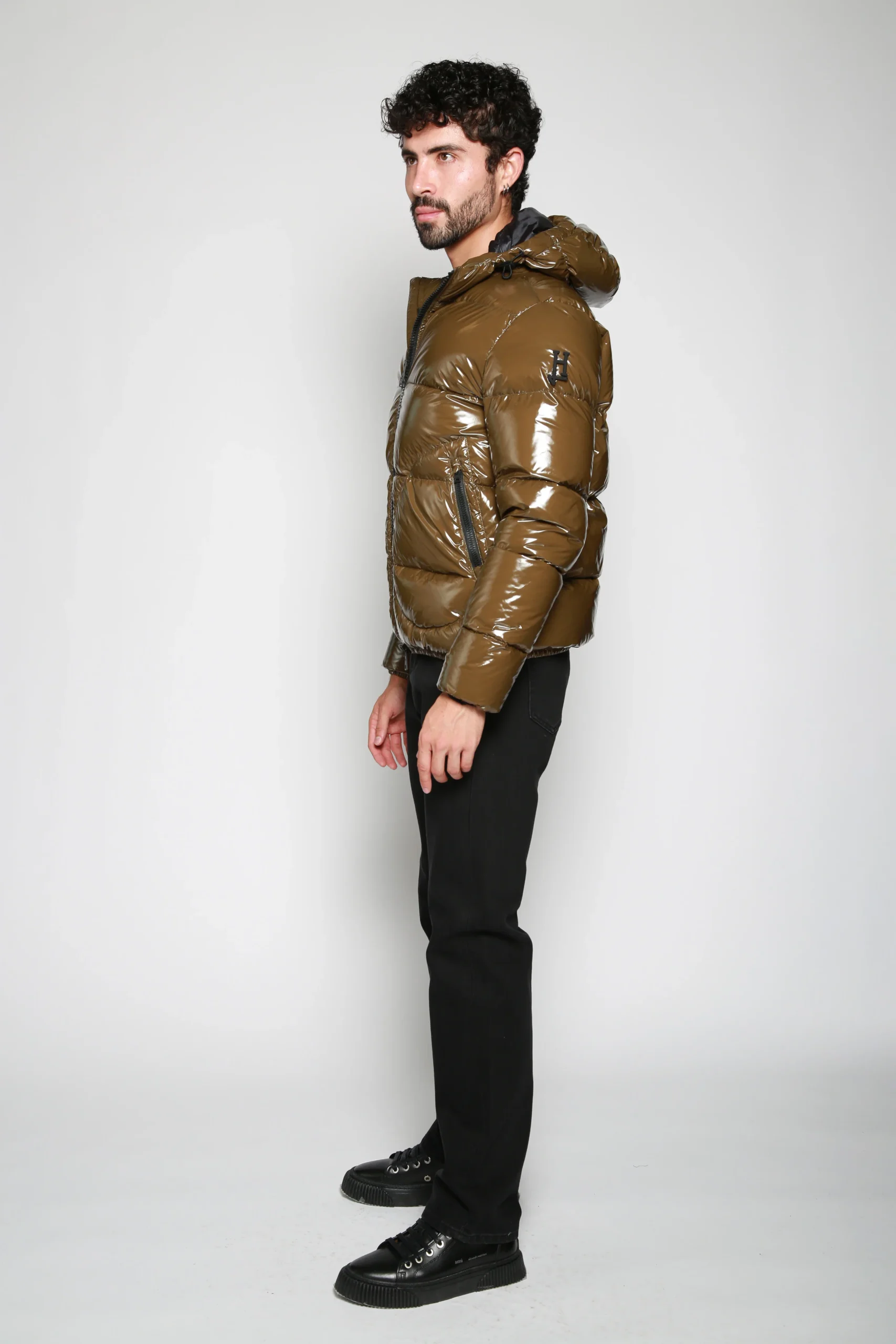 Chamarra Woven Jacket Olivo para hombre, marca Herno. COMPOSICIÓN Y LAVADO: Consultar etiqueta interna.