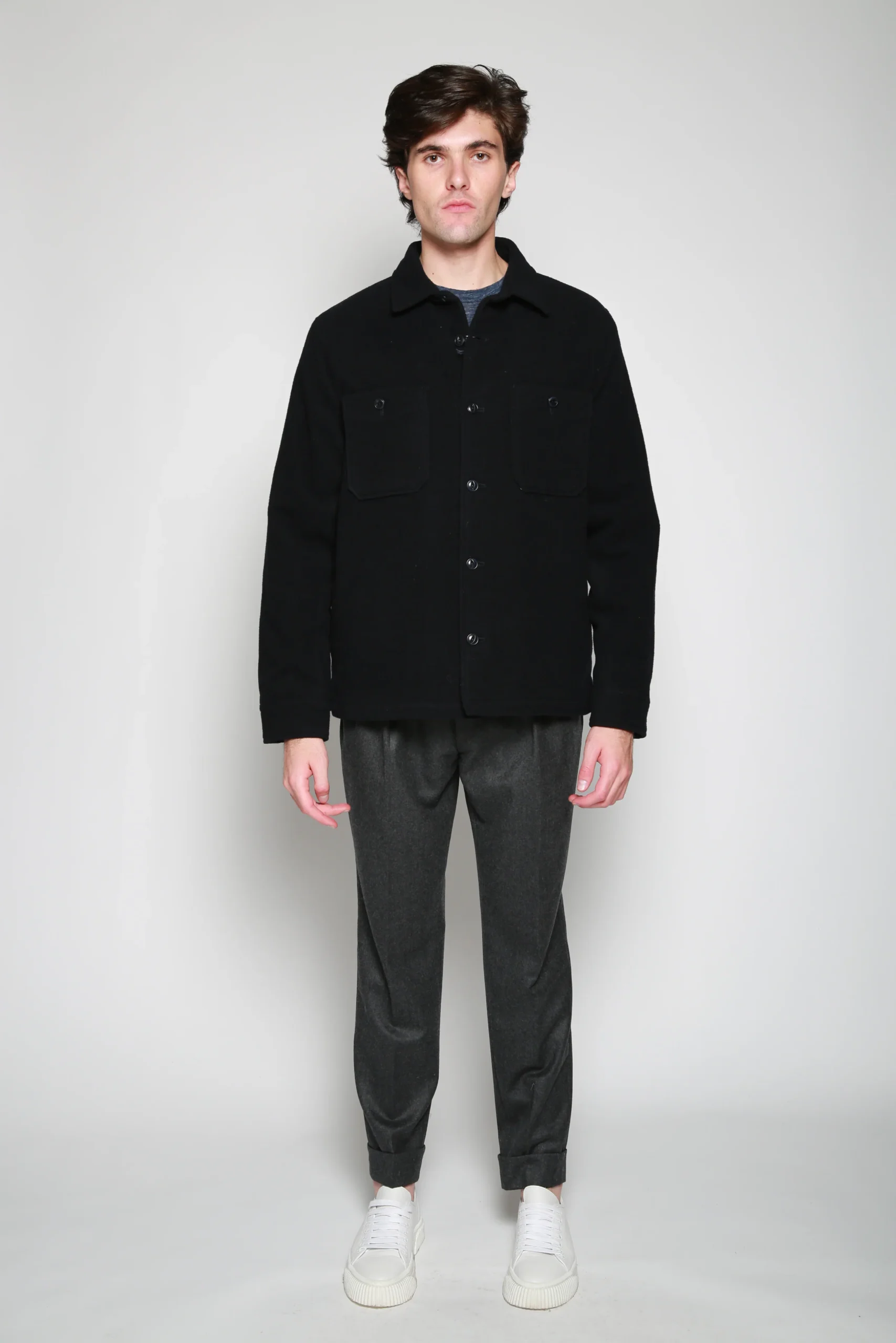 Chamarra Woven Marino para hombre, marca Officine Générale. COMPOSICIÓN Y LAVADO: Consultar etiqueta interna.