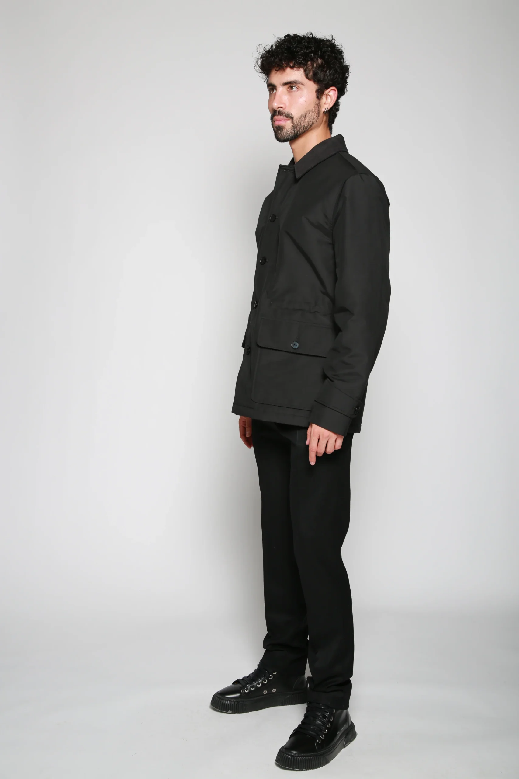 Chamarra Woven Negro para hombre, marca Officine Générale. COMPOSICIÓN Y LAVADO: Consultar etiqueta interna.