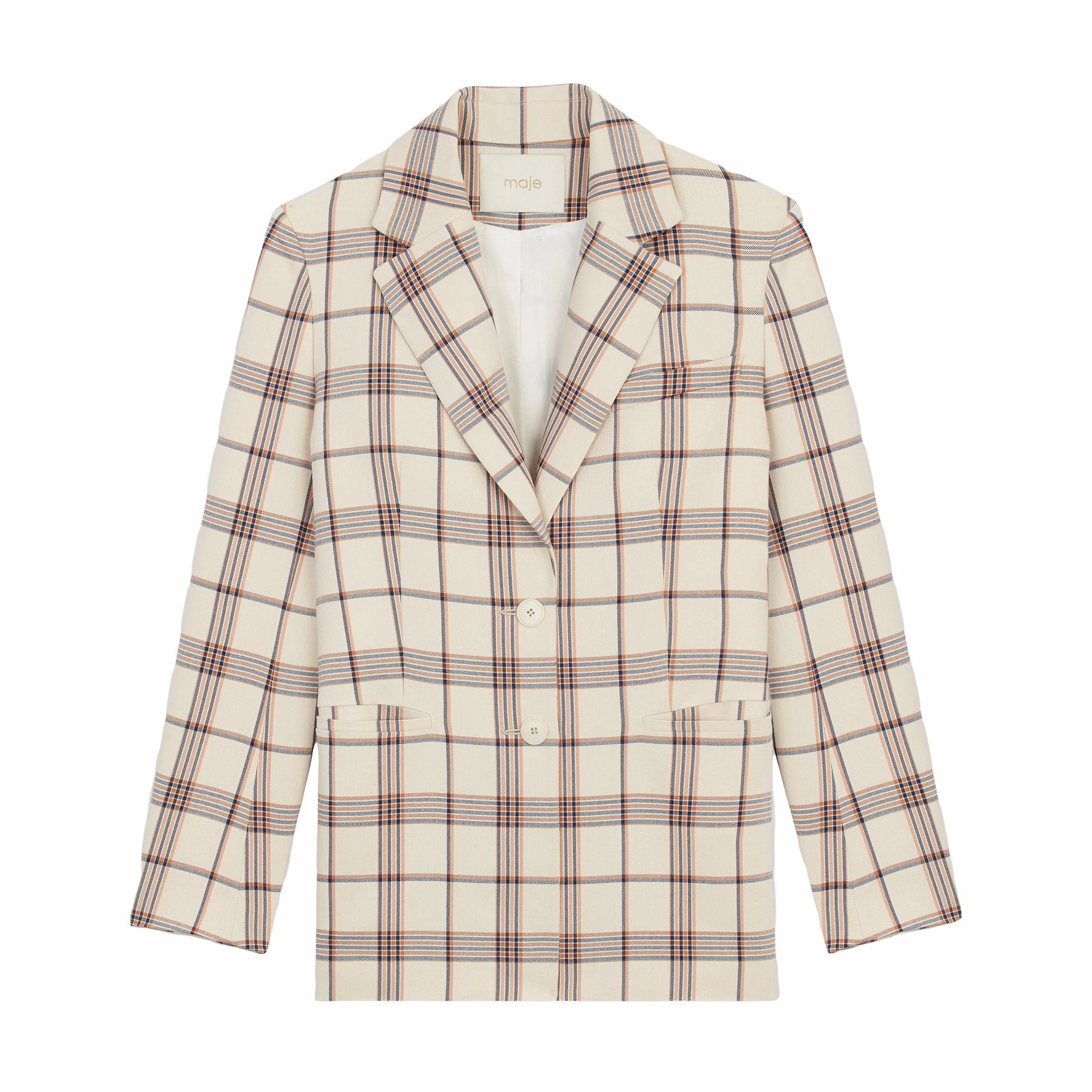 CHAQUETA BEIGE ESTAMPADO, MARCA MAJE. CHAQUETA SASTRE A CUADROS, CUELLO SASTRE MANGAS LARGAS CON PUÑOS ABIERTOS ABOTONADOS, BOLSILLO EN EL PECHO, BEIGE . TEJIDO PRINCIPAL:54% POLIÉSTER, 43% VISCOSA, 3% ELASTANO;FORRO:100% VISCOSA;. LAVADO = NO LAVAR / BCH = SIN BLANQUEAR / SECAR = NO USAR SECADORA / IRONING = PLANCHAR A UNA TEMPERATURA MÁXIMA DE 110 ° C SIN VAPOR / PRENSADO = LIMPIEZA EN SECO PROFESIONAL, PC Y HC TRATAMIENTO MODERADO.
