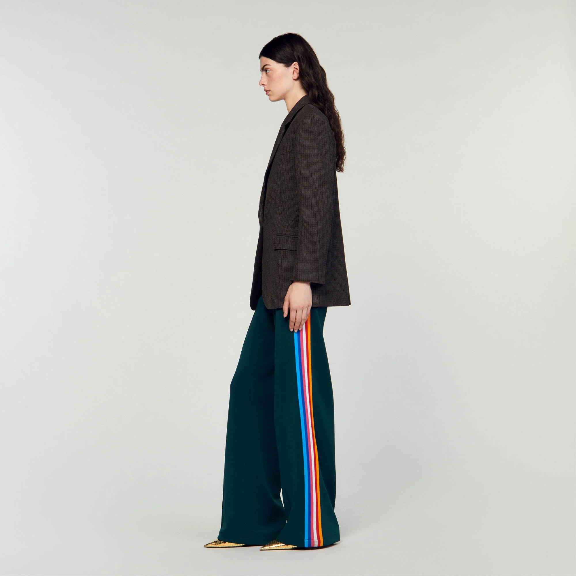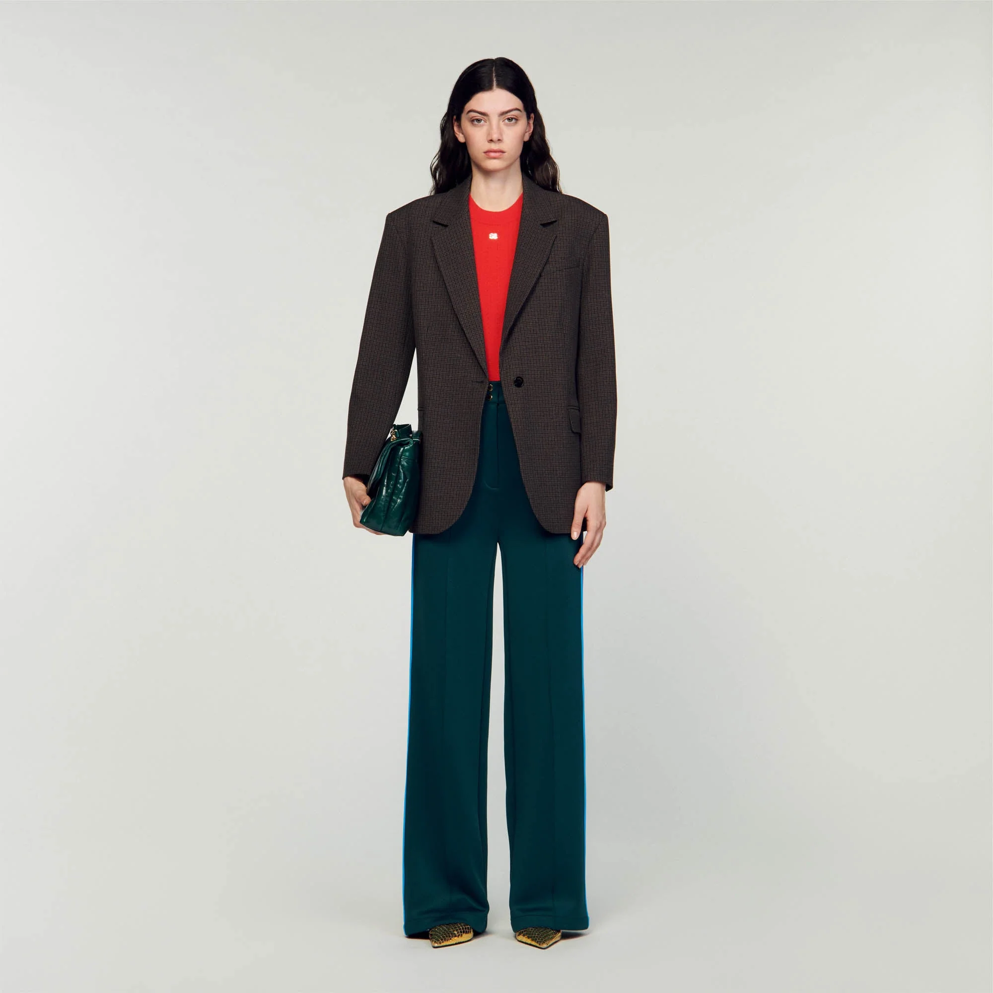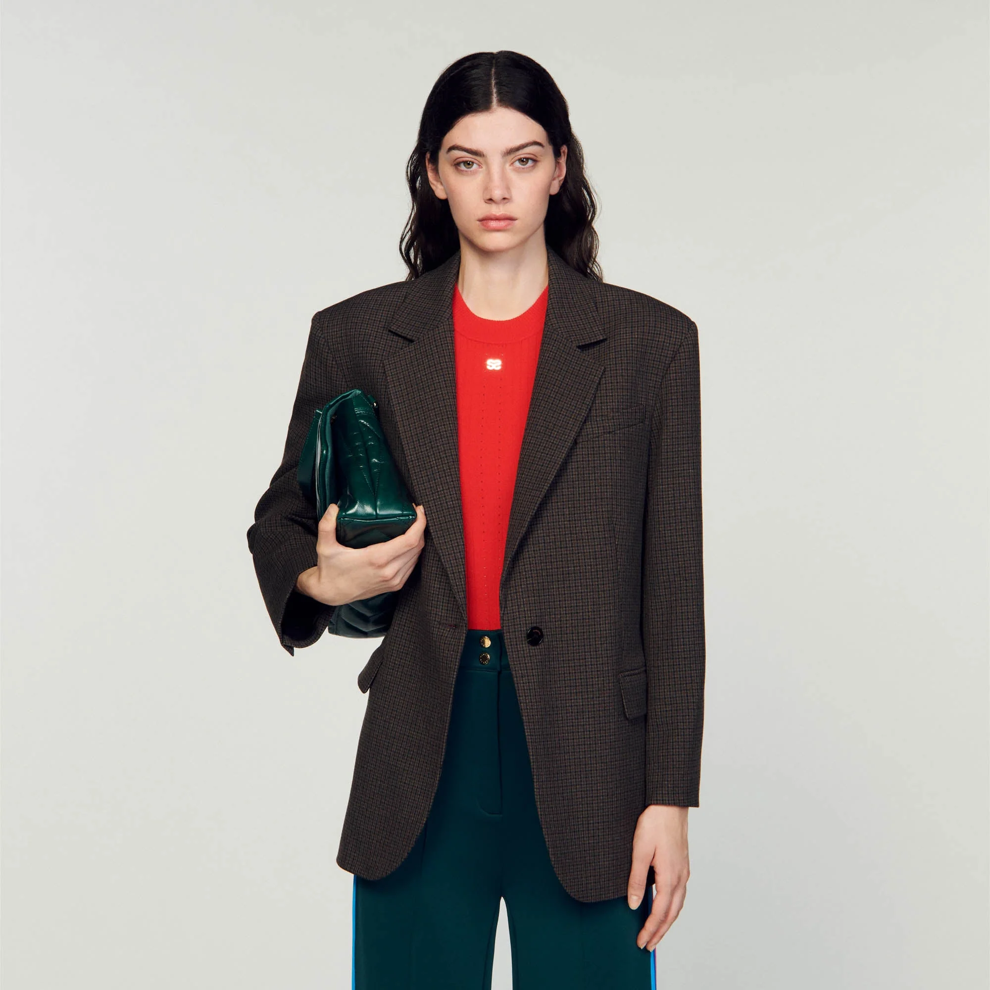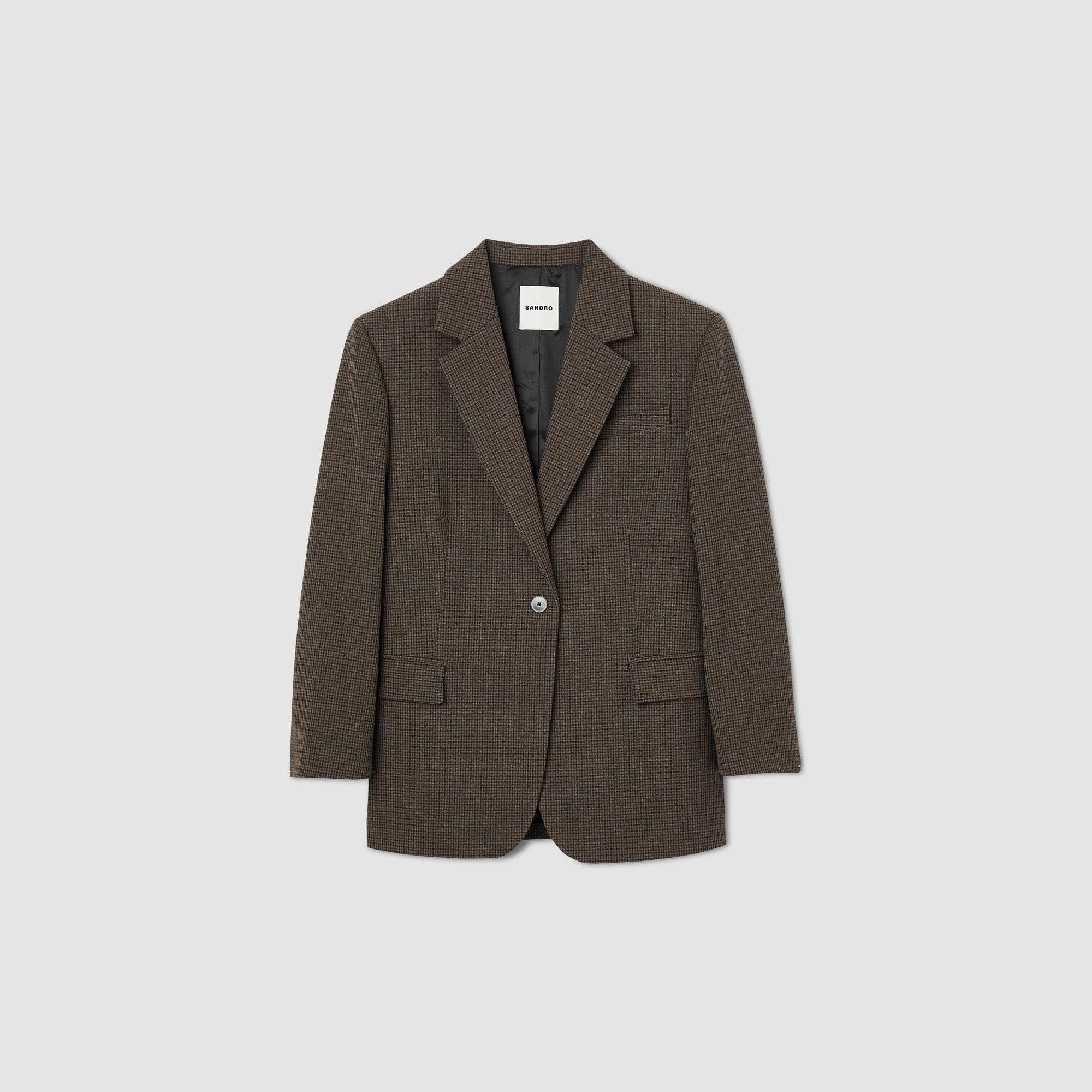 Chaqueta de traje ancha con motivo de cuadros pequeños, mangas largas y bolsillos con solapa.• Chaqueta de traje ancha Sandro Femme