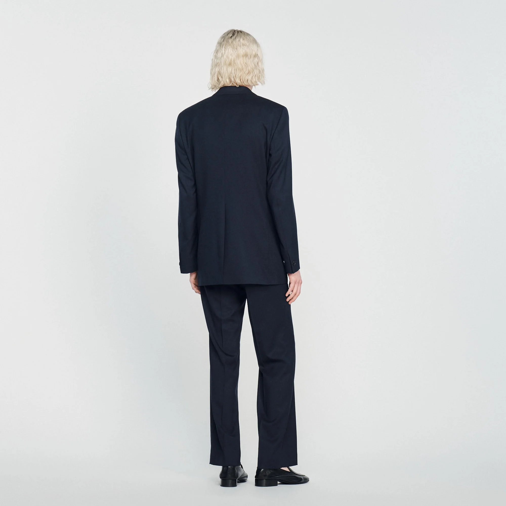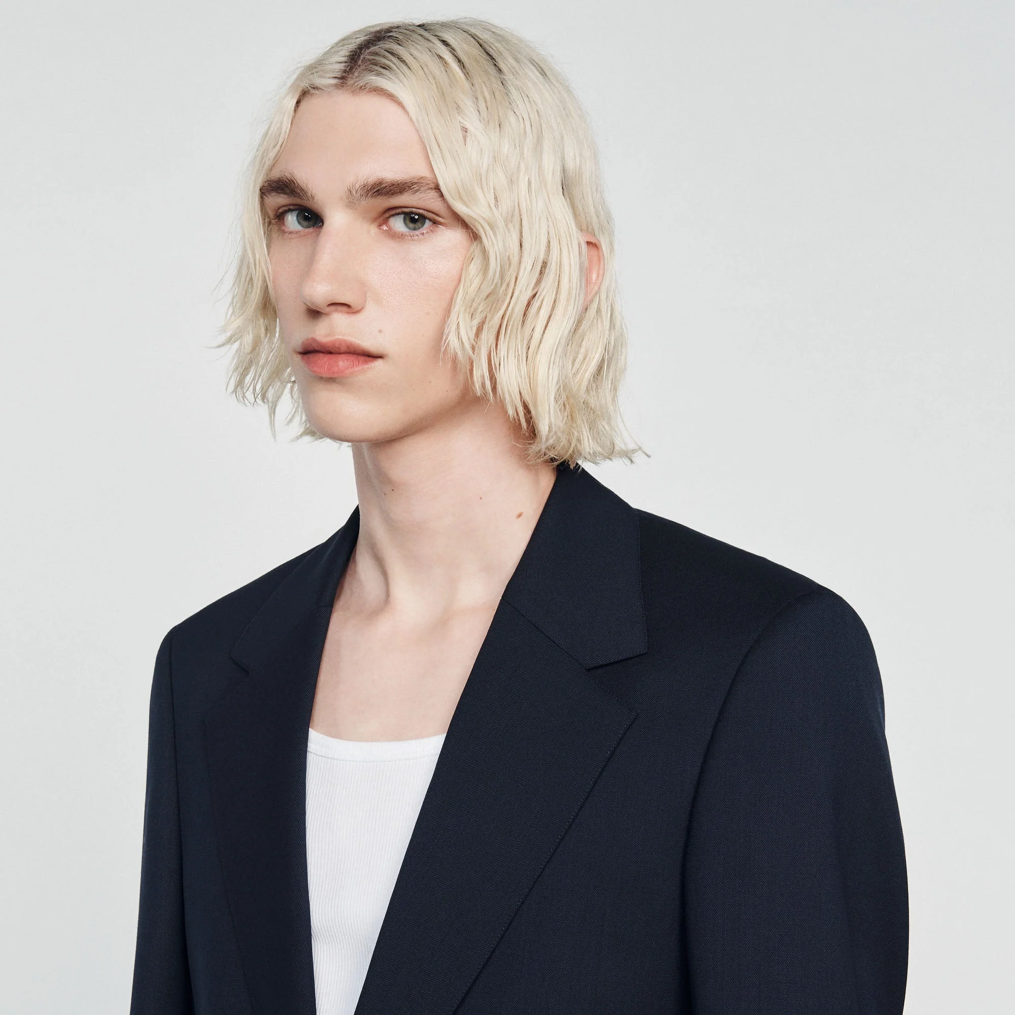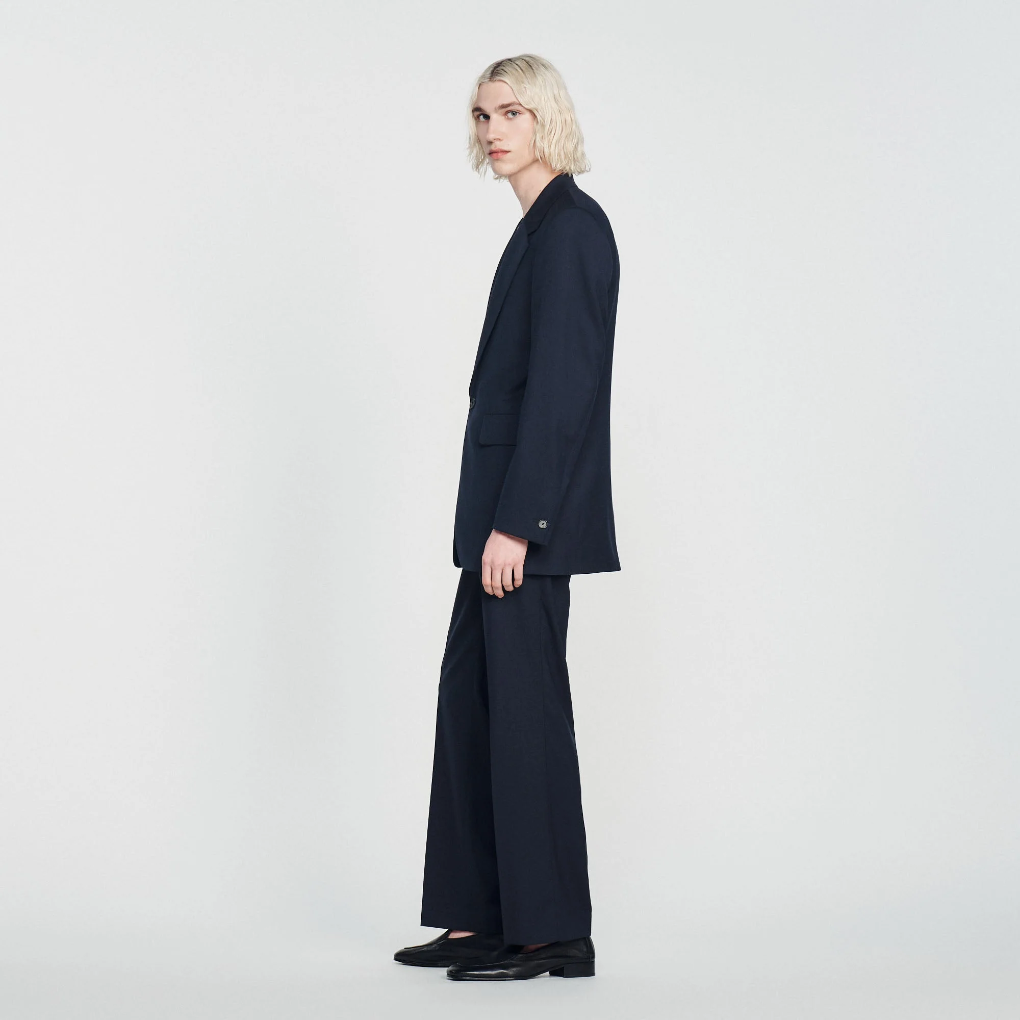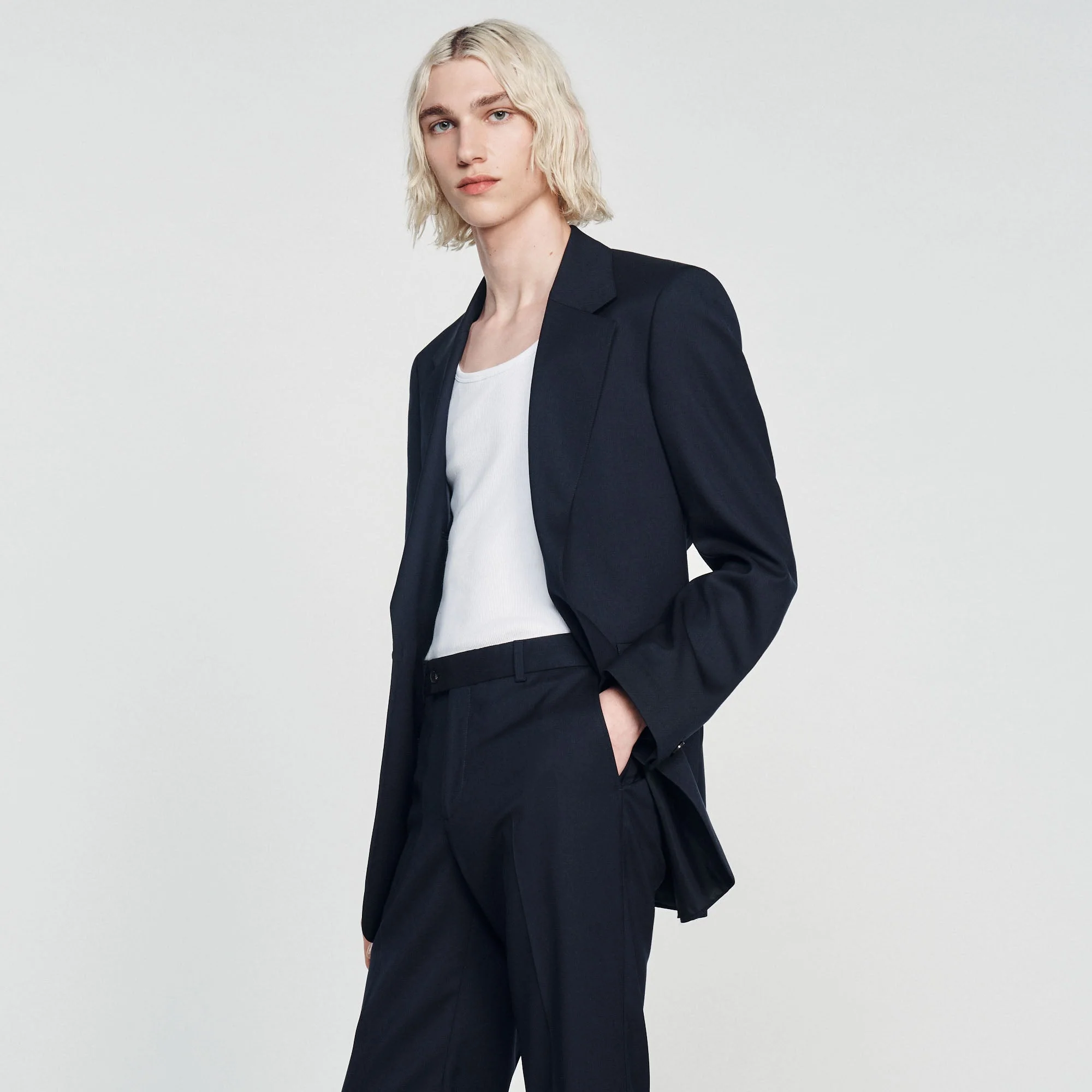 Chaqueta de traje de corte ancho de manga larga y cuello ancho de lana, confeccionado de tejido italiano, con cierre de un botón, bolsillos con solapa y abertura en la parte trasera.• Chaqueta de traje de lana Sandro de hombre