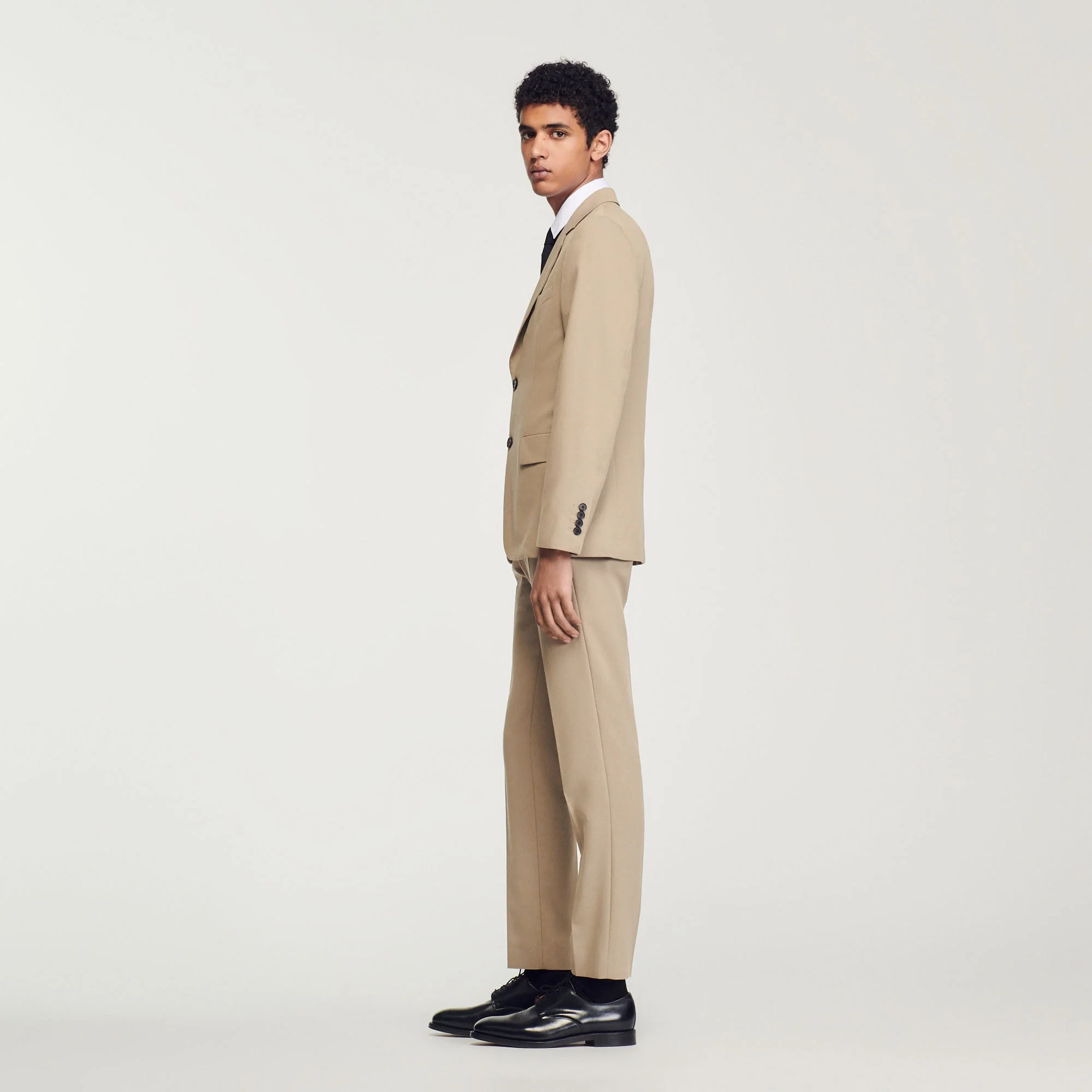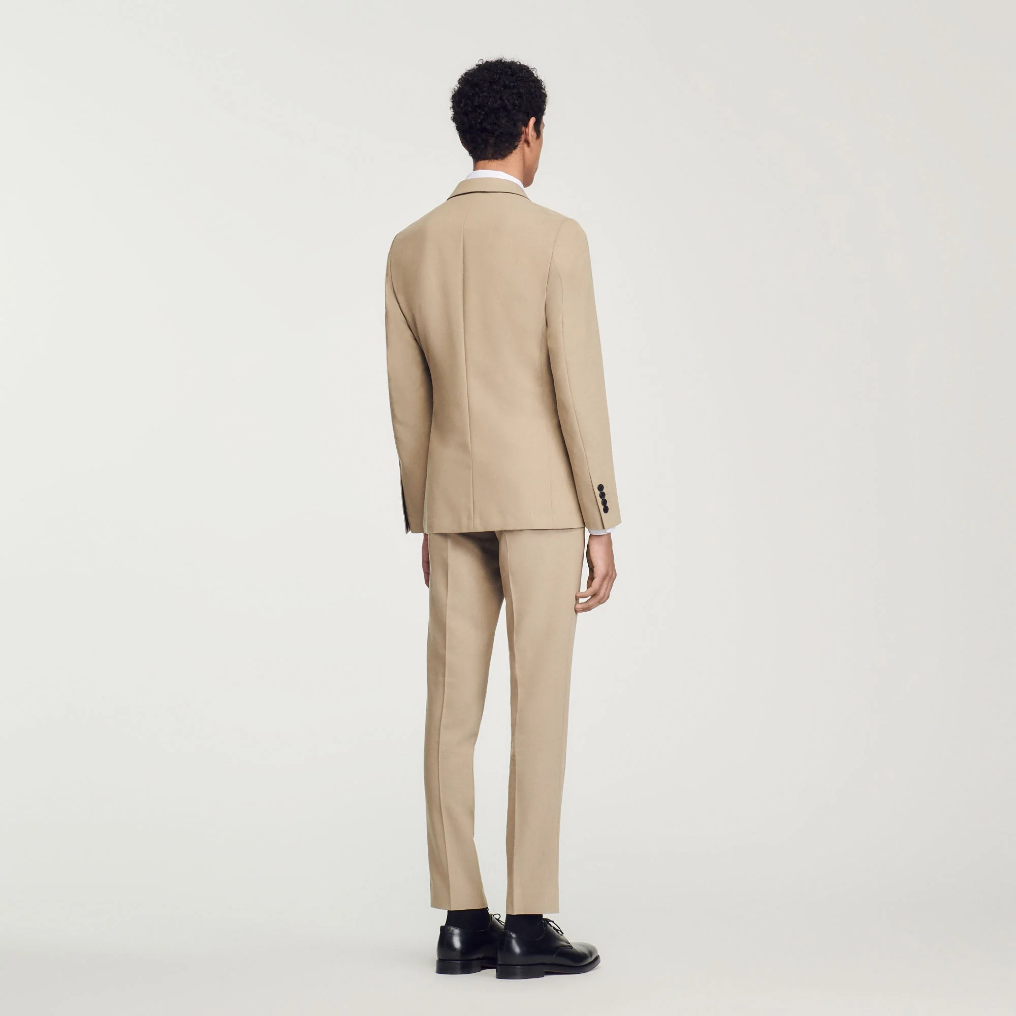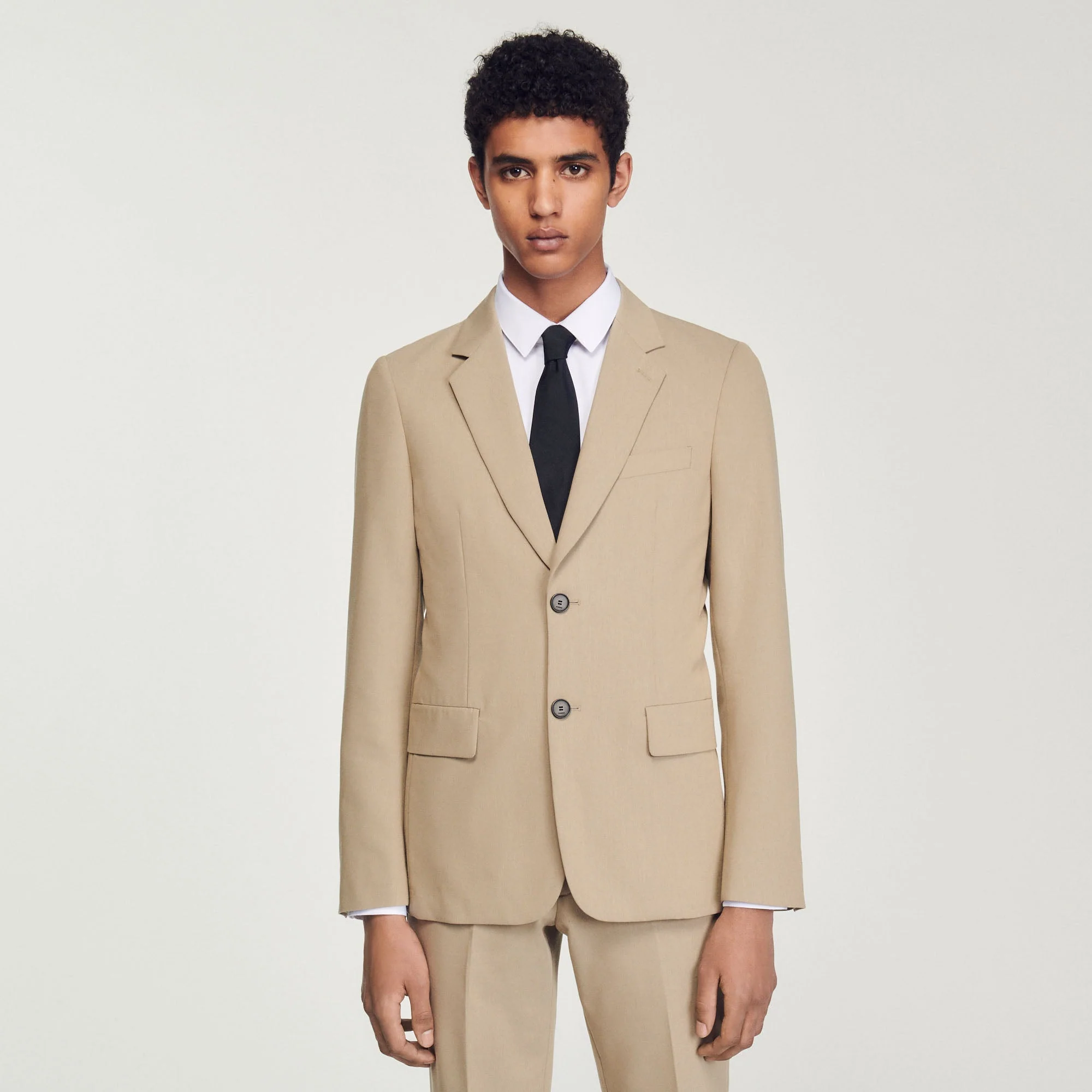 Chaqueta de traje de corte desestructurado de manga larga de mezcla de lana con cierre de dos botones y bolsillos con solapa.• Chaqueta de mezcla de lana