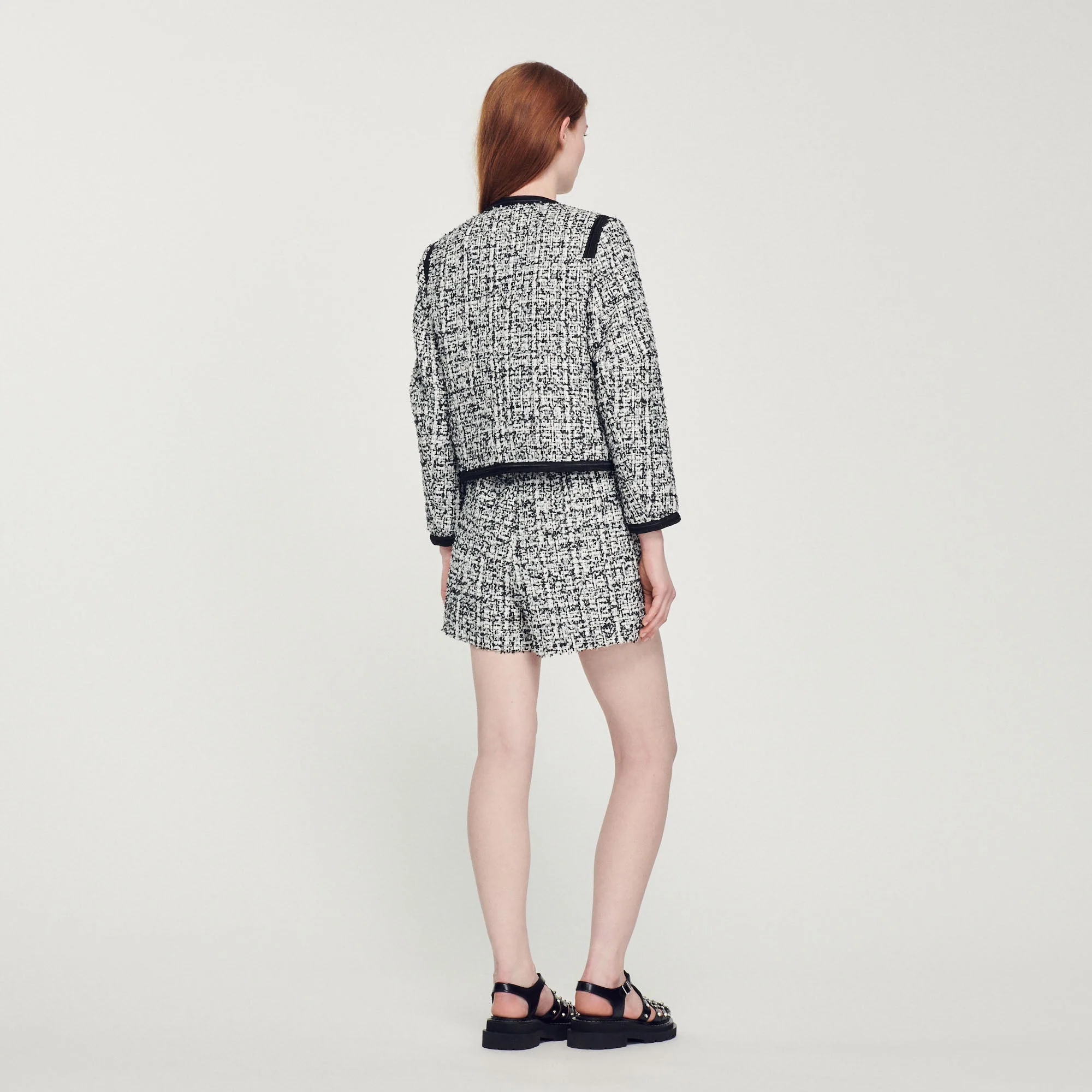 Chaqueta de manga larga y cuello redondo de tweed fantasía bicolor, sublimada con pasamanos en contraste y cierre de 3 corchetes.Chaqueta de tweed Sandro de mujer