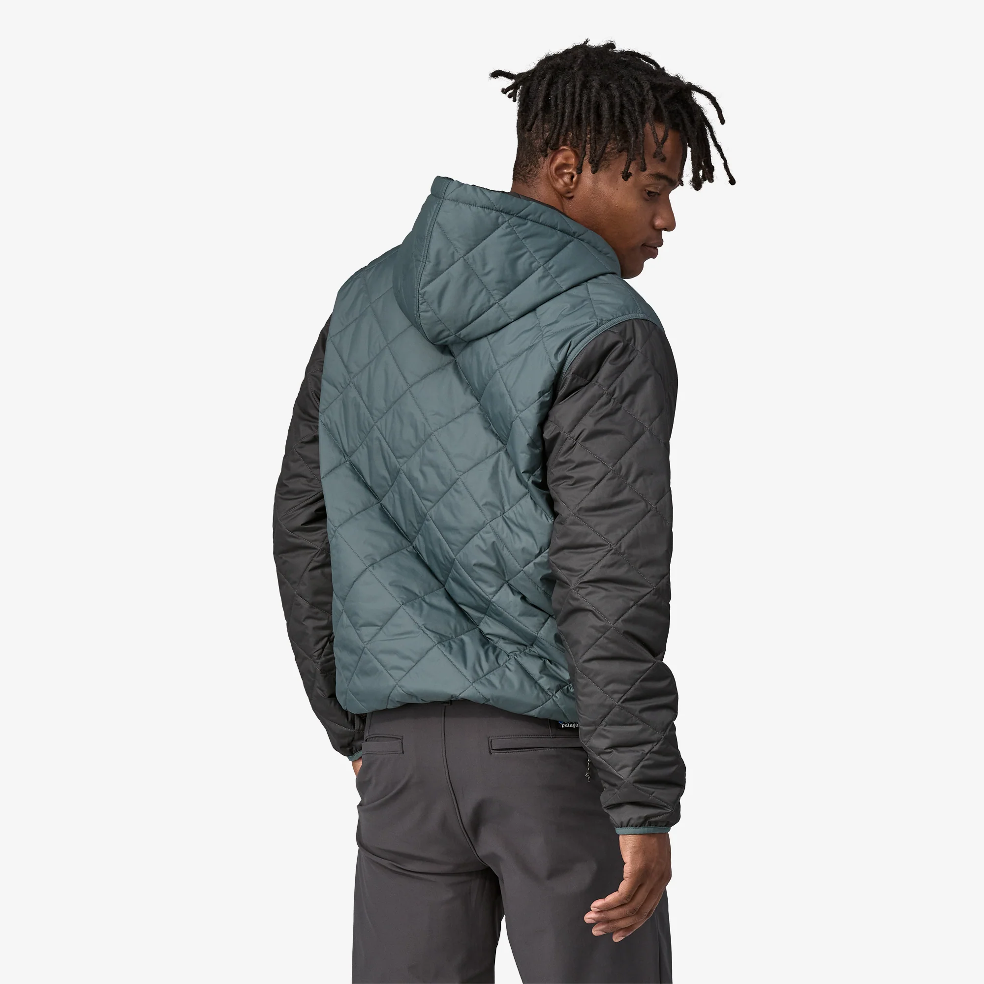 El cuerpo y el forro de tafetán de poliéster 100% reciclado están fabricados con un acabado DWR sin PFC (revestimiento duradero repelente al agua que no contiene productos químicos perfluorados); relleno con poliéster Thermogreen® de 80-g (90% reciclado)
