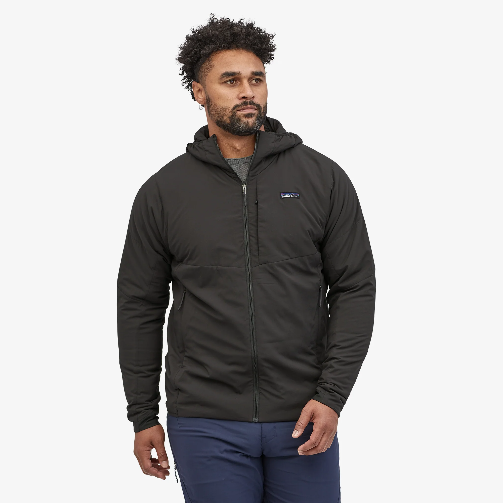 Los dos bolsillos para las manos y el que está a la izquierda del pecho tienen cierre, bajo perfil y poco volumen, para usar cómodamente con un arnés o mochila; la Chaqueta se guarda en el bolsillo del pecho