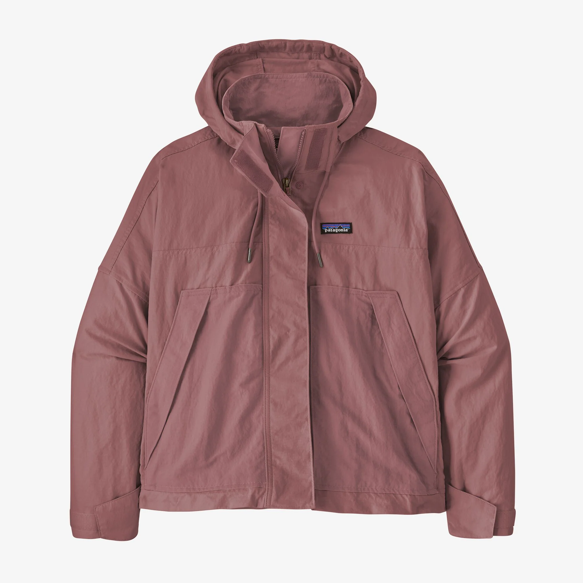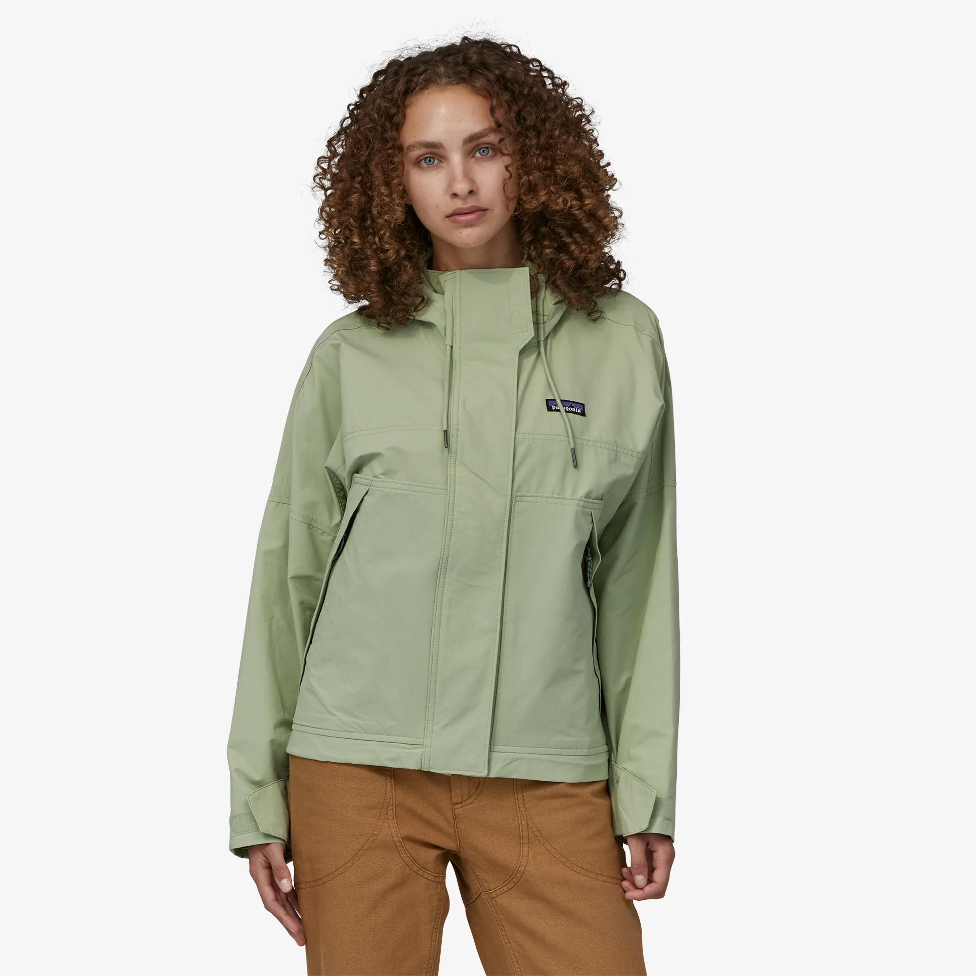 La cremallera Vislon® en el centro del frente está cubierta por una solapa ancha que se cierra con broches invisibles y un cierre hook-and-loop en el cuello