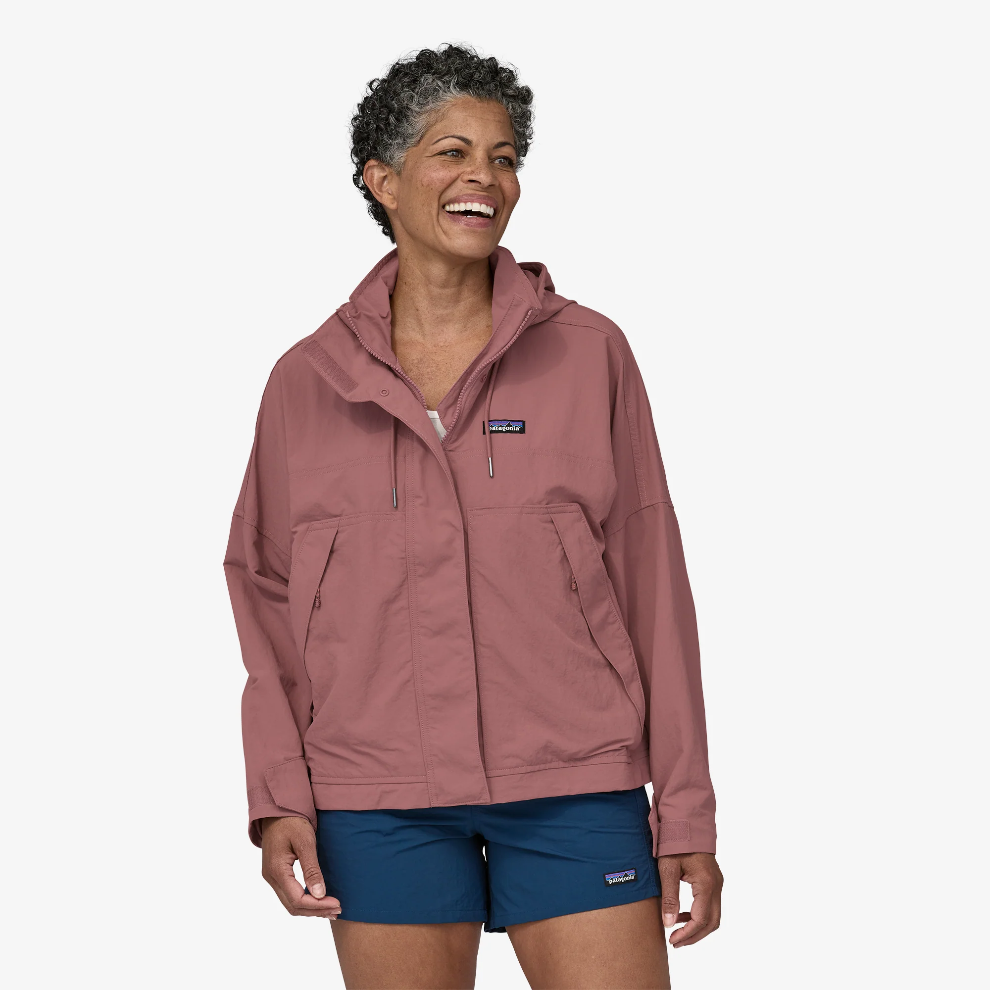 • 4.2-oz (119 g) de 95% nylon (65% reciclado)/5% spandex con acabado DWR (repelente al agua duradero) y protección solar 40+ UPF. La tela tiene certificación bluesign® aprobada
