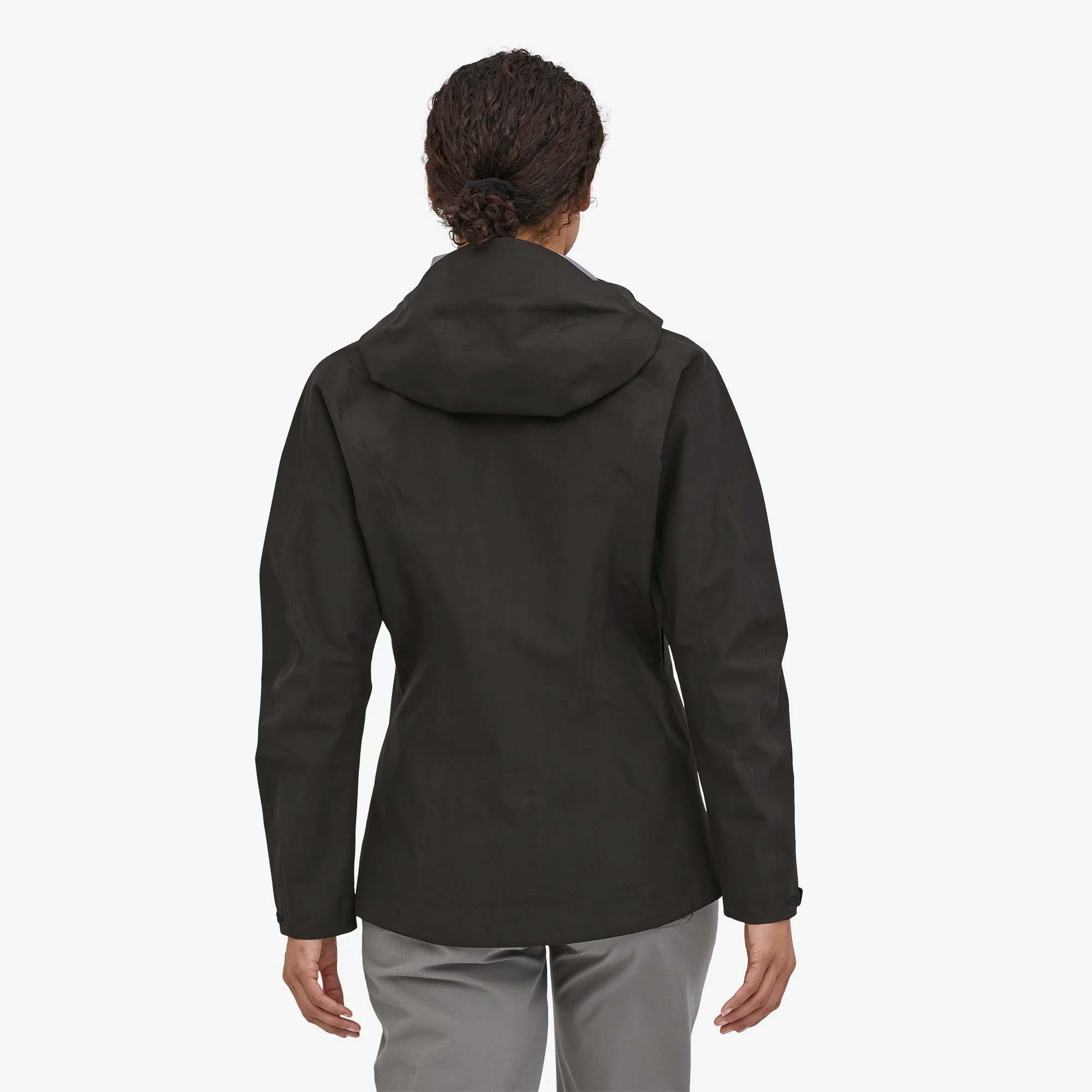 Los puños de bajo perfil usan un cierre de gancho y bucle para un sello firme en la muñeca; un dobladillo con cordón de ajuste ayuda a sellar