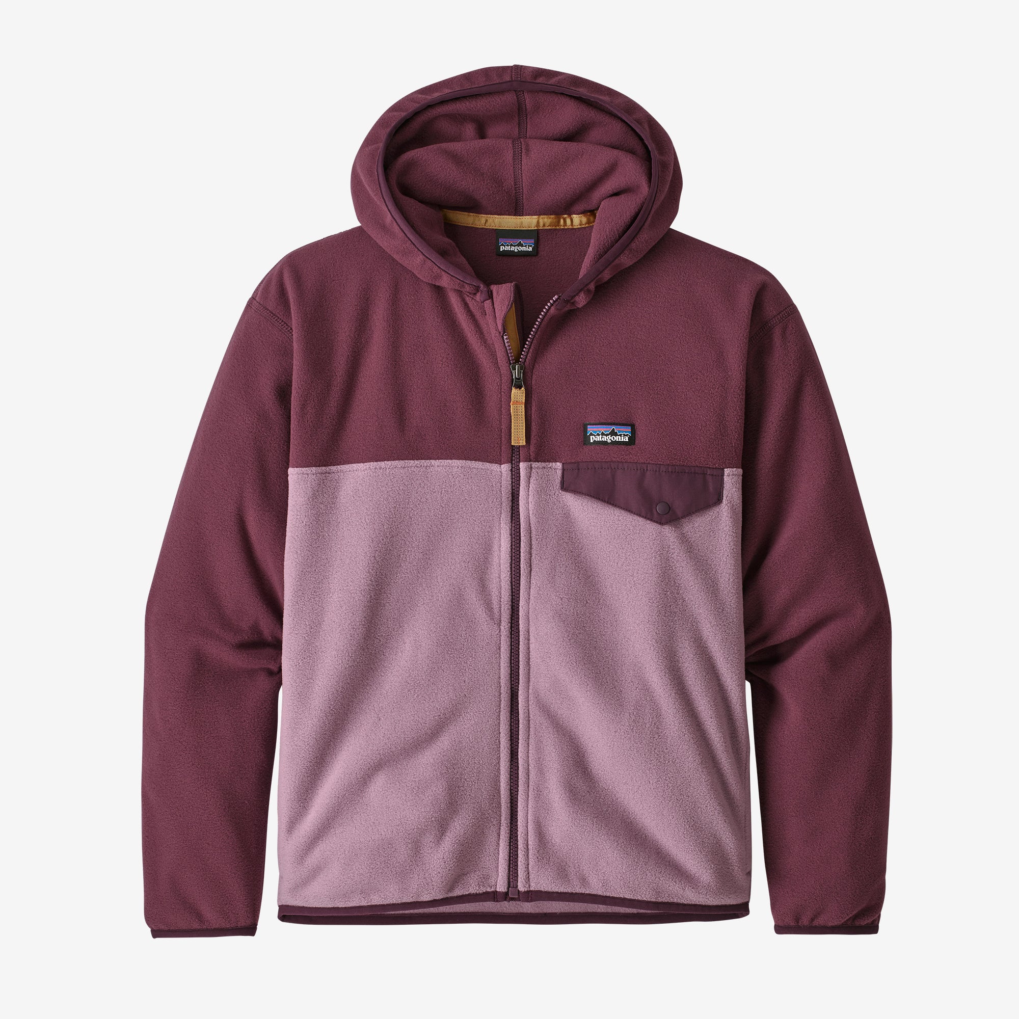 La cremallera completa tiene una solapa de vellón con borde de malla, un compartimiento de cremallera y un tirón reflectante