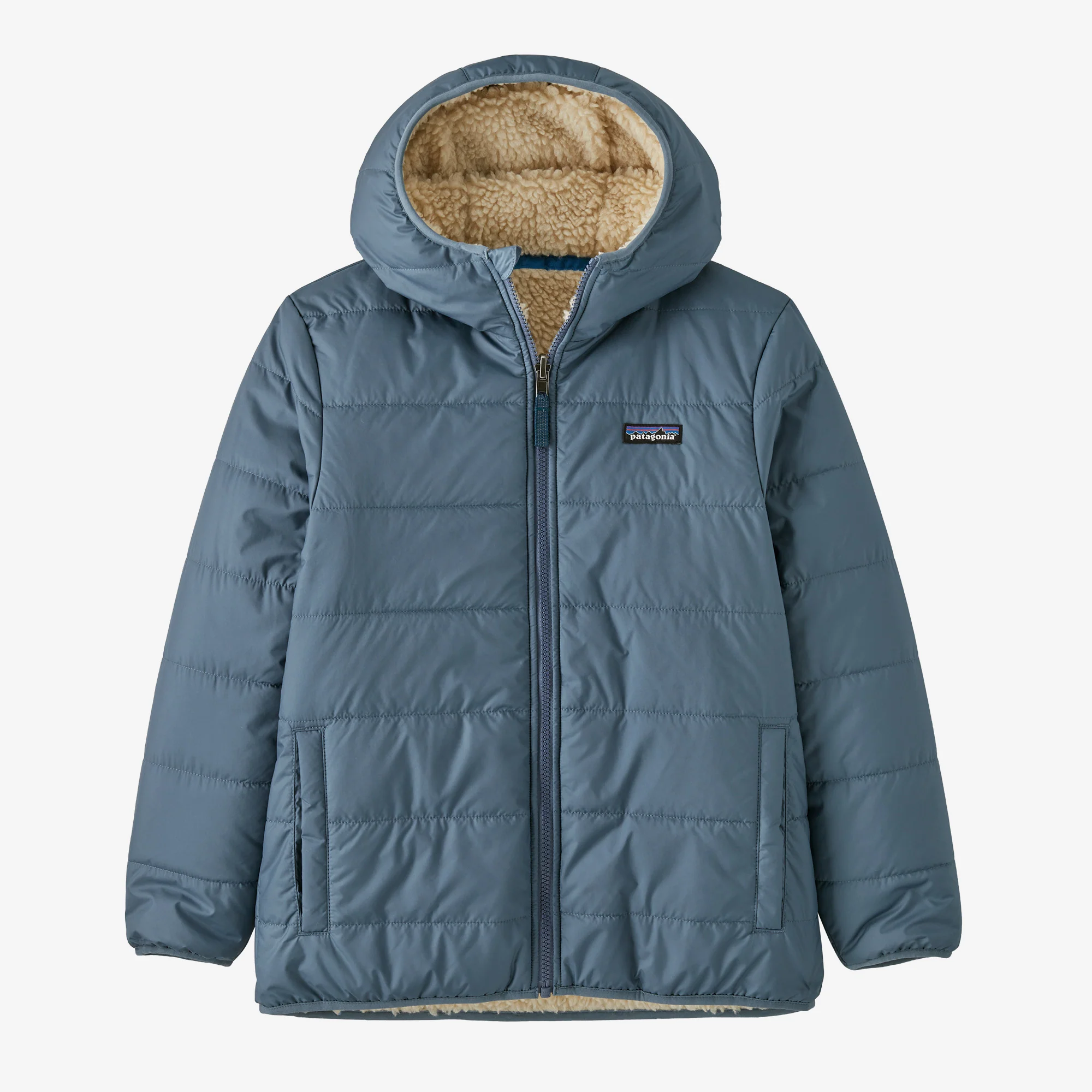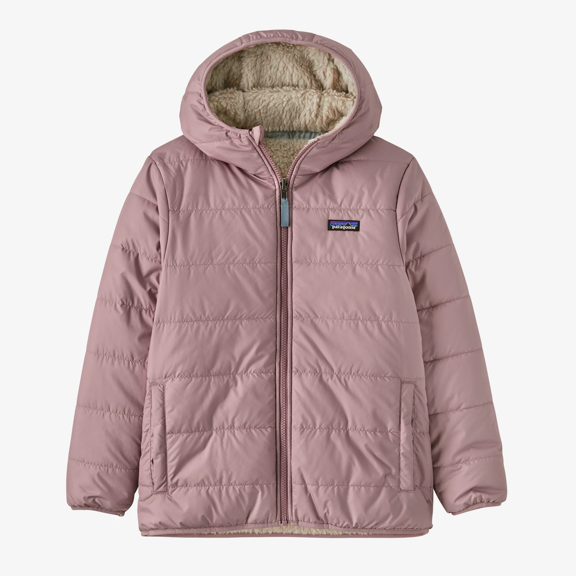 El lado de la tela exterior se invierte en un cálido y acogedor polar de ¼» de pelo alto 100% poliéster (70% reciclado) con un bolsillo en el pecho con cremallera Retro-X