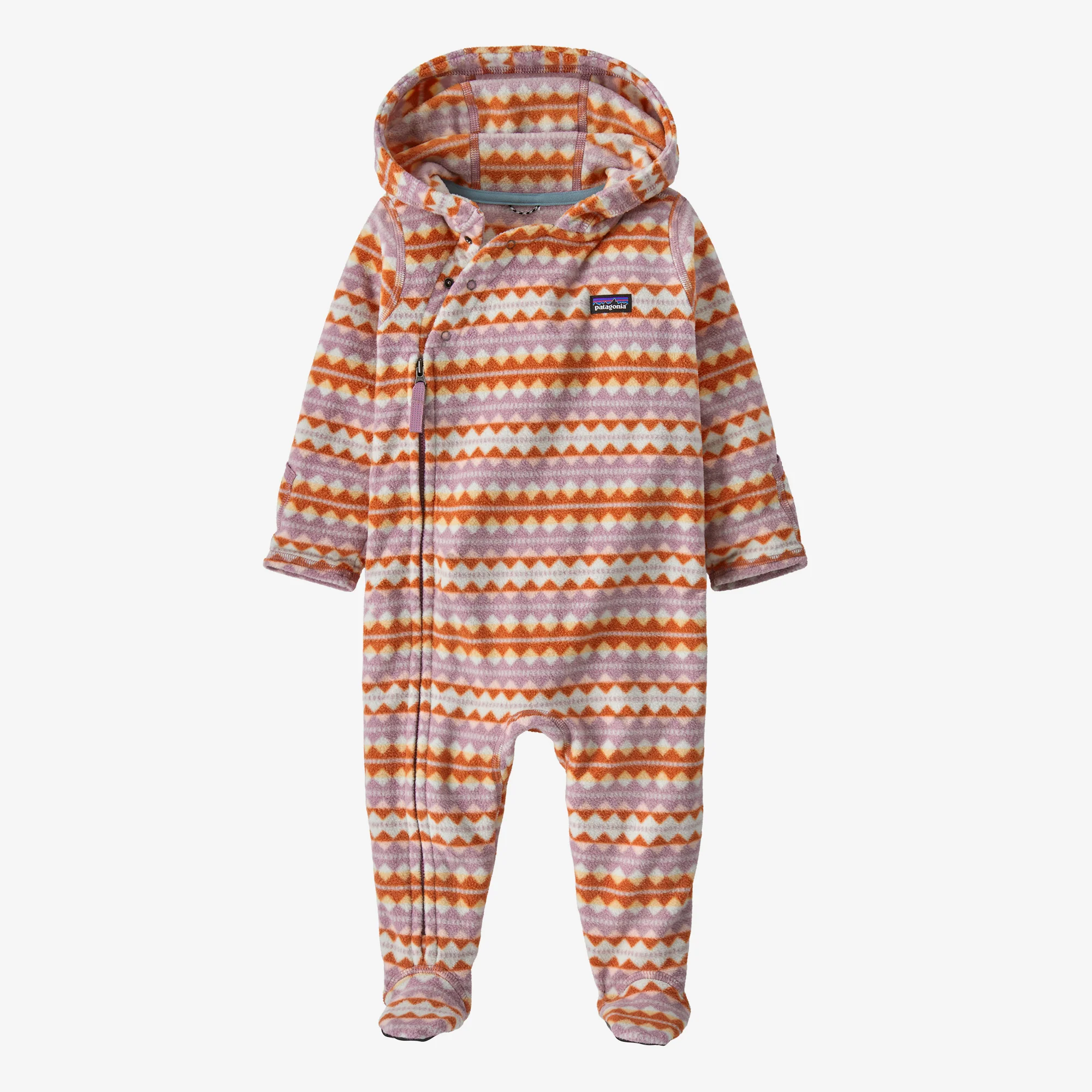 Cremallera de longitud completa con ribetes para facilitar el usoy el cambio de pañales; tirador de cremallera reflectante; entrepierna reforzada y entrepierna con costura plana para mayor comodidad y facilidad de movimiento