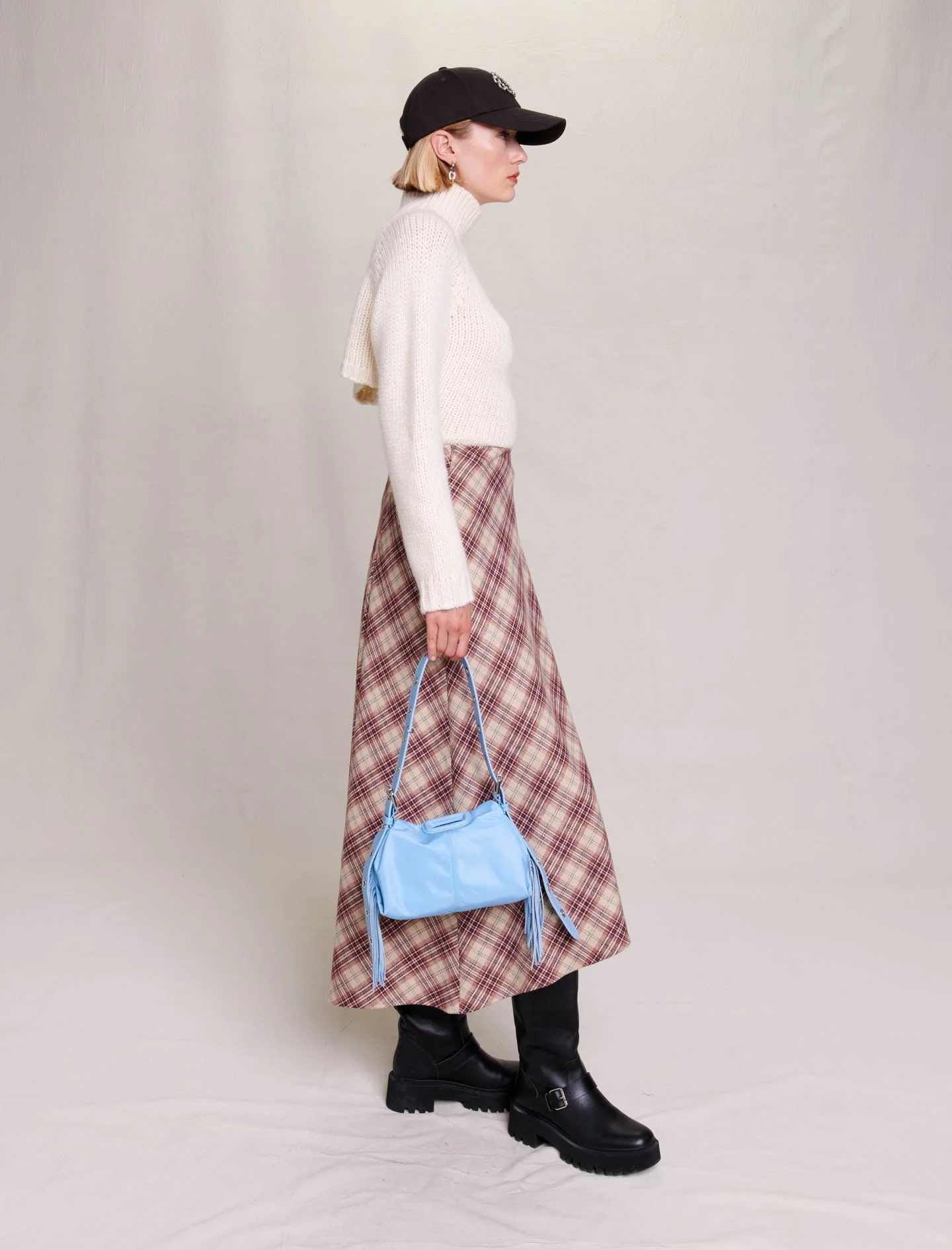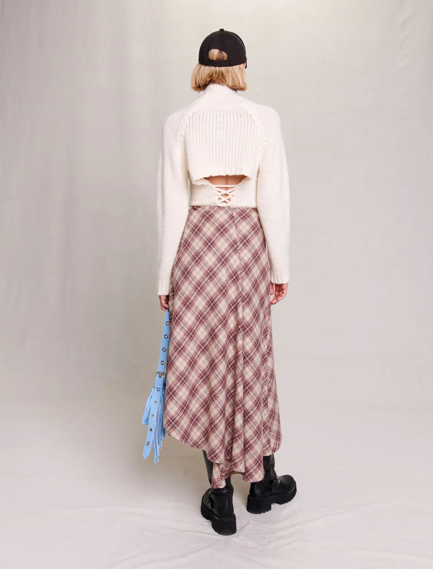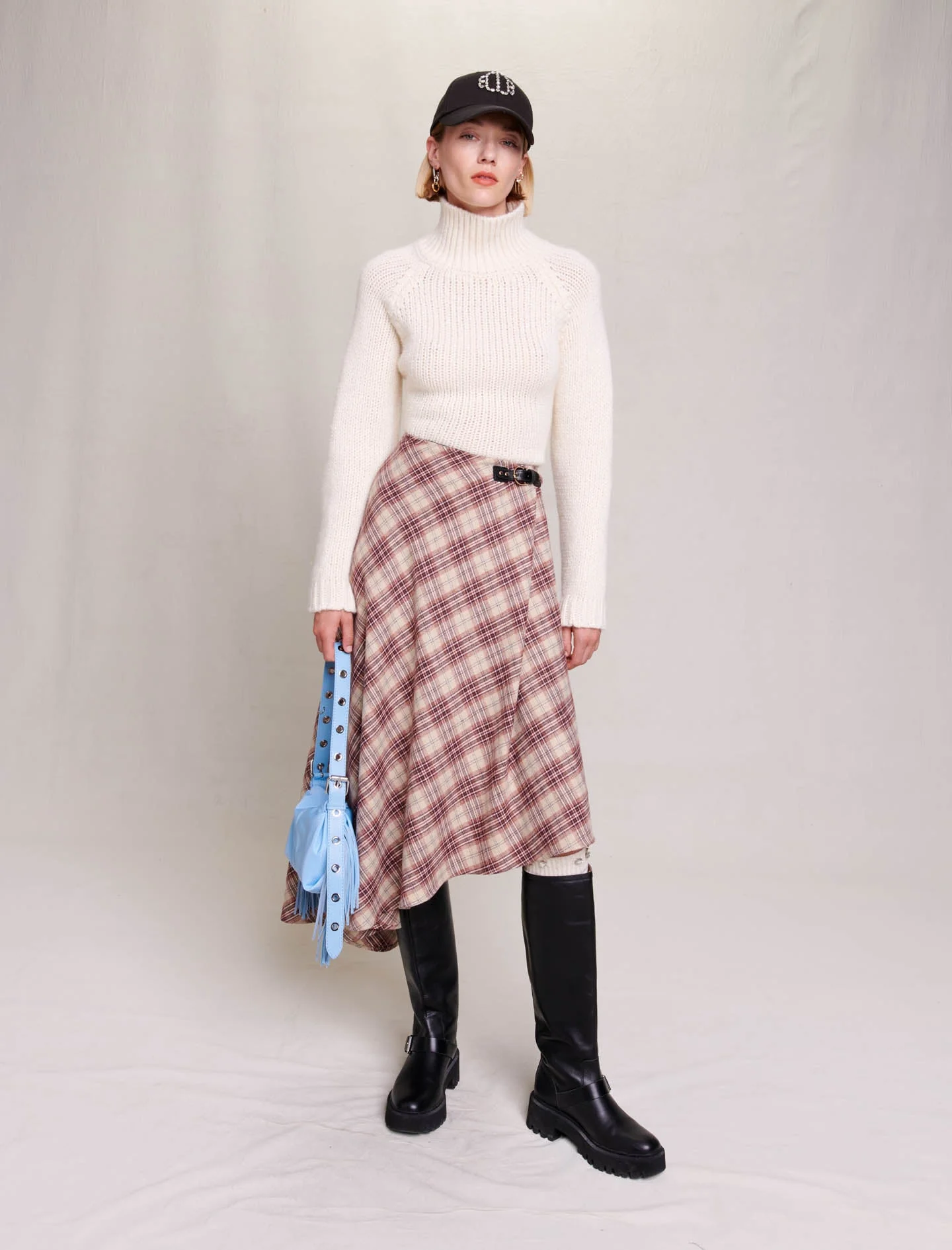 Para la nueva colección, la chica Maje representa la burguesía británica y mezcla piezas sexis y retro para crear conjuntos irresistibles.Decorada con un estampado de franela tipo tartán, esta falda larga hará destacar instantáneamente tu conjunto.Está resaltada con un cinturón con hebilla dorada y muestra un efecto anudado y drapeado, con una caída rockera asimétrica. Es perfecta para estructurar la silueta con estilo porque da un look relajado y sofisticado.Es fácil de combinar y personalizar y se puede conjuntar con una blusa y botas para lograr un look elegante e informal.Ref: MFPJU01137