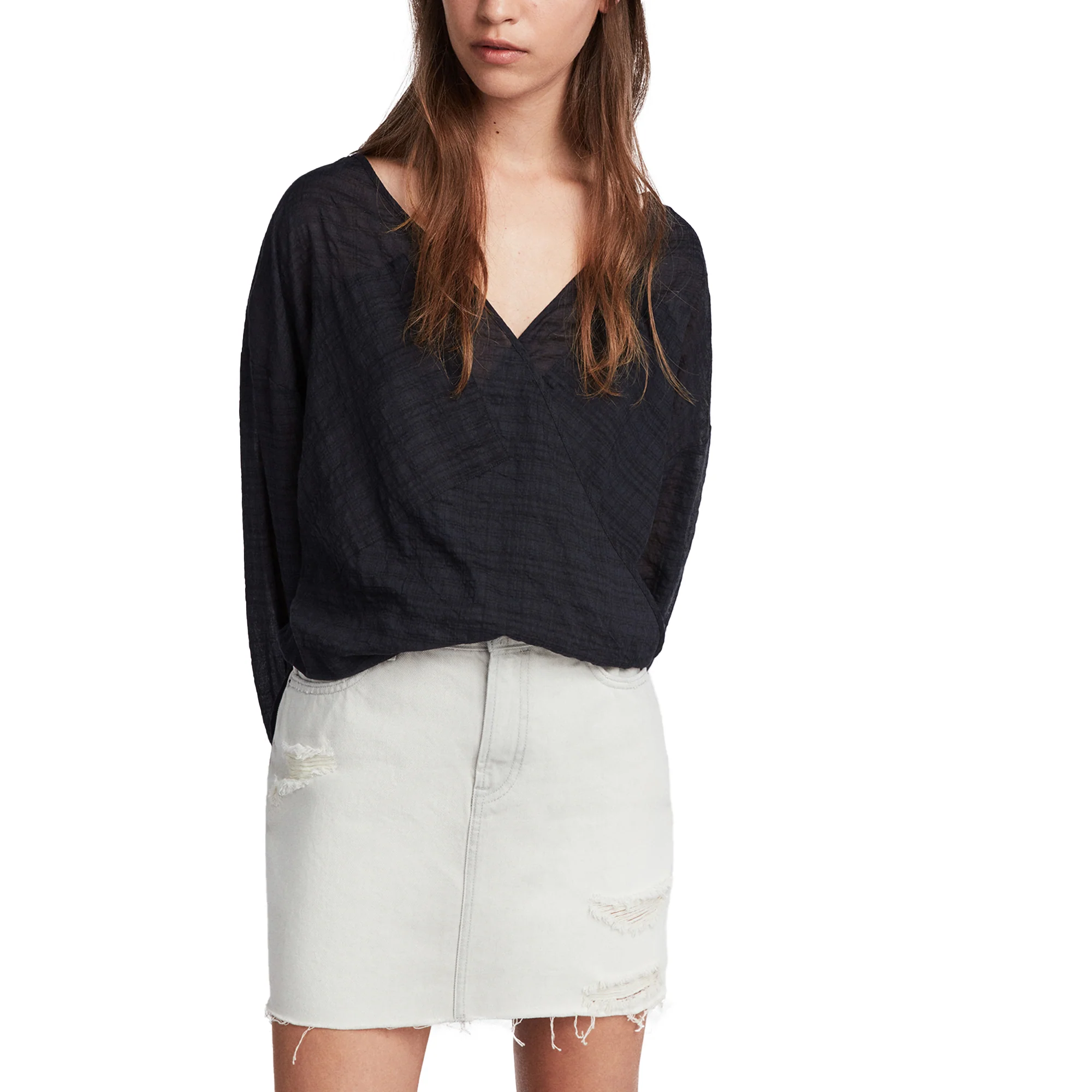FALDA BETTY, MARCA ALLSAINTS. FALDA DENIM CORTA RECORTADA, CORTE RECTO, CINCO BOLSILLOS. 100% ALGODÓN. LAVAR A MÁQUINA AL REVÉS.