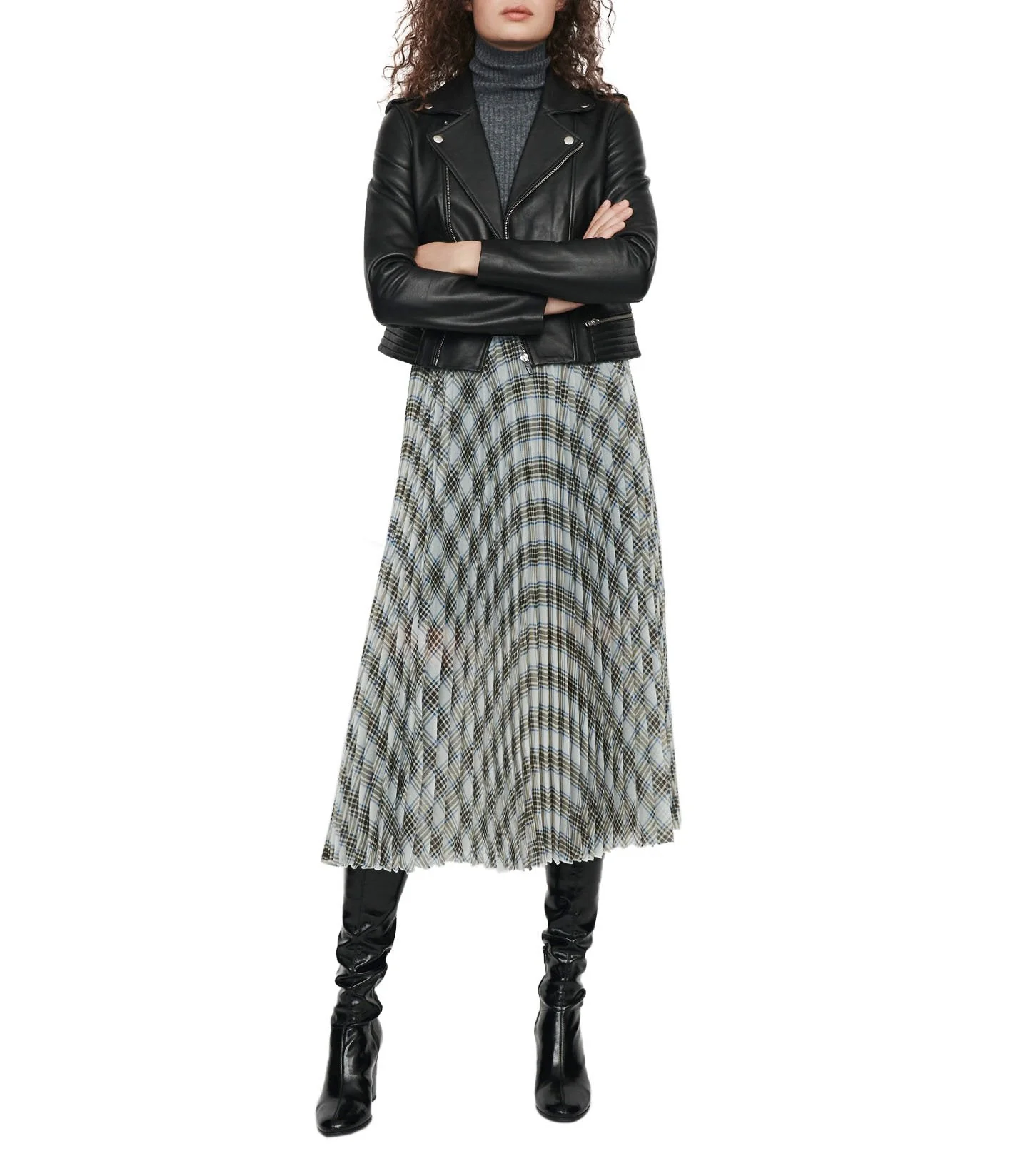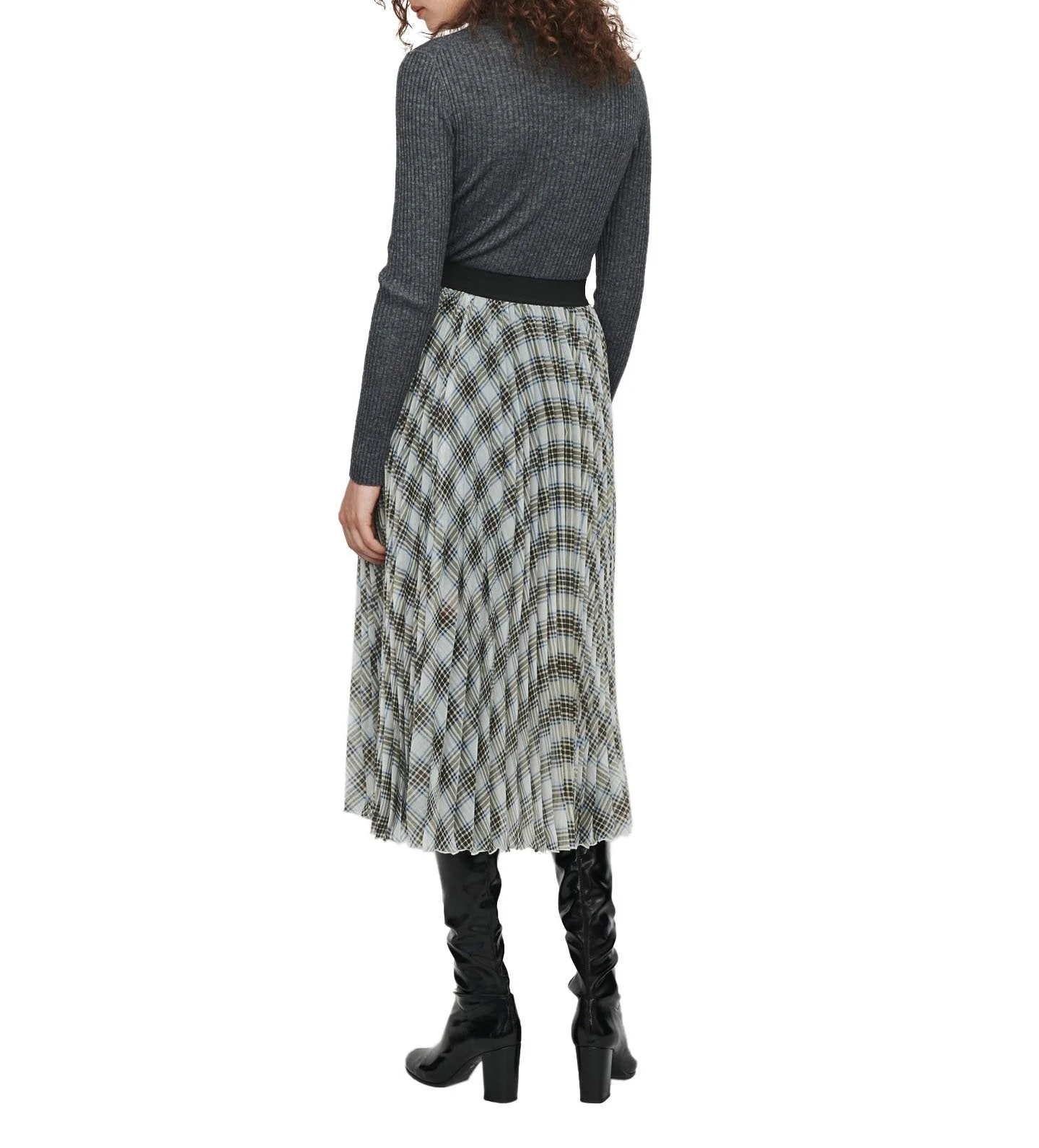 FALDA LARGA CINTURA ELÃSTICA DE TALLE ALTO, PLIEGUES EN TODA LA PRENDA, ESTAMPADO DE CUADROS EN TODA LA PRENDA, DOBLADILLO ACAMPANADO, TOTALMENTE FORRADO, MARCA MAJE. 100% POLIÉSTER. CONSULTAR INSTRUCCIONES DE LAVADO EN ETIQUETA INTERNA.