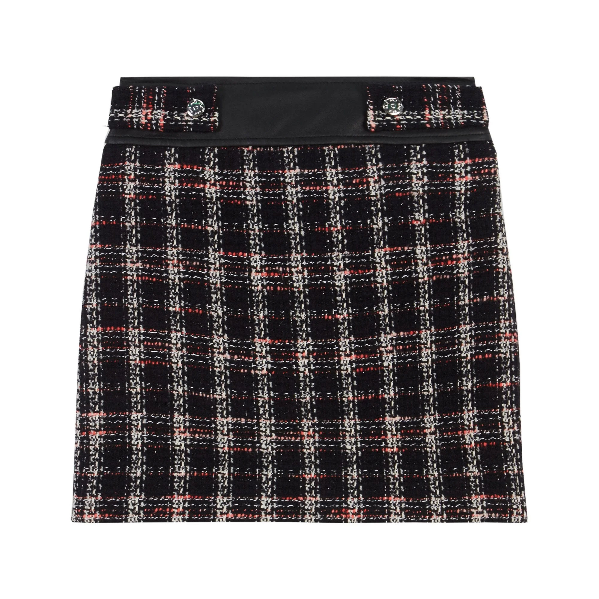Falda Corta De Tweed, Corte Recto En Tejido De Punto Con Cuadros A Contraste Y Botones En Parte Superior. 47% Algodón, 25% Poliéster, 27% Nylon, 1% Viscosa. Lavado En Seco
