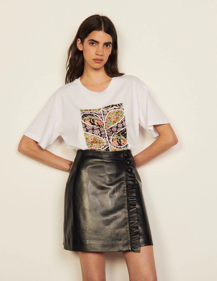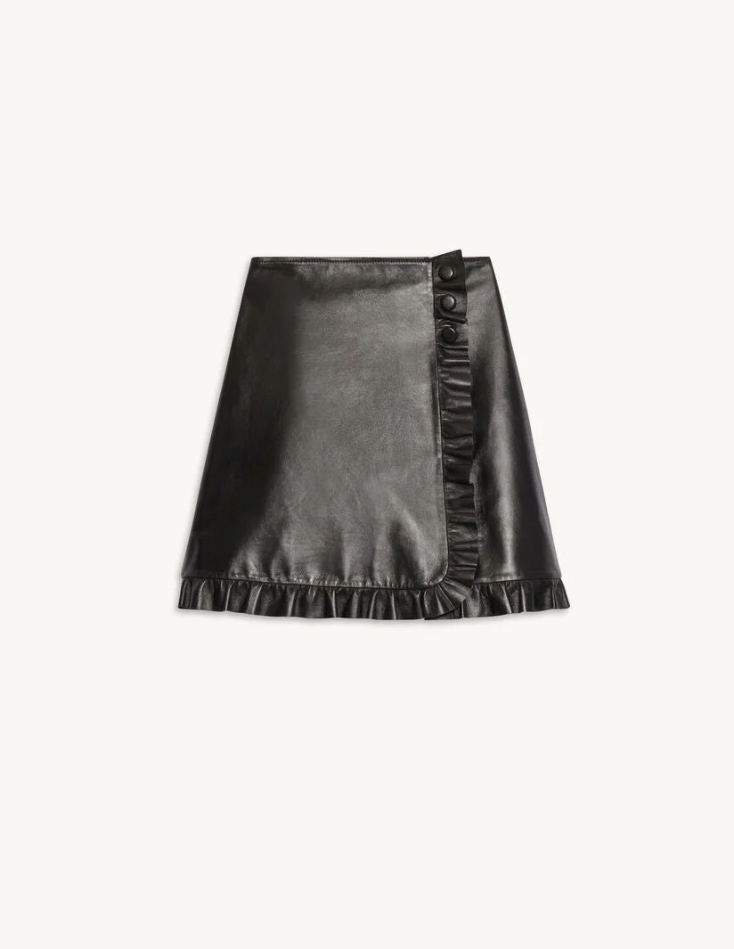 • Volante fruncido en la parte delantera y el bajo de la falda