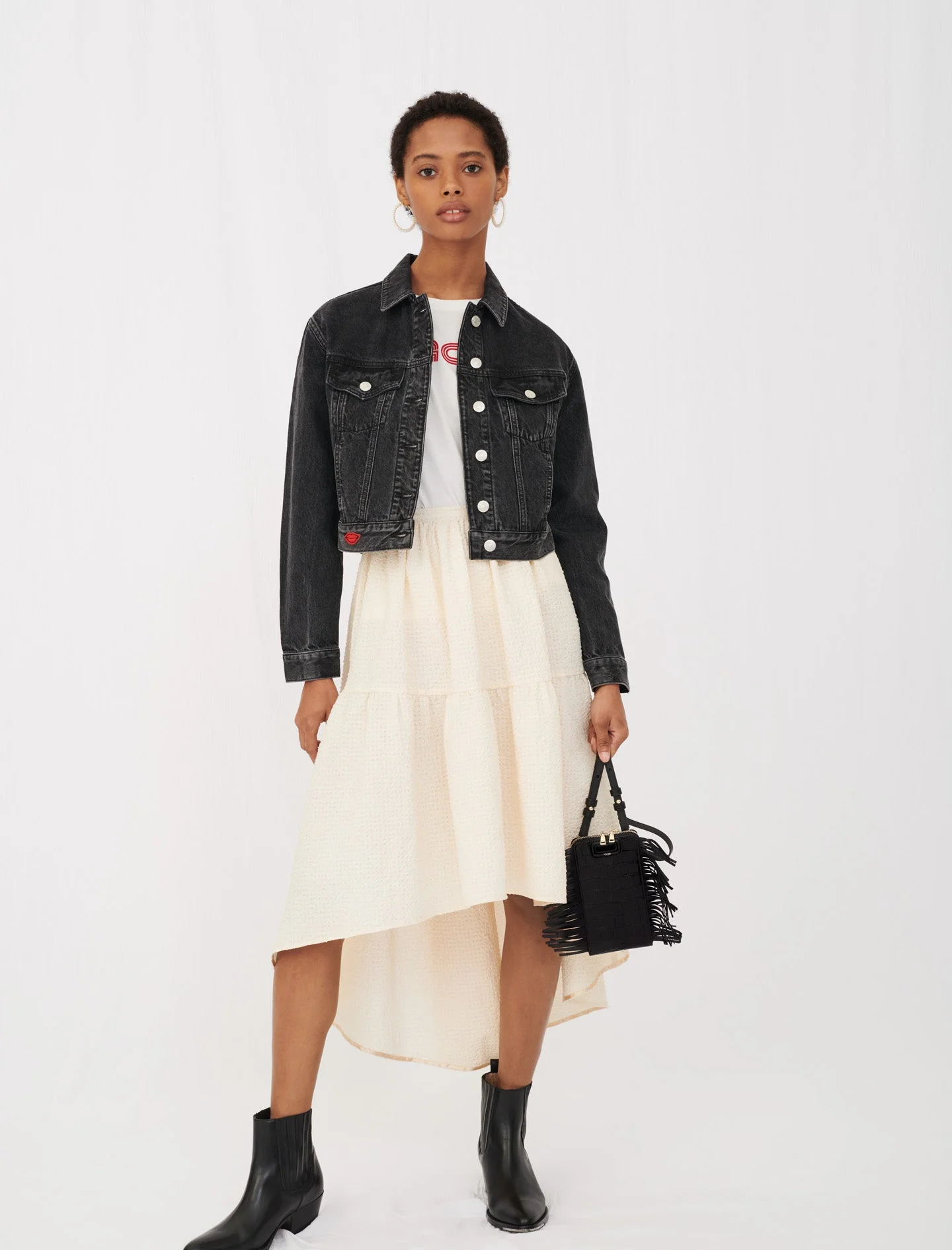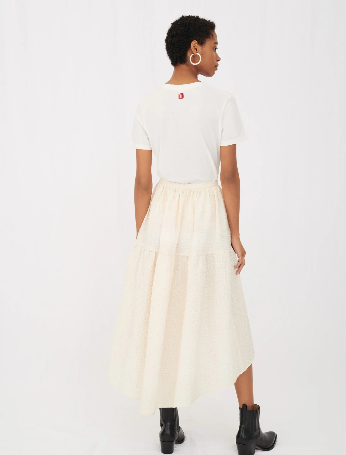 Falda Ecru. Falda Asimétrica Color Crudo, Larga En La Parte Trasera Y Más Corta En La Parte Delantera, Efecto Enagua. Material Con Efecto Agrietado. Cinturilla Y Costura Bajo Las Caderas. Cremallera En El Lateral Izquierdo. Se Puede Llevar Con El Top De Punto Color Crudo Tipo Tweed Con Cadena Dorada.. Composición: Tela Principal: 94% Algodón / 6% Elastano / Trenzado: 100% Algodón