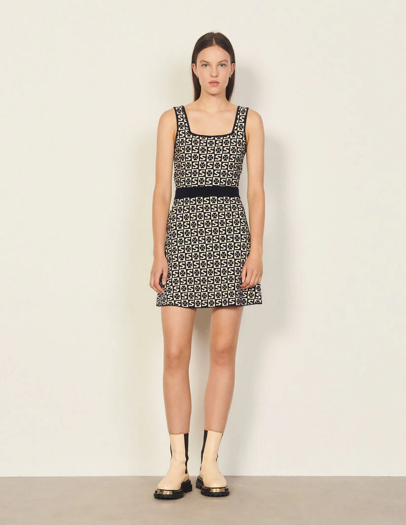 Falda Mujer Sandro Falda Corta De Punto Con Motivo Jacquard Cintura Elástica Corte Trapecio Falda A Juego Con El Cárdigan La Modelo Lleva La Talla 1 Y Mide 176 Cm Este Modelo Está Confeccionado En Viscosa Respetuosa Con El Medioambiente. Nuestros Diseñadores Han Seleccionado Esta Fibra Procedente De La Pulpa De Madera, Ya Que Garantiza Una Gestión Sostenible De Los Bosques. Sfpju00532 Tejido Principal: 56% Viscosa, 22% Lana, 15% Poliéster, 5% Poliamida, 2% Cachemira