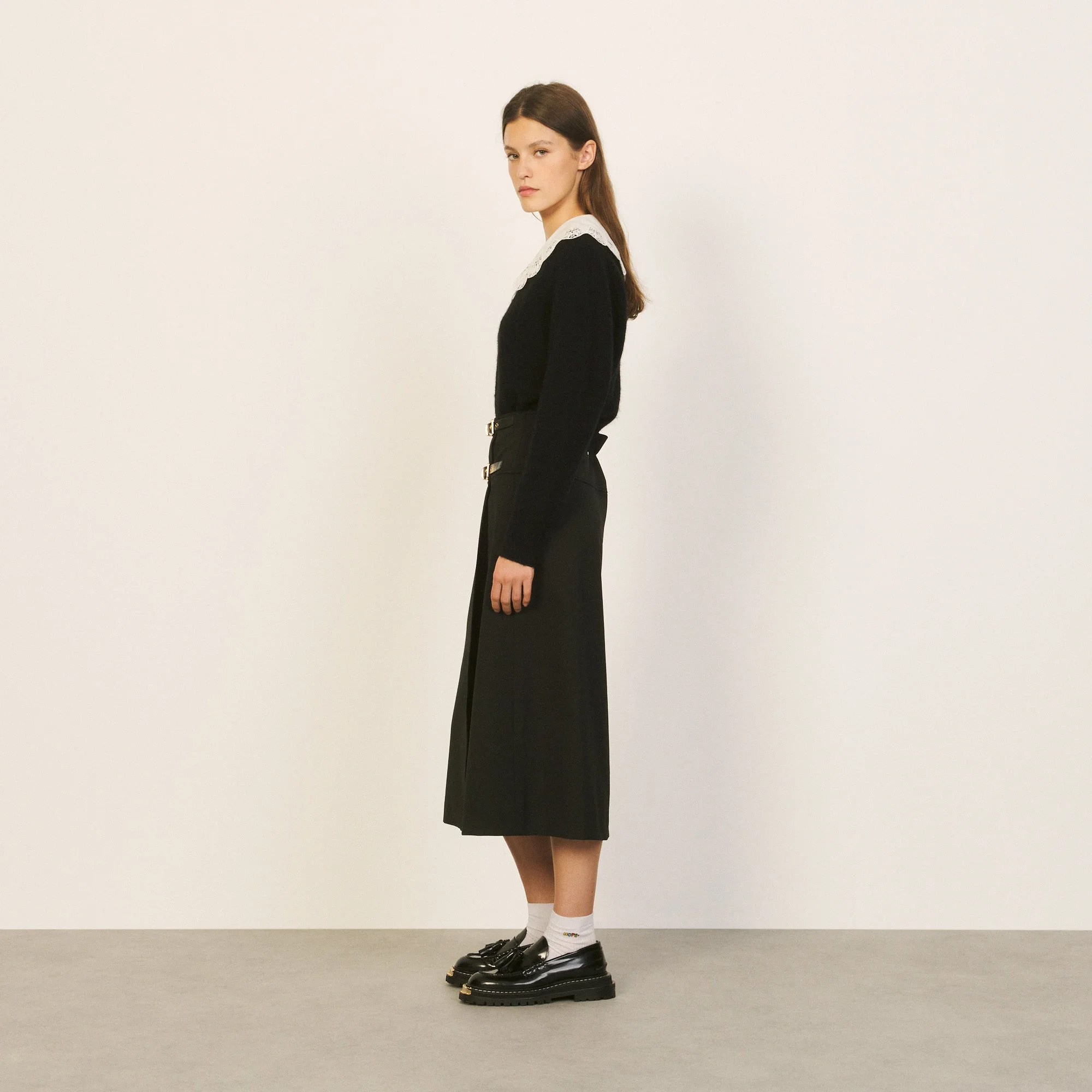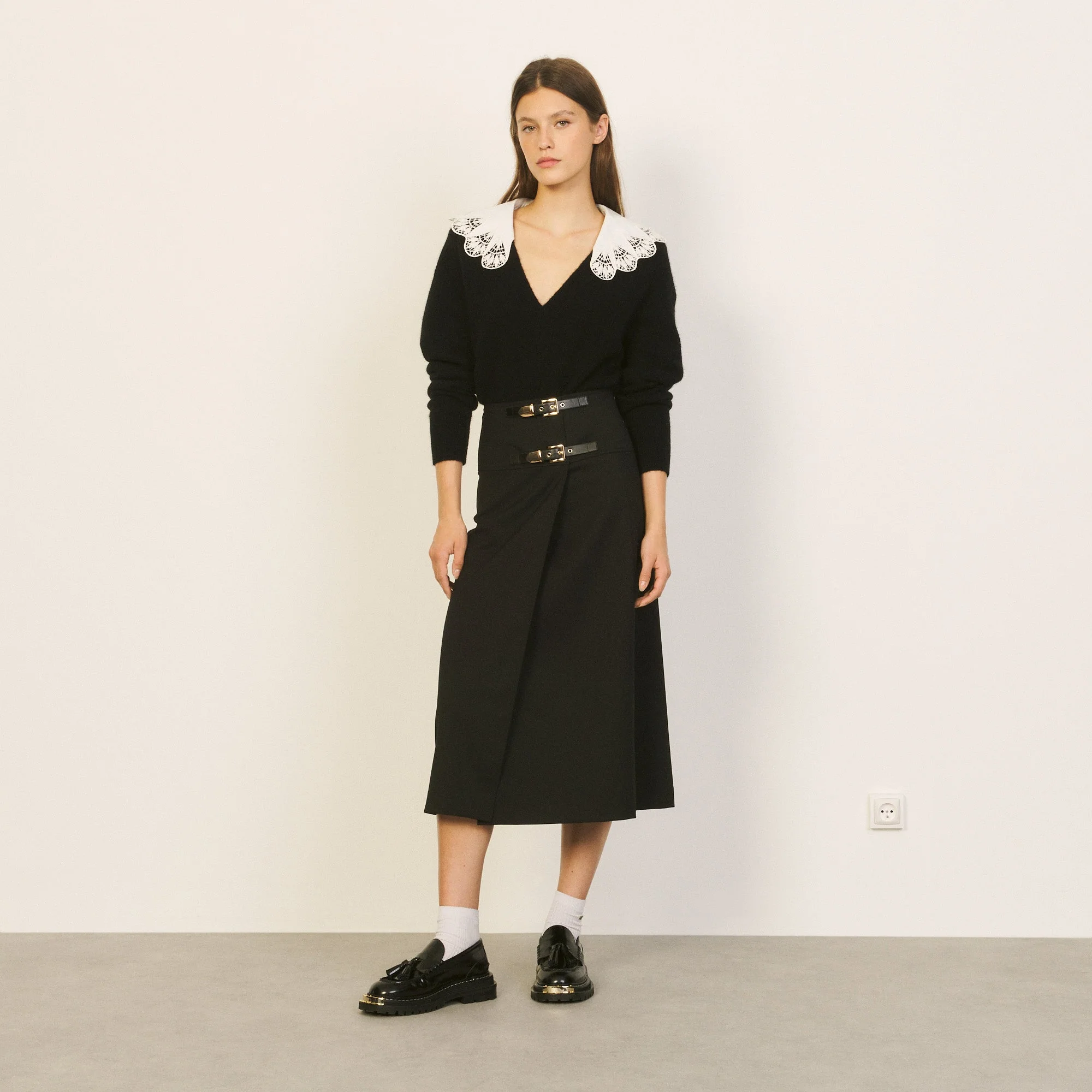 Falda De Mujer Sandro Falda Larga Cinturón Ancho Incorporado En La Cintura Falda Evasé Este Modelo Está Elaborado A Partir De Material Reciclado, Lo Que Reduce Su Impacto En El Medioambiente Y Favorece La Economía Circular. La Modelo Lleva La Talla 1 Y Mide 179 Cmreferencia : Sfpju00577 Tejido Principal: 54% Poliéster, 44% Lana, 2% Elastano