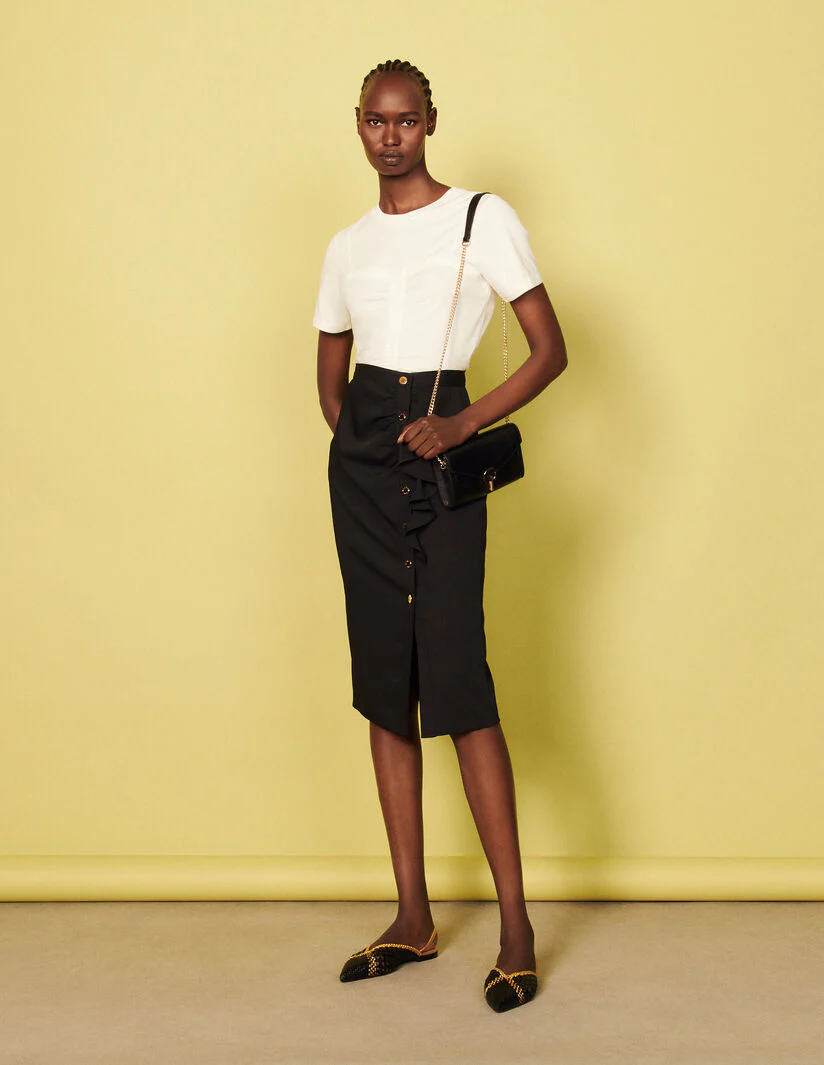 Sé el primero en valorar “Falda lápiz midi avolantada”