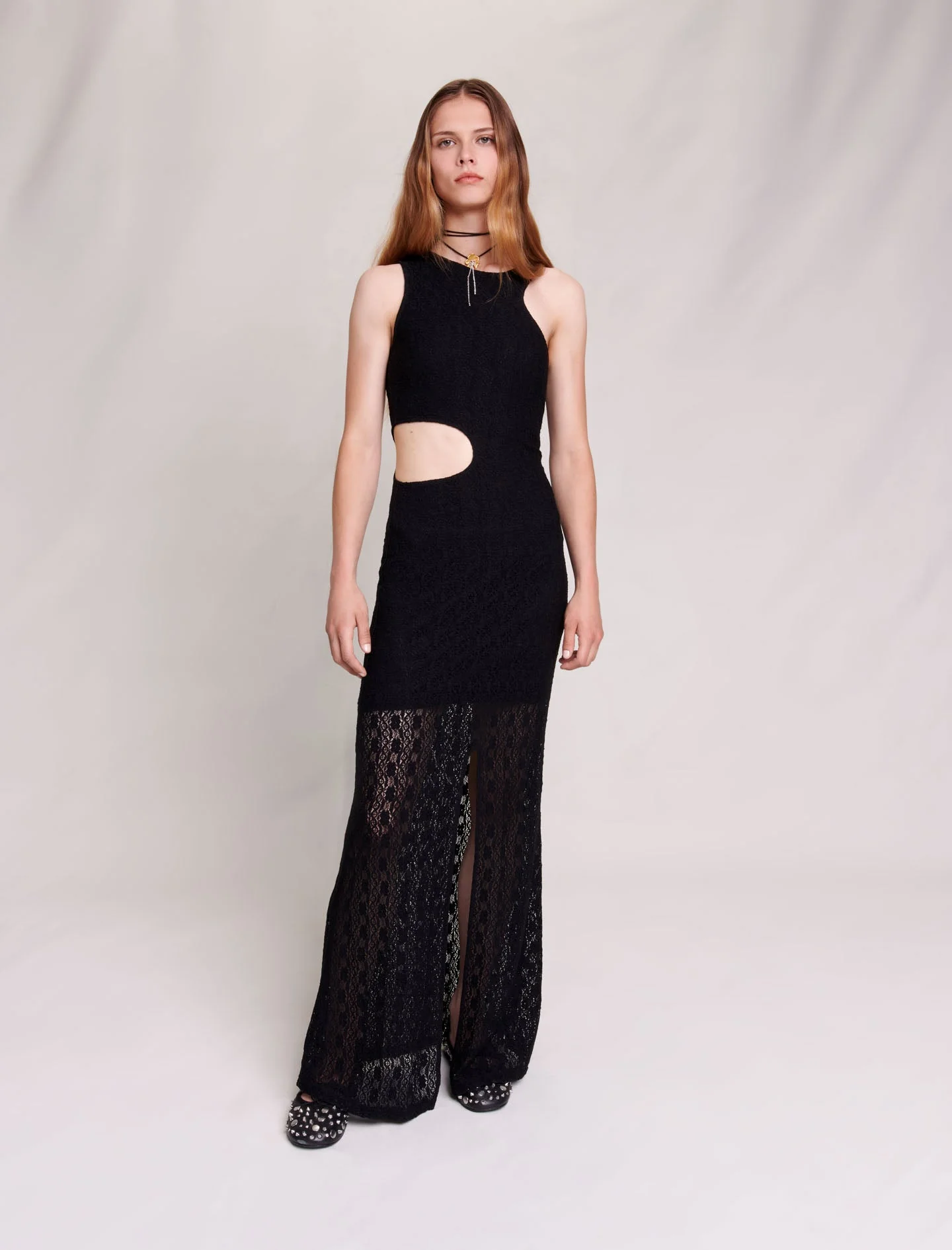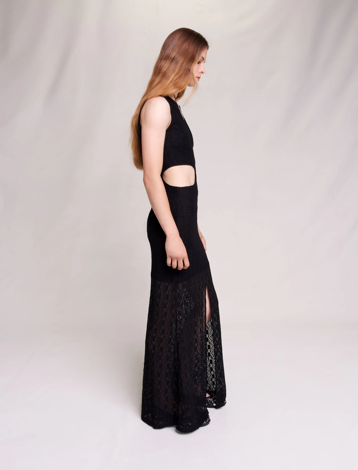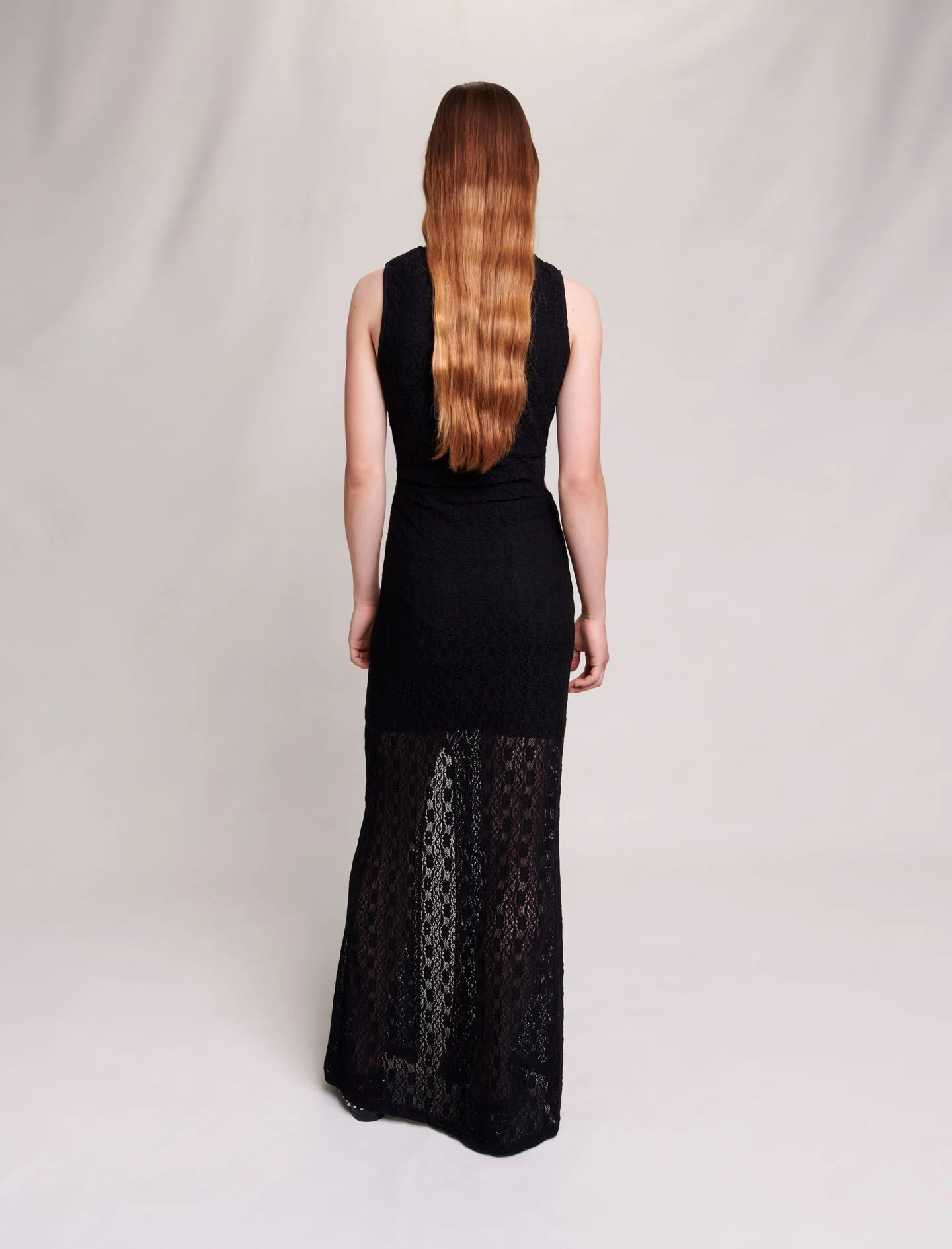 • Vestido largo de encaje elástico semitransparente