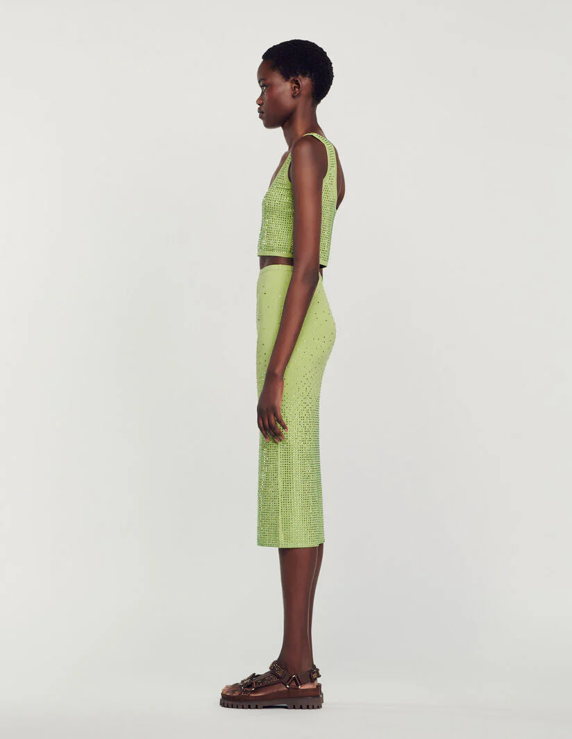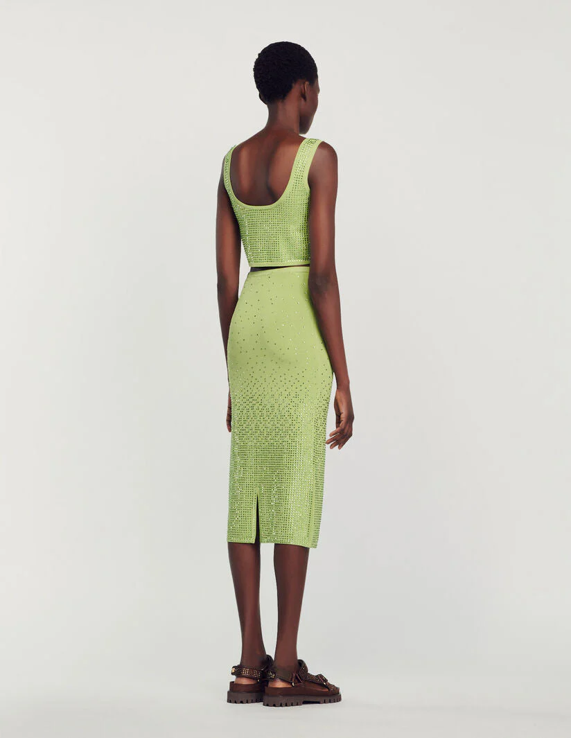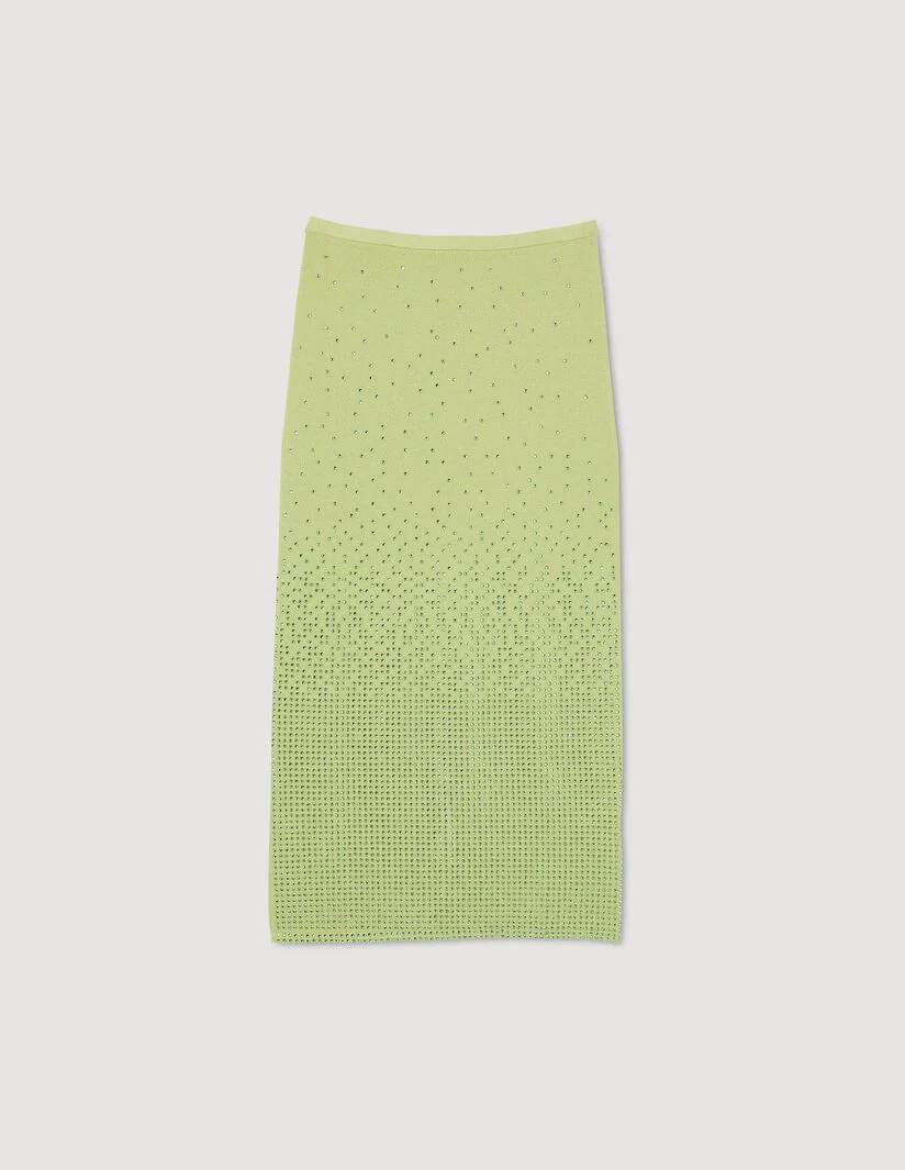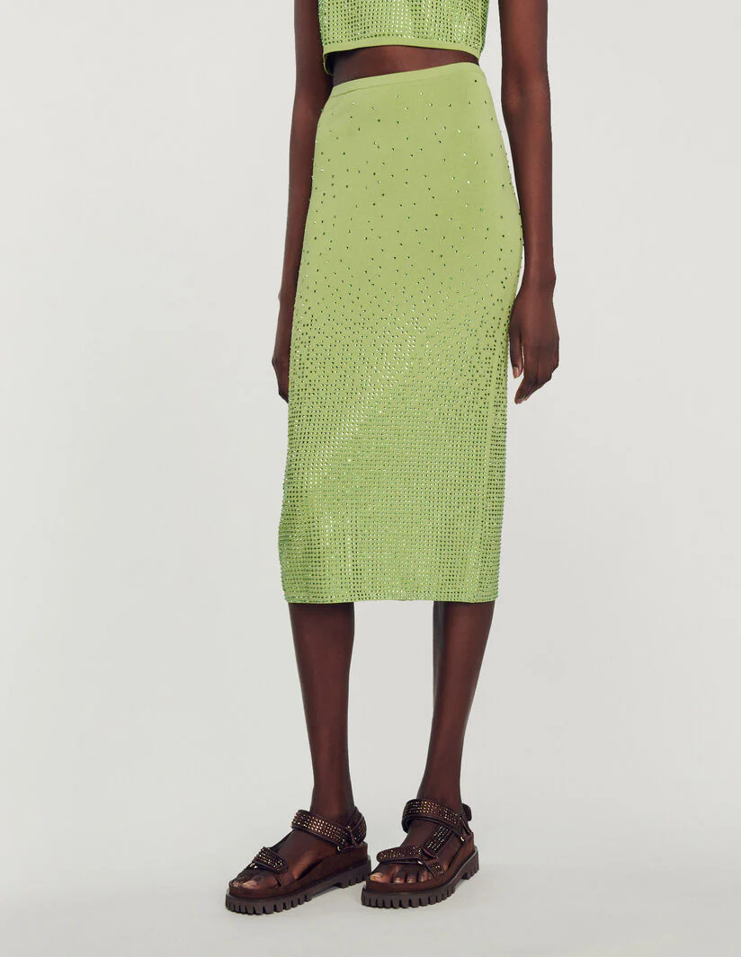 Falda midi de corte ajustado al cuerpo de punto elástico, sublimada con strass en toda la prenda.• Falda midi Sandro de mujer