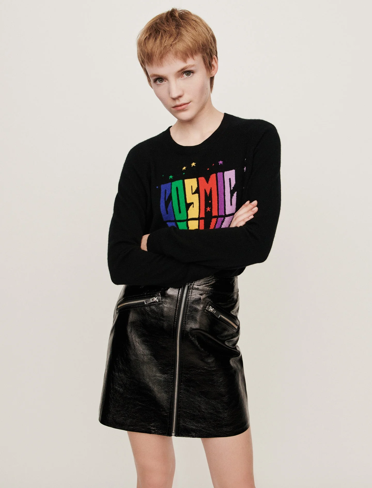 Falda Negro, marca Maje. Falda Corta De Cuero Tipo Vinilo Con Cremallera Delantera, Bolsillos Laterales, Corte Trapecio, Negro. 100% POLIÉSTER. LAVADO: Lavado a mano dedlicado. BLANQUEADOR: Sin blanqueador. SECADORA: No usar secadora.