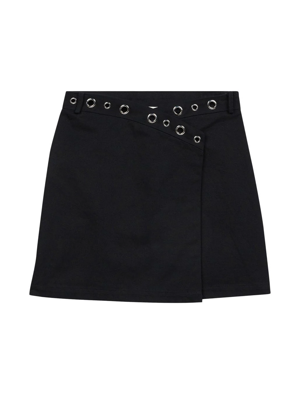 FALDA CORTA DE SILUETA RECTA EN TEJIDO DE PUNTO SÓLIDO CON DETALLE CIRCULAR SOBRE PRETINA., MARCA MAJE. COMPOSICIÓN: 100% ALGODÓN. INSTRUCCIONES DE LAVADO: LAVADO A MANO.