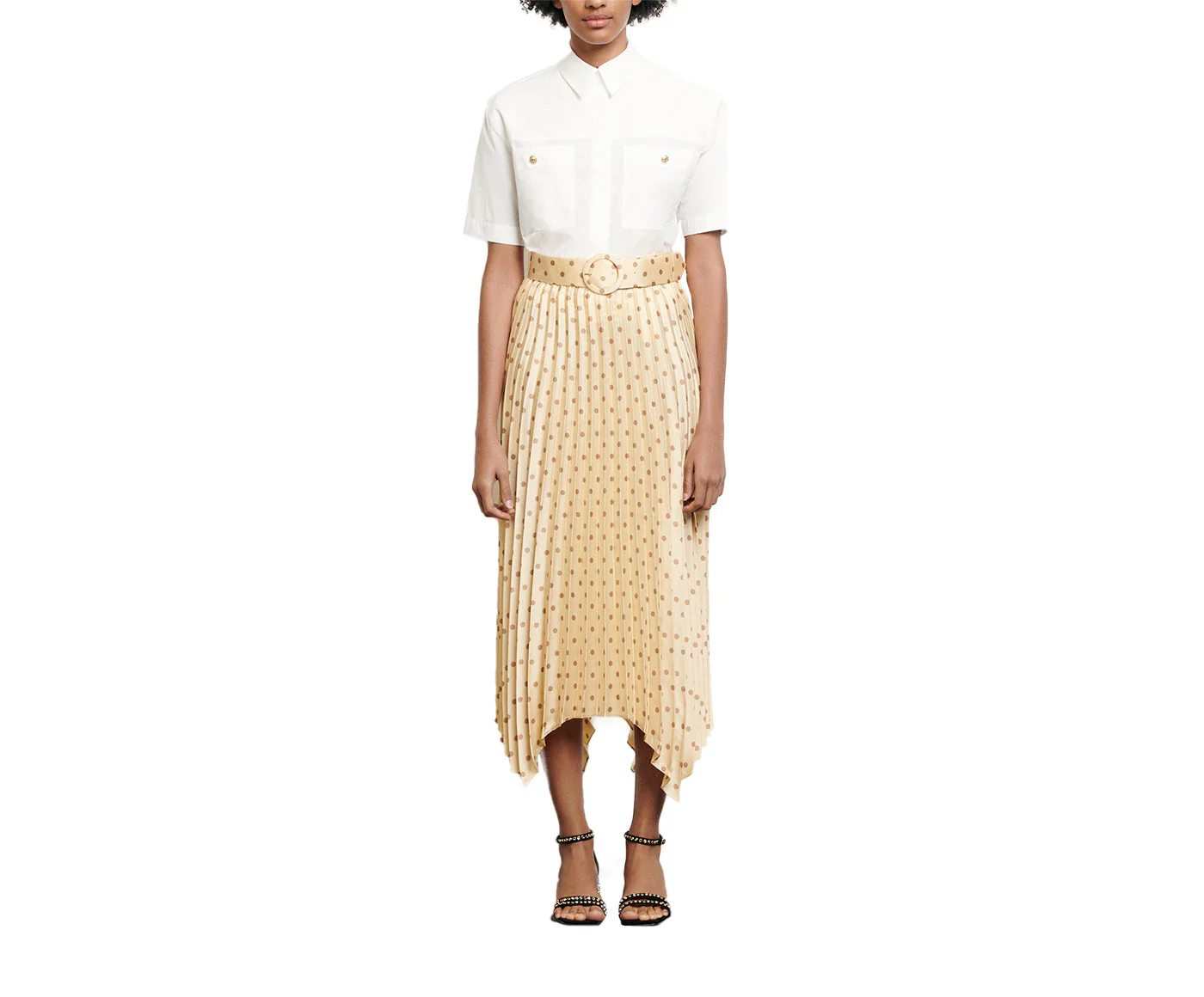 FALDA JAUNE, MARCA SANDRO. COMPOSICIÓN: CONSULTAR COMPOSICIÓN EN ETIQUETA INTERNA. INSTRUCCIONES DE LAVADO: CONSULTAR INSTRUCCIONES DE LAVADO EN ETIQUETA INTERNA.