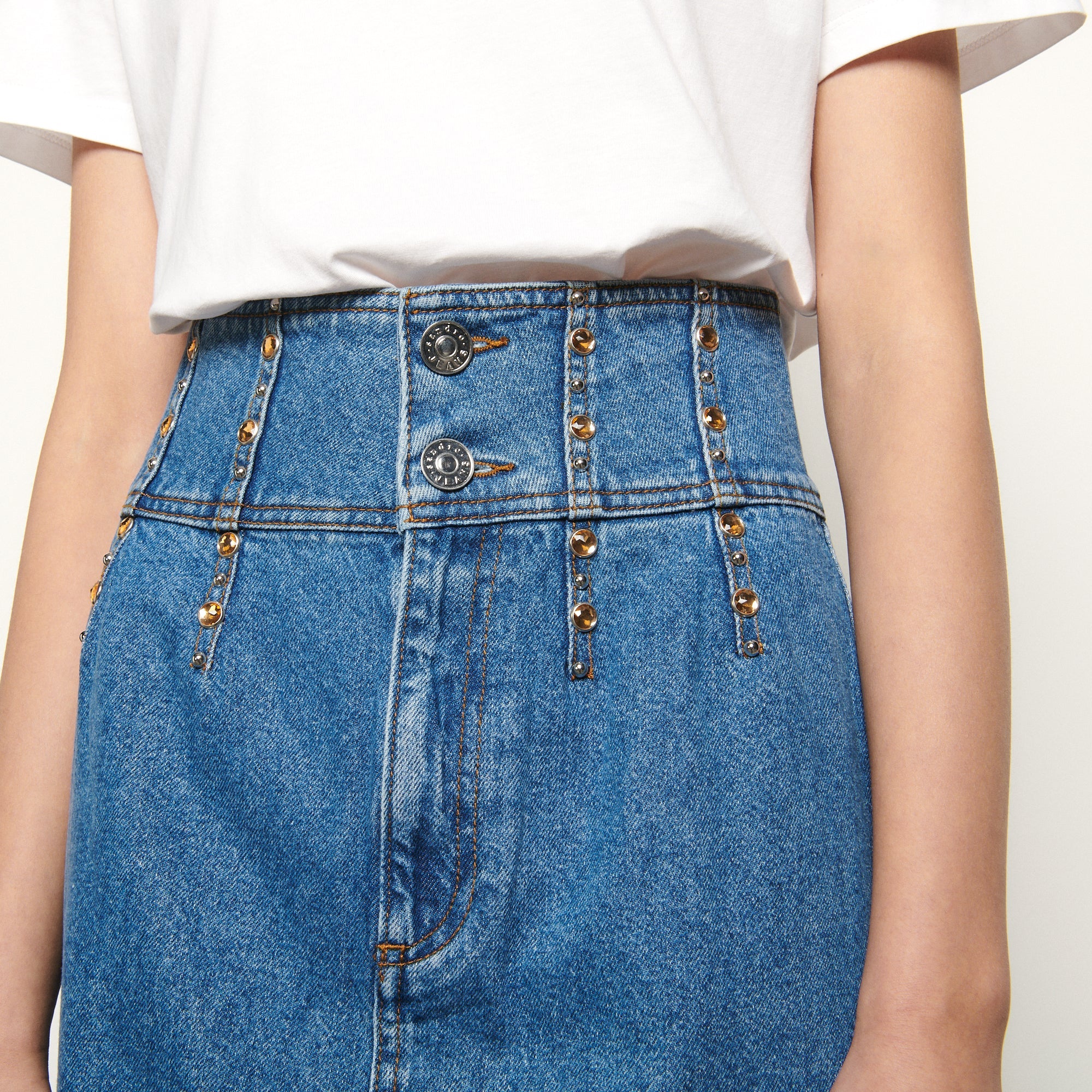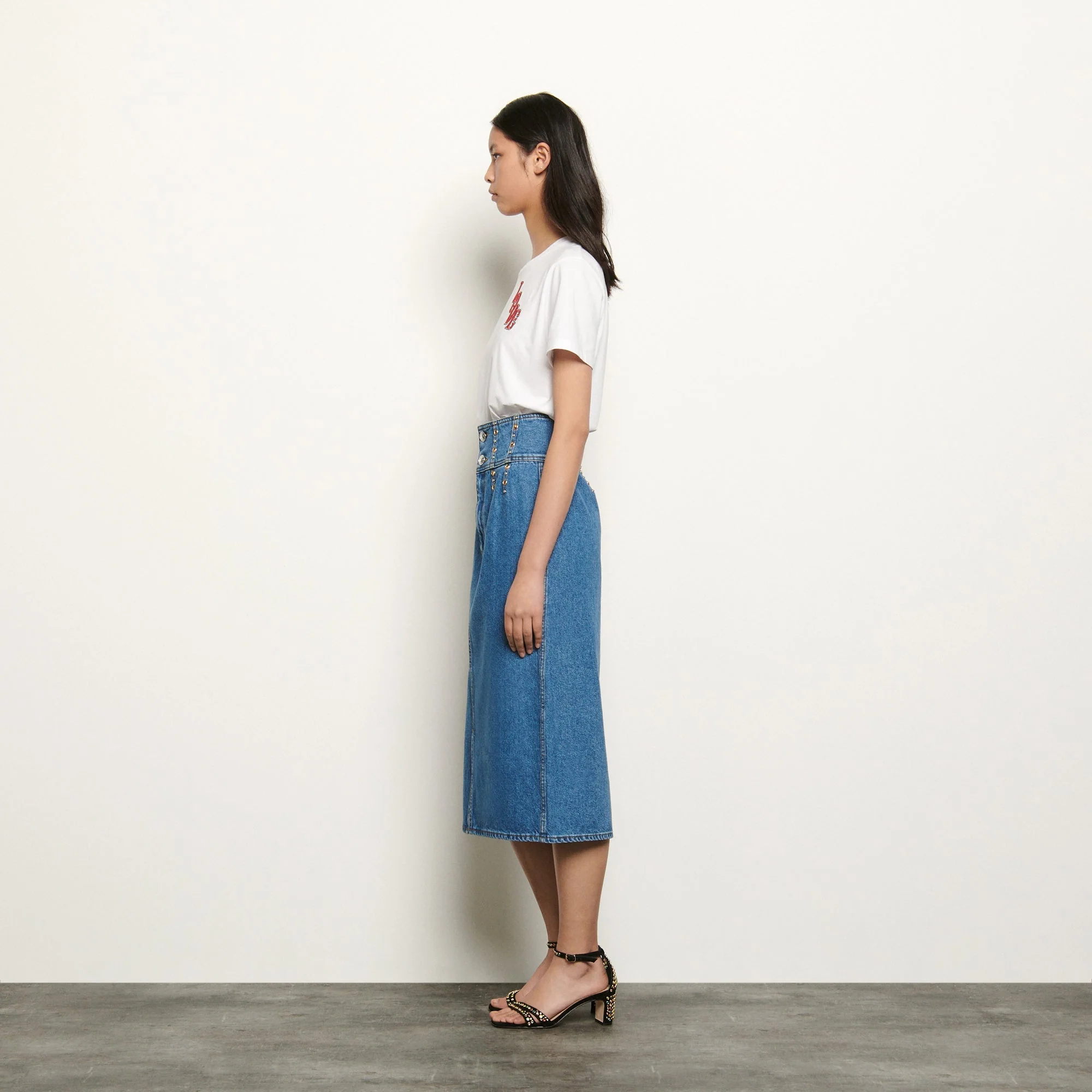 FALDA RUBYA AZUL DENIM, MARCA SANDRO. COMPOSICIÓN: REVISAR ETIQUETA INTERNA. INSTRUCCIONES DE LAVADO: R5