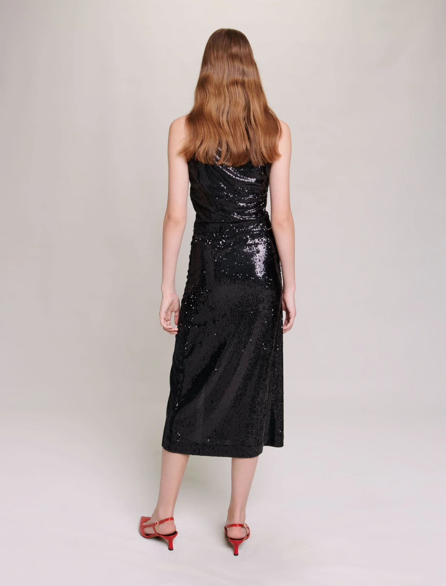 Descubra nuestra colección cápsula de fiesta, una invitación a brillar para noches inolvidables. Detalles refinados y cortes impecables, cada pieza captura la esencia misma de la elegancia, creando conjuntos deslumbrantes e irresistibles.Con un cierre de cremallera en el lateral, esta falda semilarga está repleta de detalles sexis para resaltar su conjunto de fiesta con brillo. Salpicada con lentejuelas por toda la prenda, revela un efecto drapeado y una raja frontal que deja entre ver sutilmente la piel.Ref.: MFPJU01129