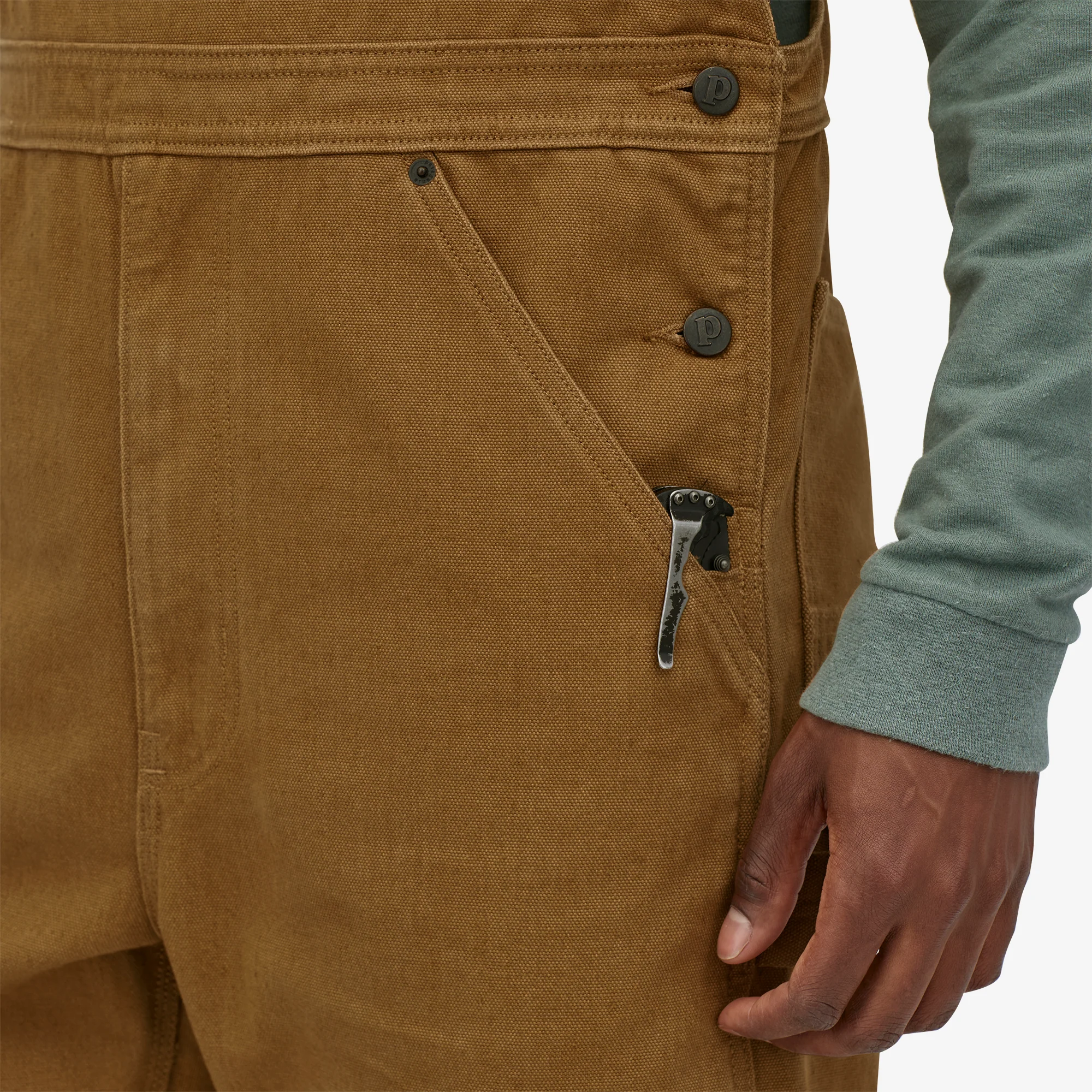 Los bolsillos delanteros son lo suficientemente profundos para llevar herramientas de mano y los refuerzos facilitan el enganche de tu navaja o la cinta de medir