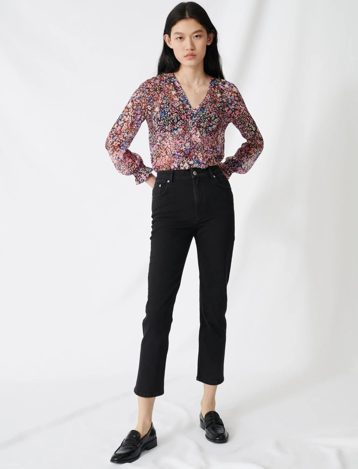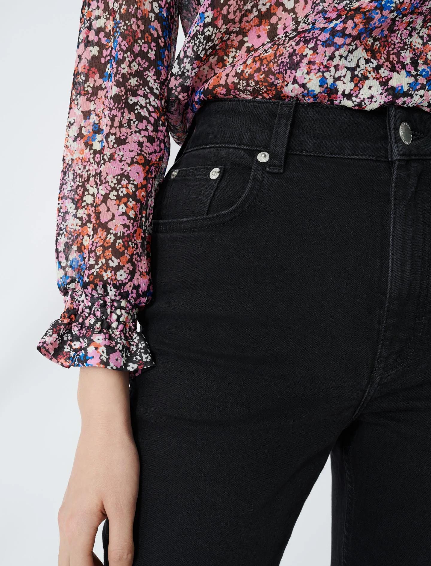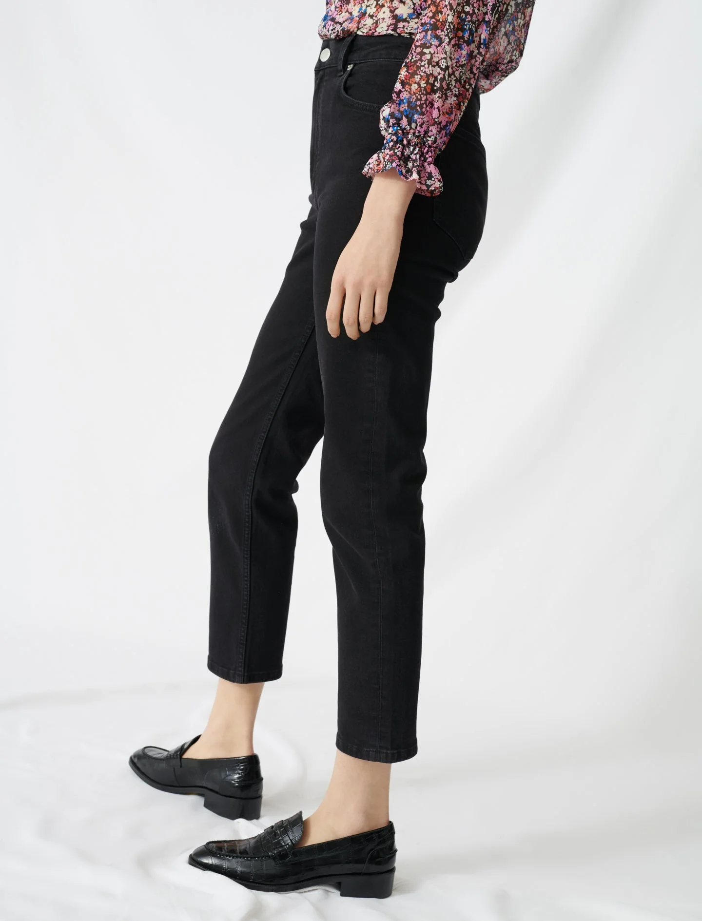 PANTALONES Y JEANS MAJE DE CORTE REGULAR EN MEZCLILLA TEÑIDA CON PIERNA RECTA Y BOLSILLO, MARCA MAJE. COMPOSICIÓN: 99% ALGODÓN, 1% ELASTANO.. INSTRUCCIONES DE LAVADO: LAVADO EN MÁQUINA CICLO DELICADO.